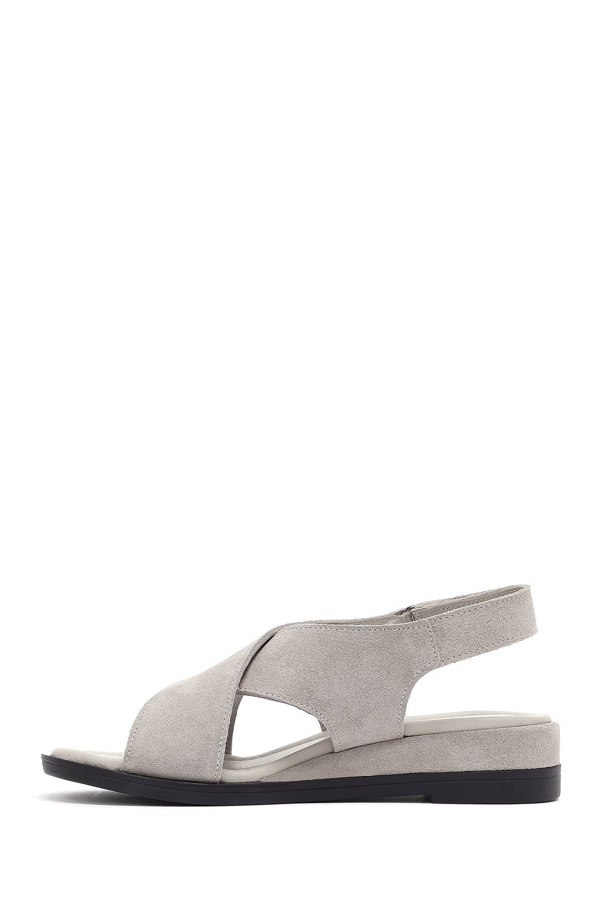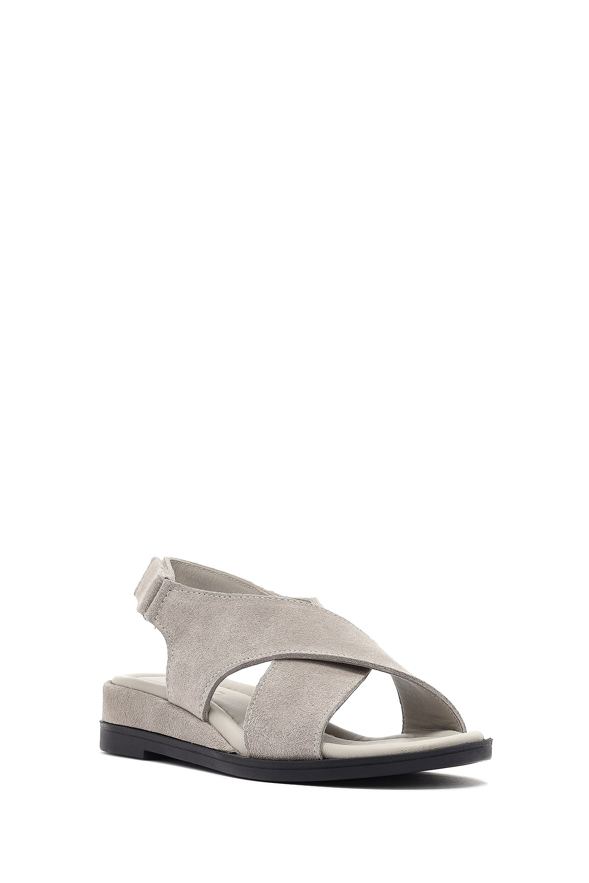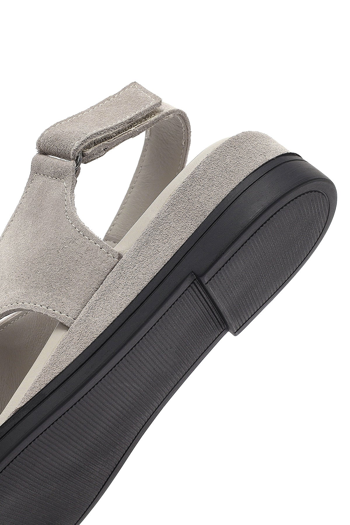 Kadın Gri Bilekten Bantlı Kalın Tabanlı Süet Deri Sandalet