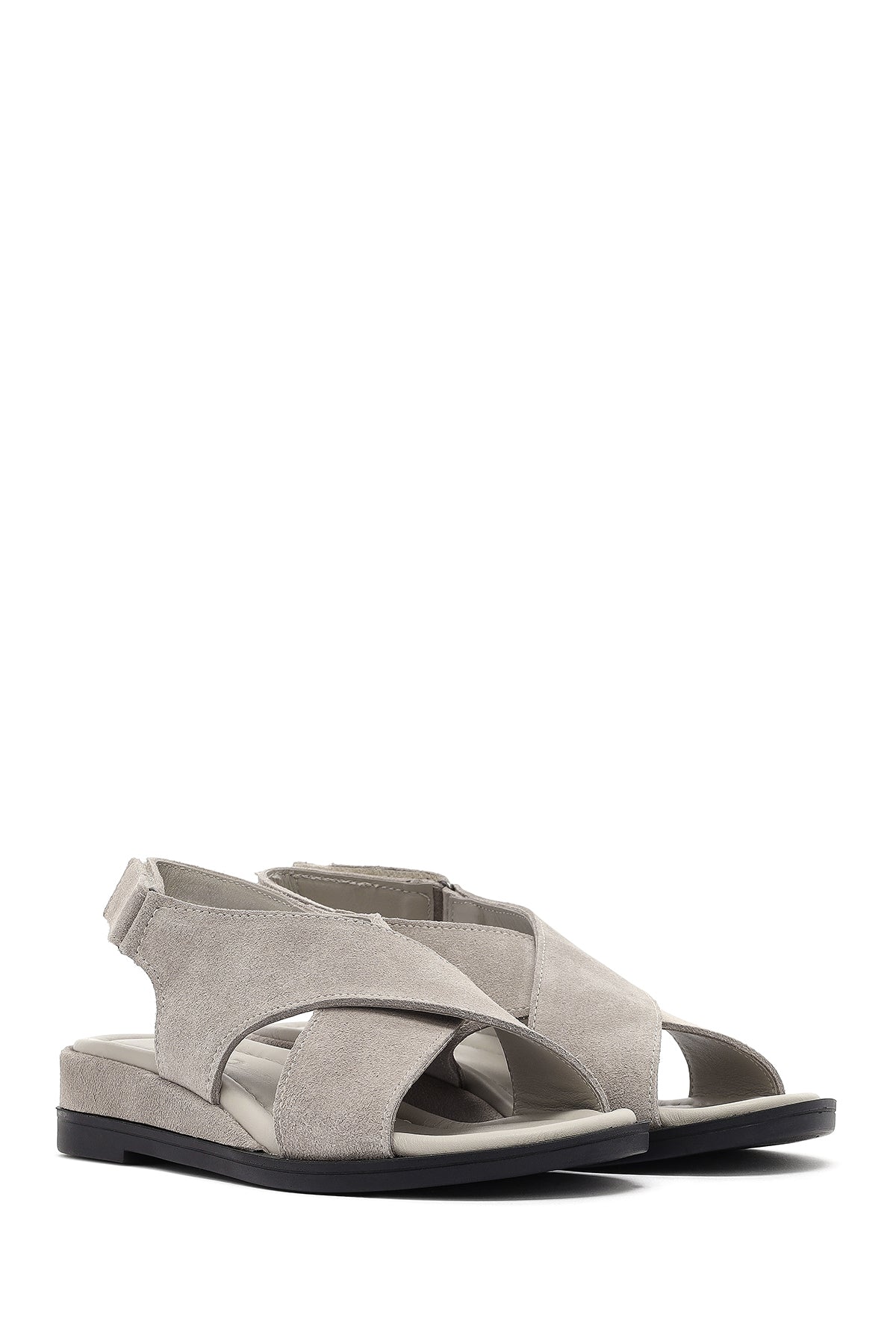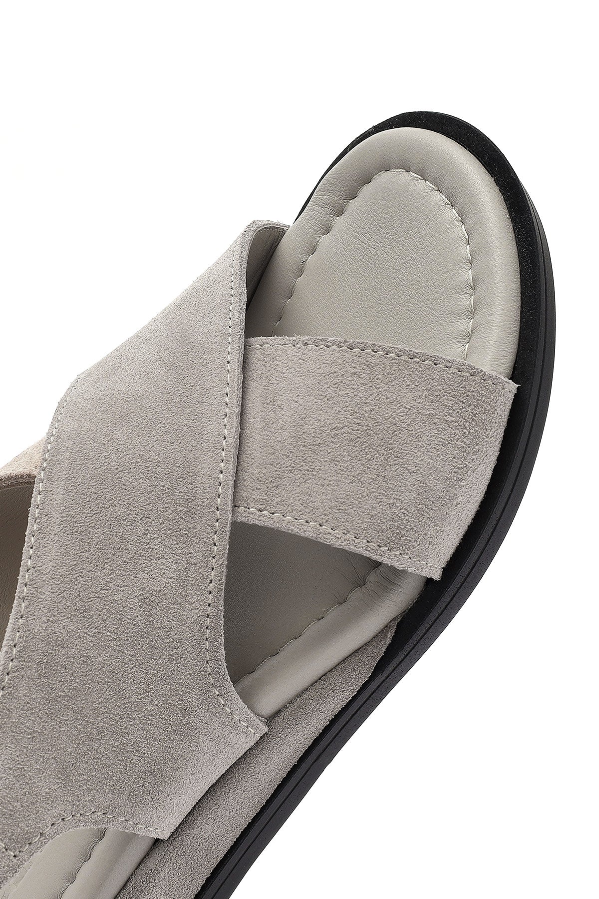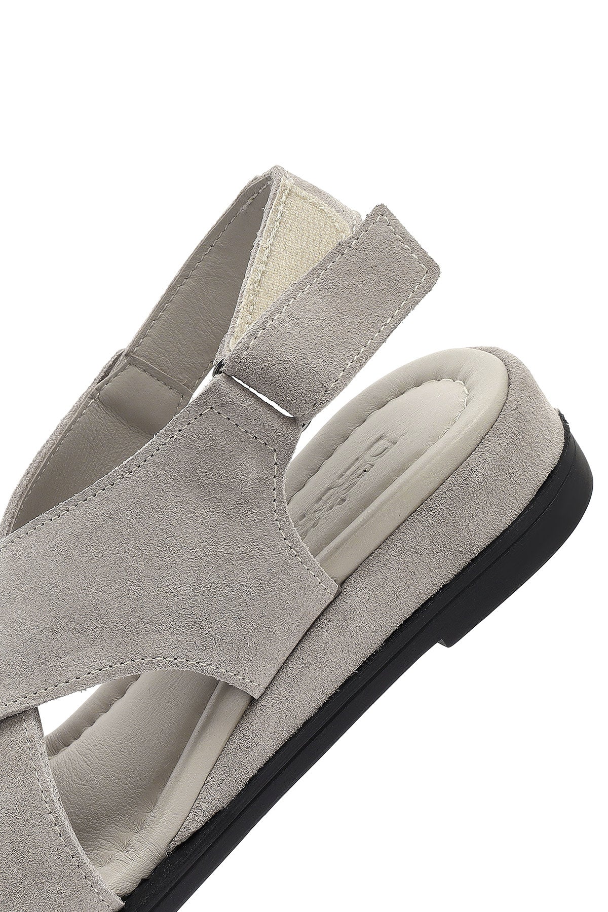 صندل زنانه طوسی چرم و جیر تخت بندی دری مد