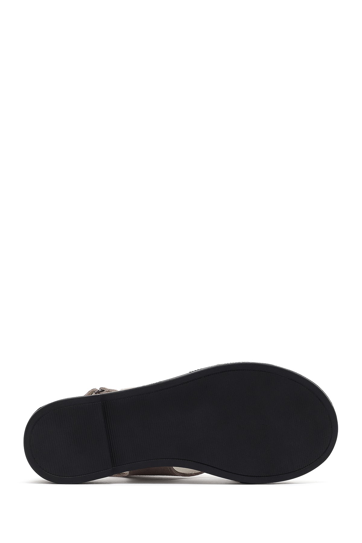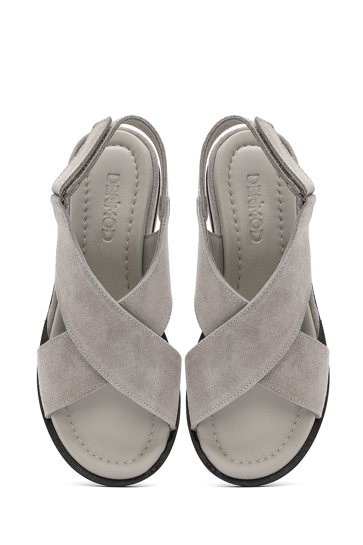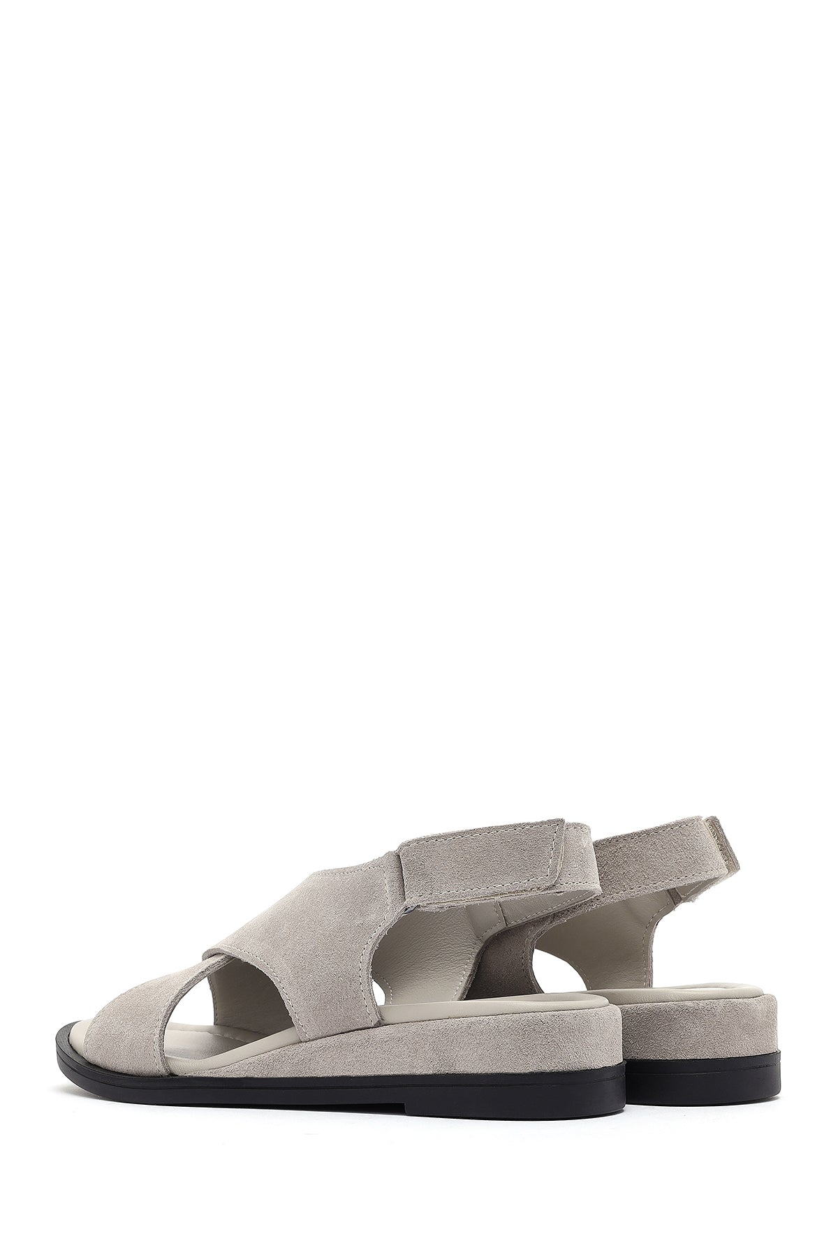 صندل زنانه طوسی چرم و جیر تخت بندی دری مد