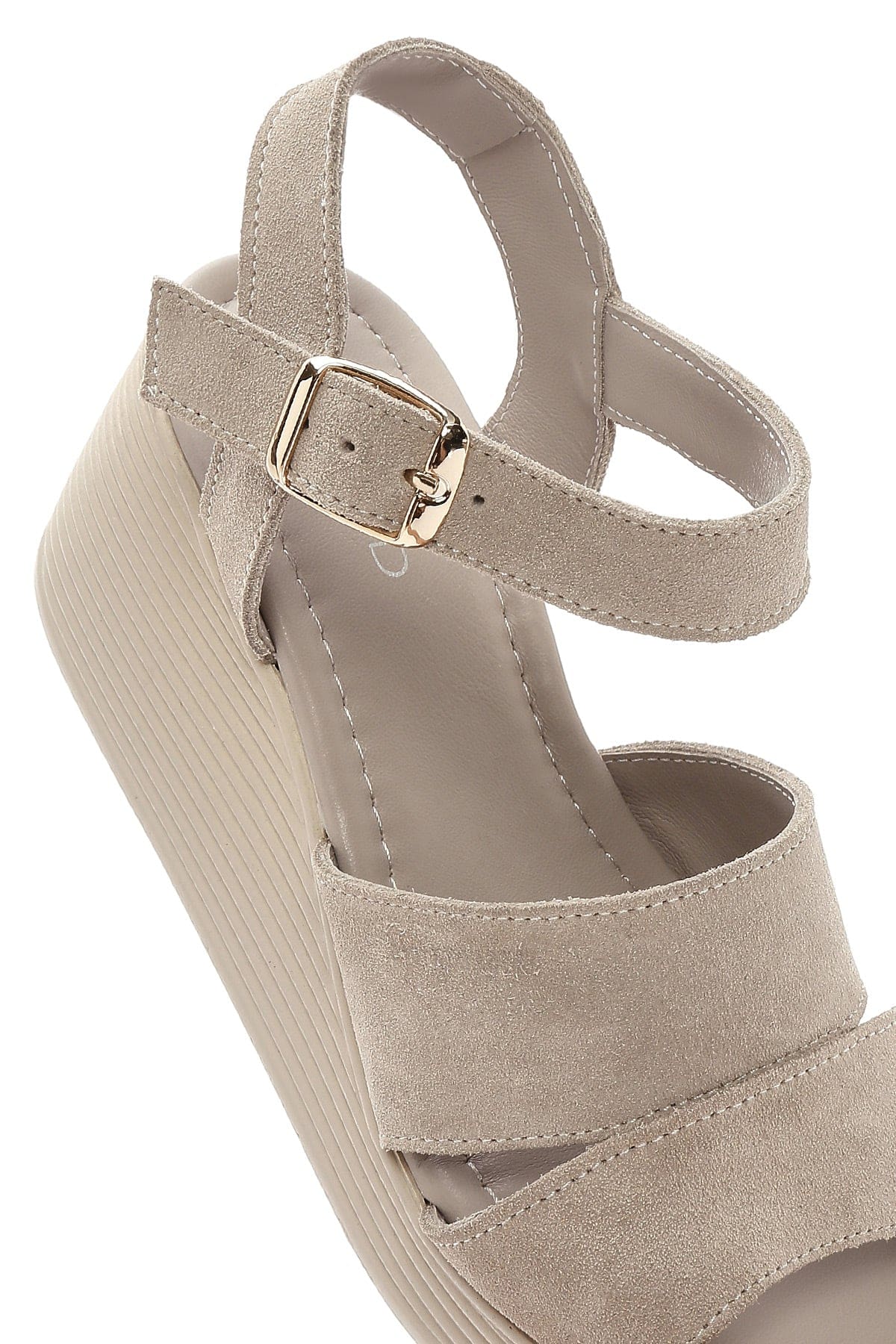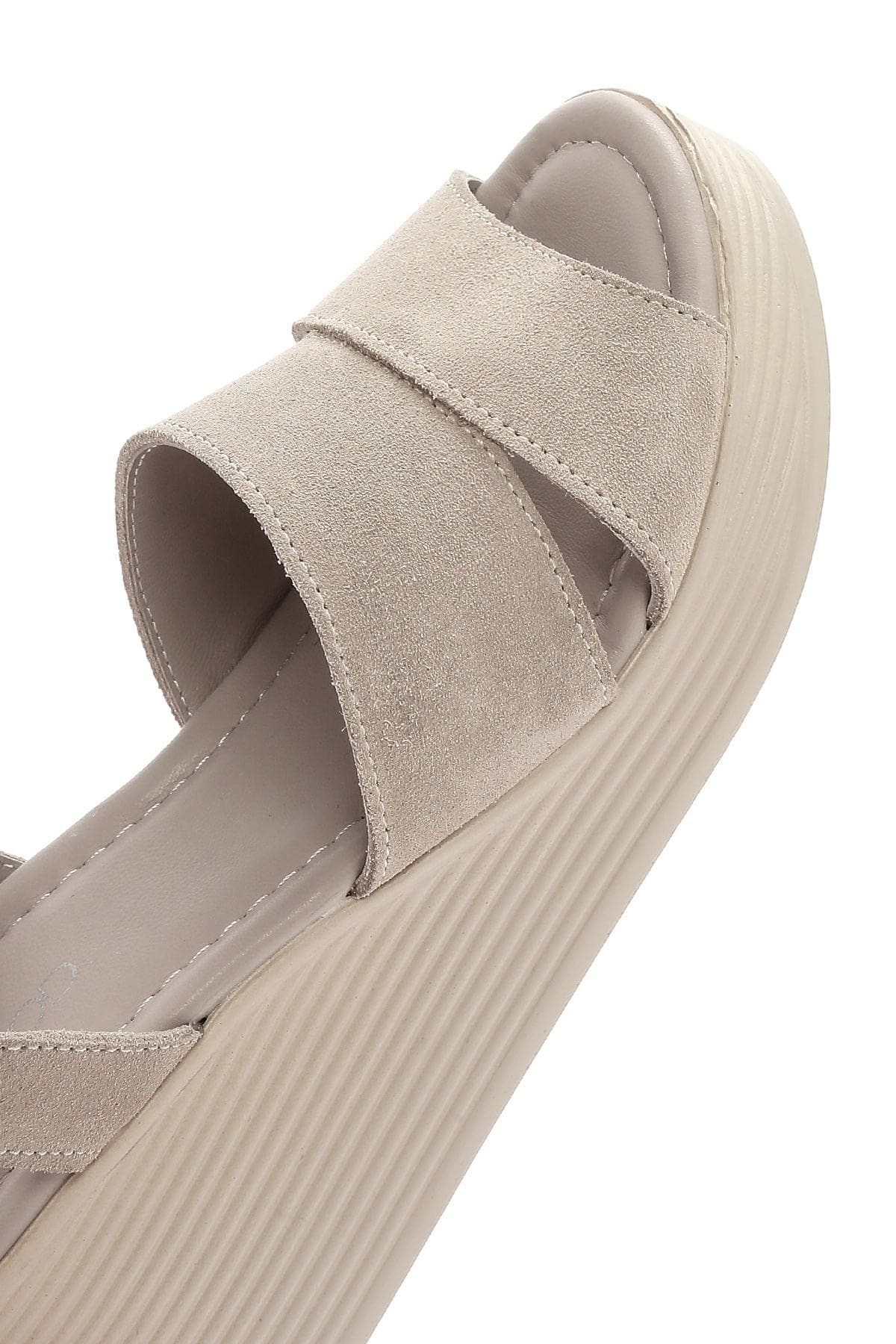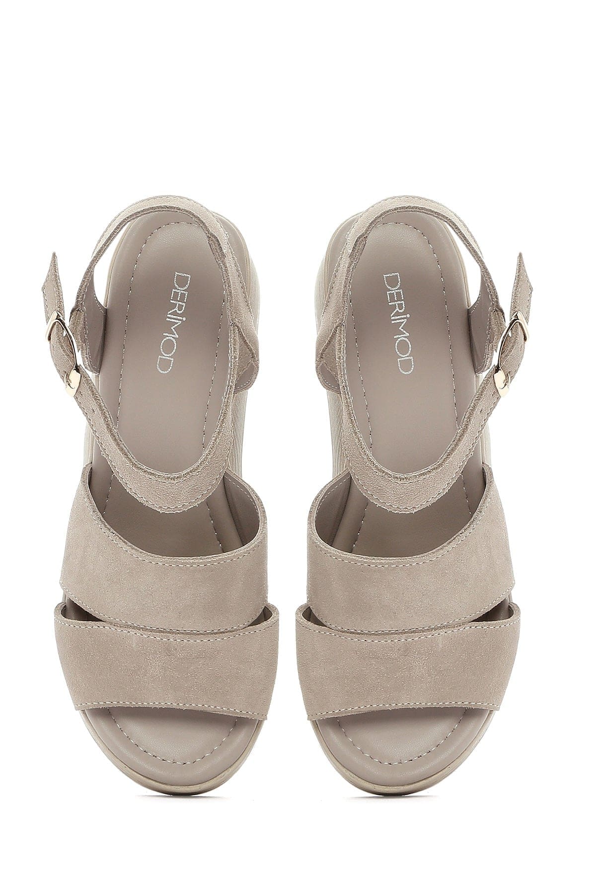 Kadın Gri Dolgu Topuklu Süet Deri Sandalet