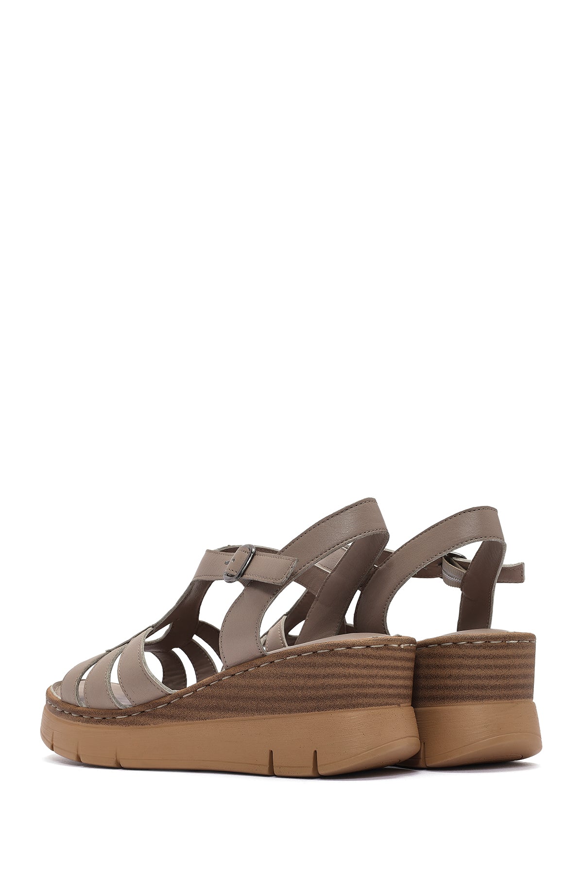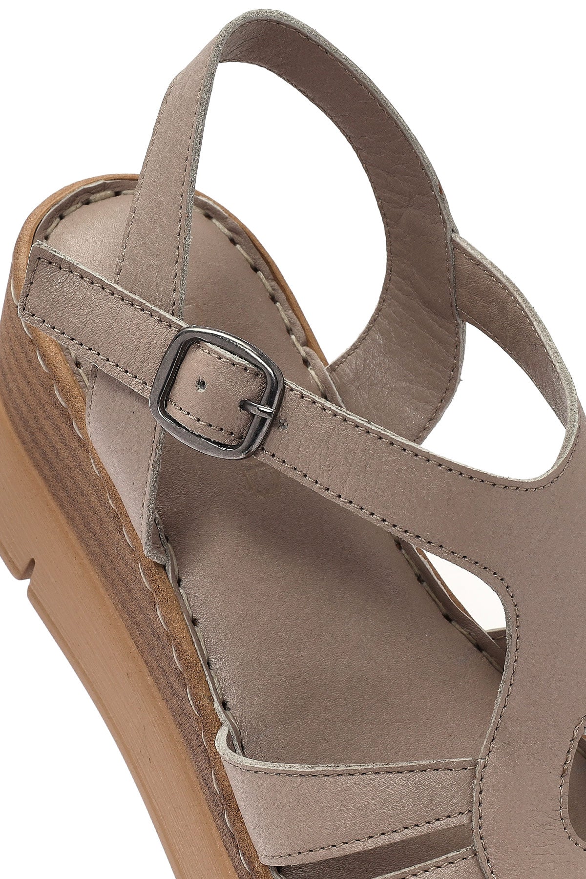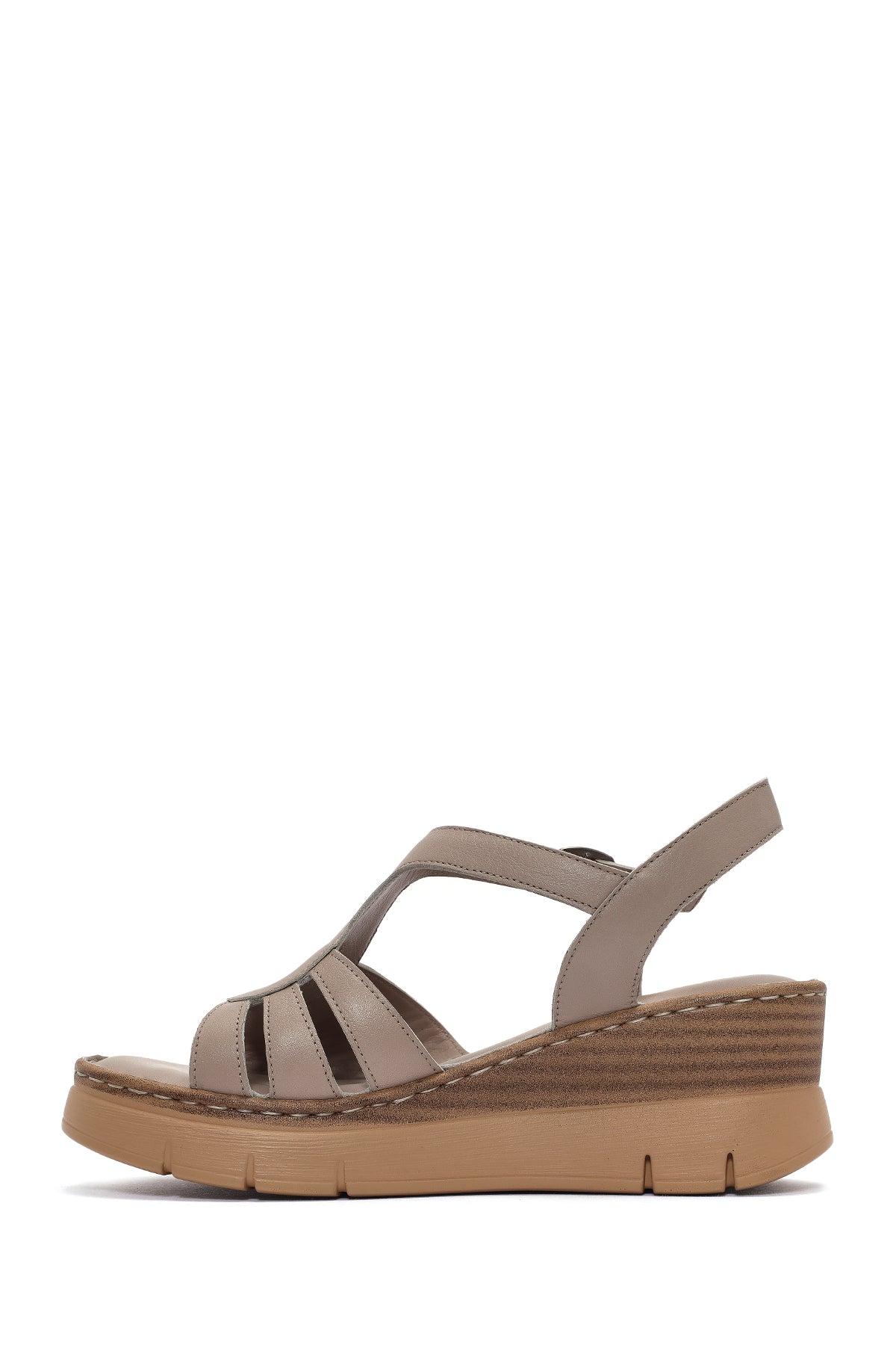 Kadın Vizon Bilekten Bantlı Dolgu Topuklu Deri Comfort Sandalet