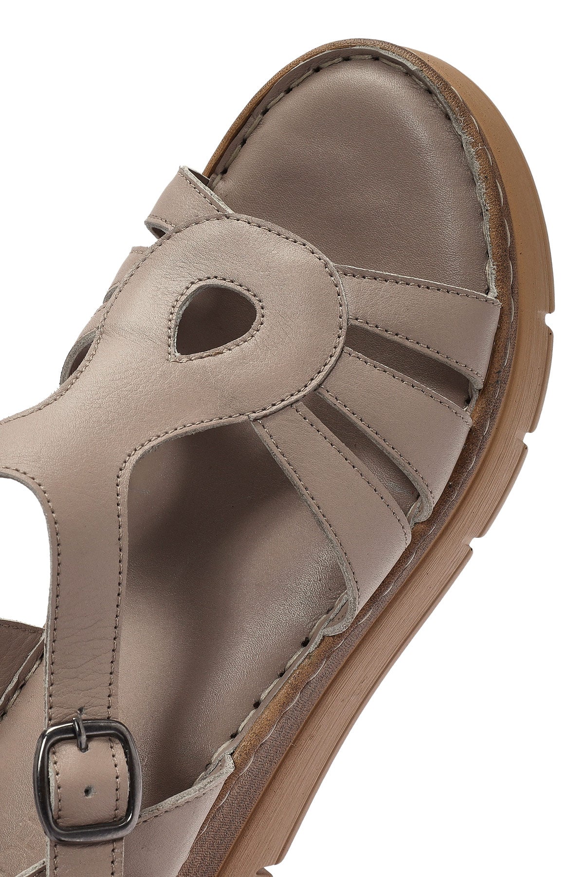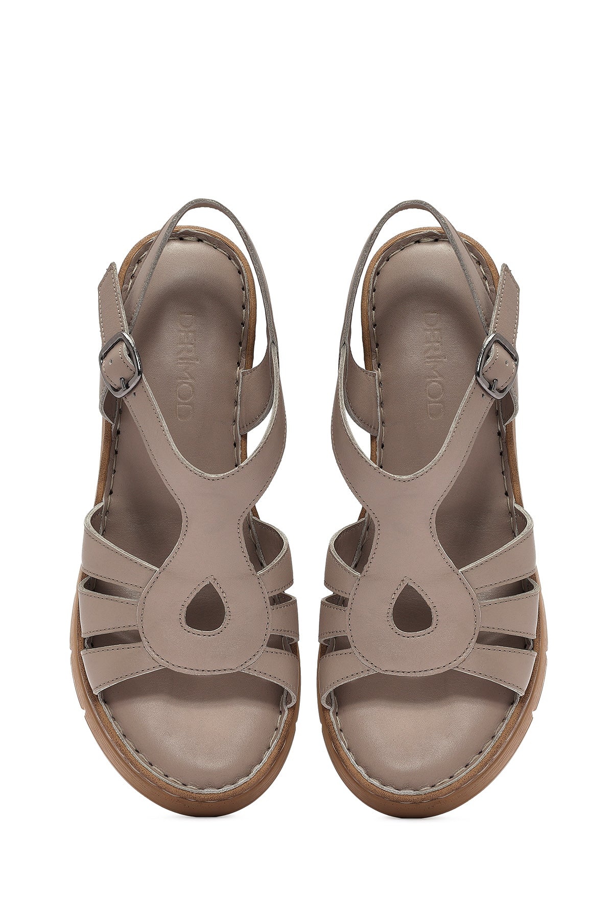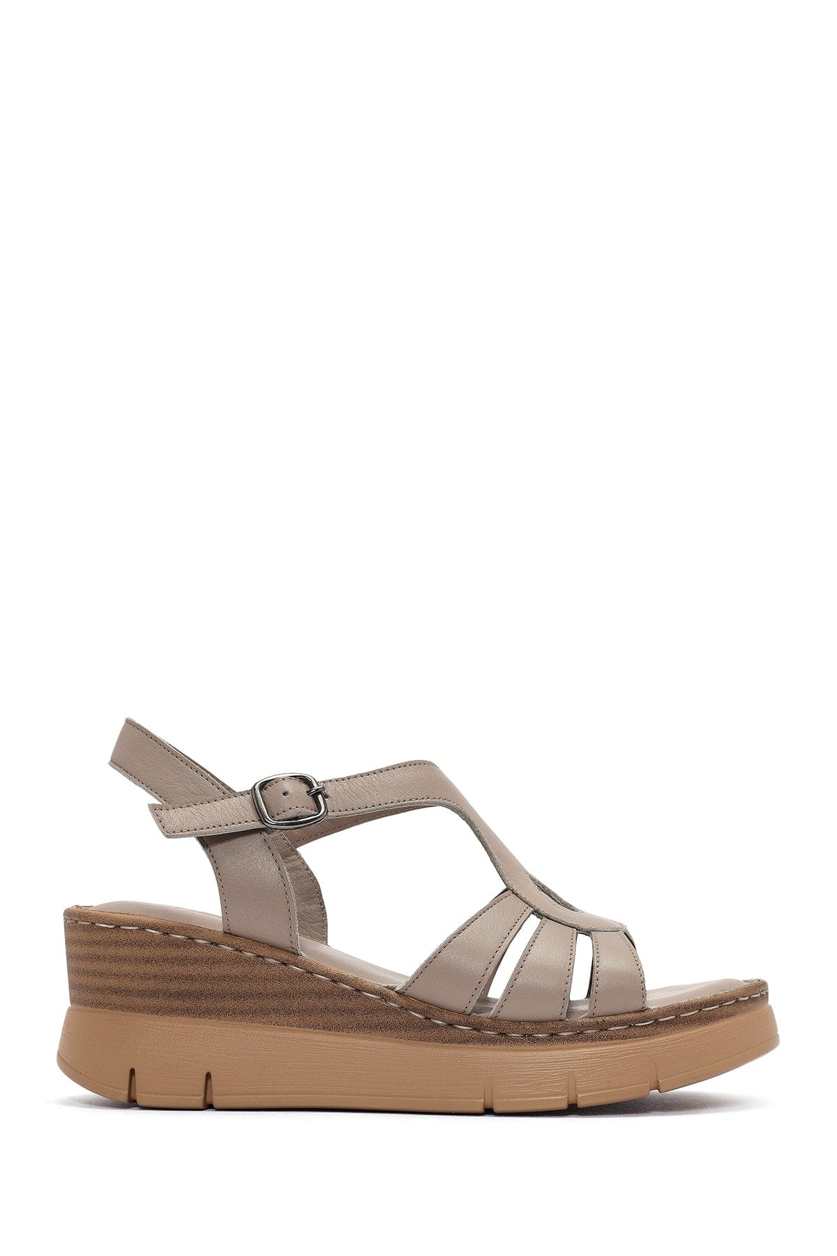 Kadın Vizon Bilekten Bantlı Dolgu Topuklu Deri Comfort Sandalet
