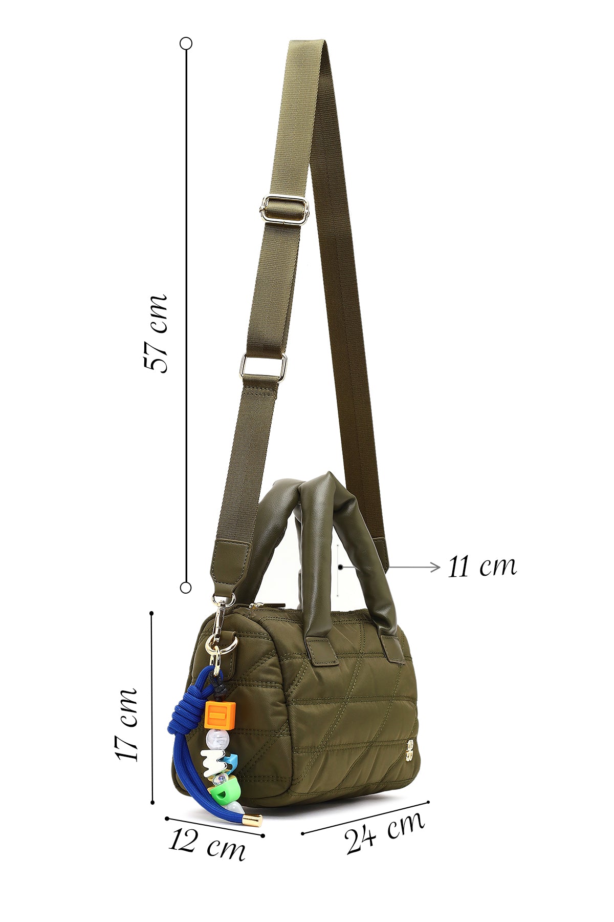 Kadın Haki Uzun Askılı Charmlı Kumaş Kol Çantası