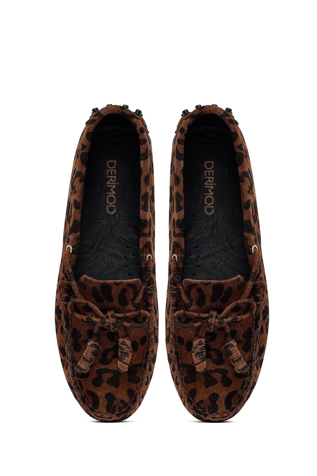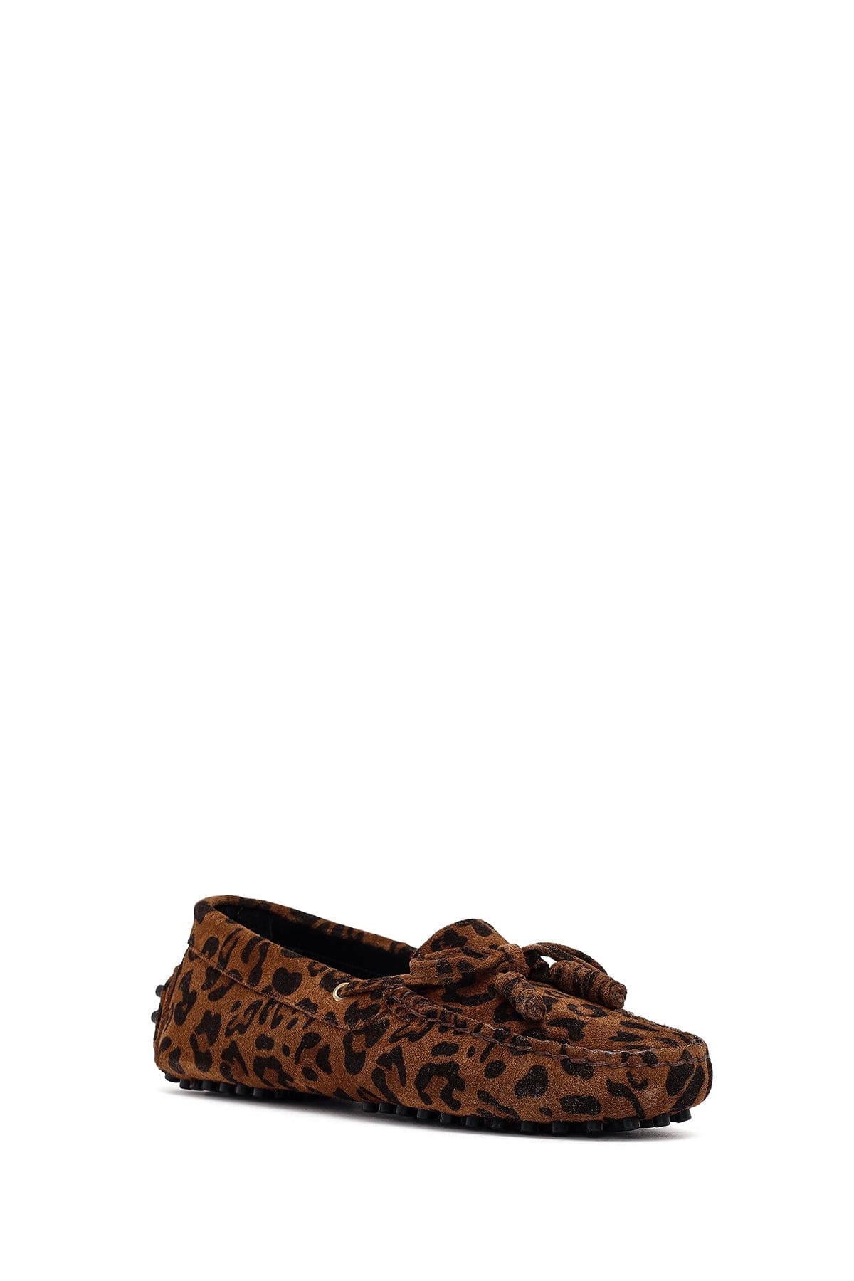 Kadın Leopar Fiyonklu Süet Deri Loafer
