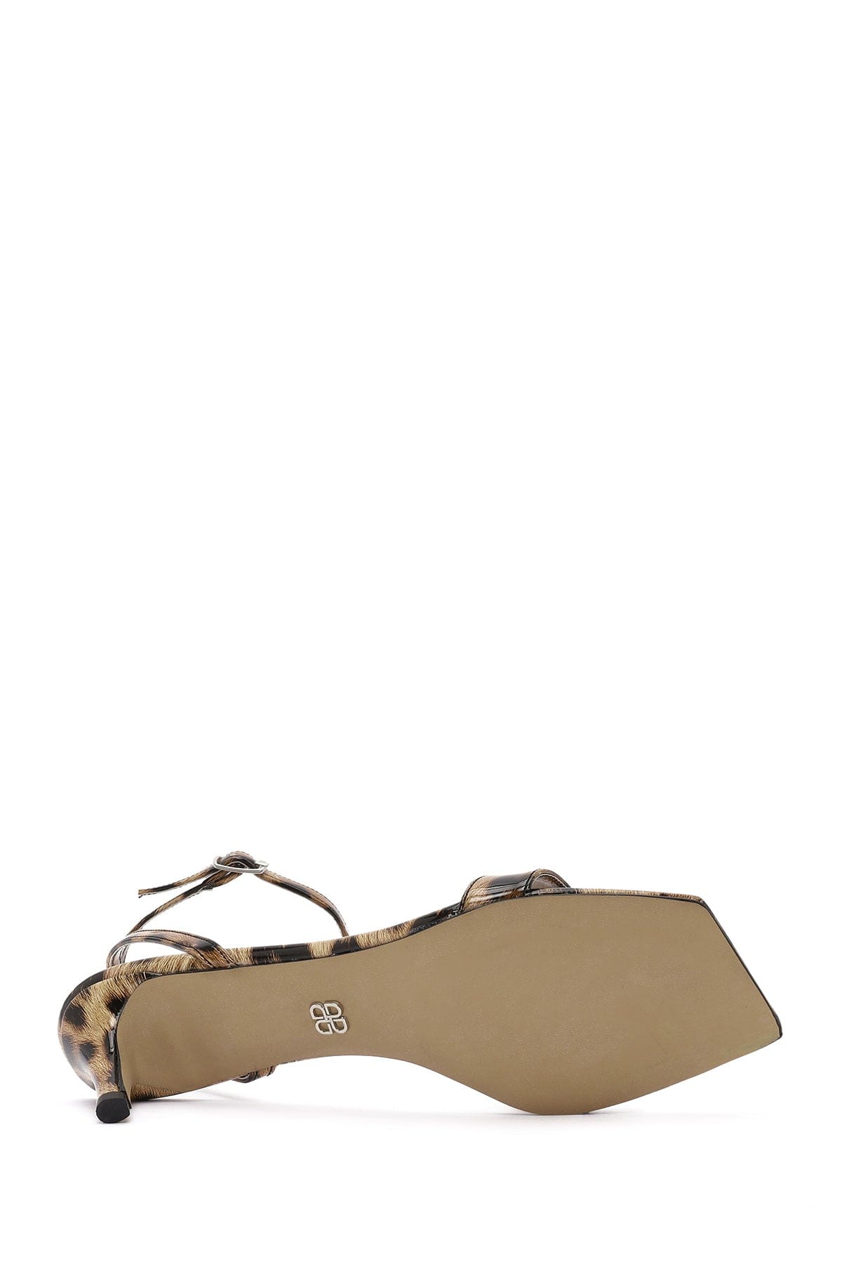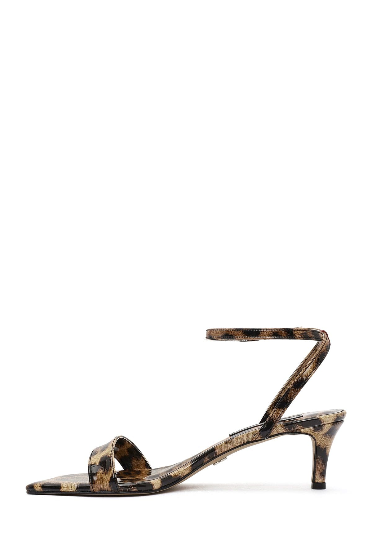 Kadın Leopar Bilekten Tokalı Kısa İnce Topuklu Rugan Sandalet