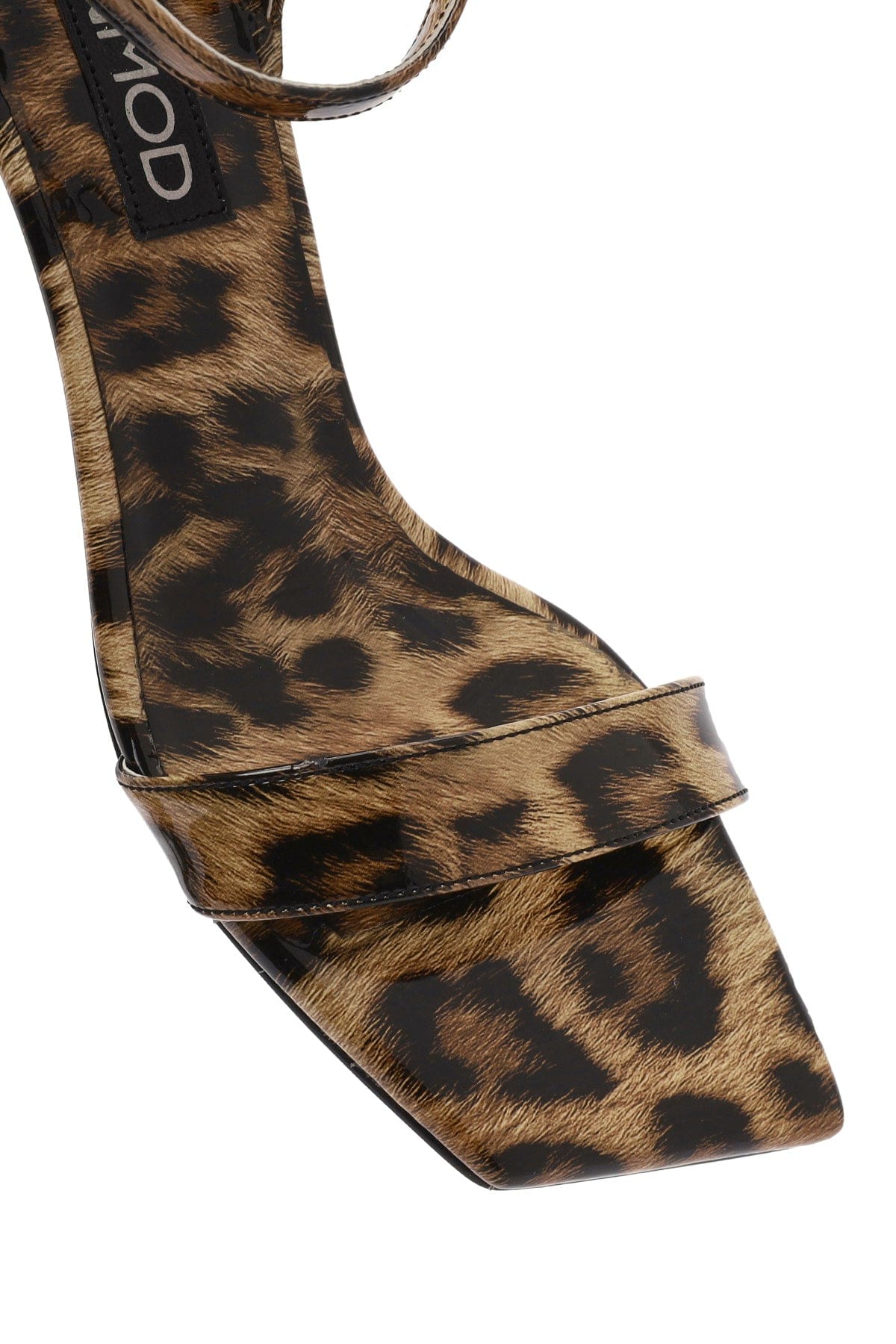 صندل زنانه پلنگی بنددار پاشنه کوتاه نازک ورنی دری مد