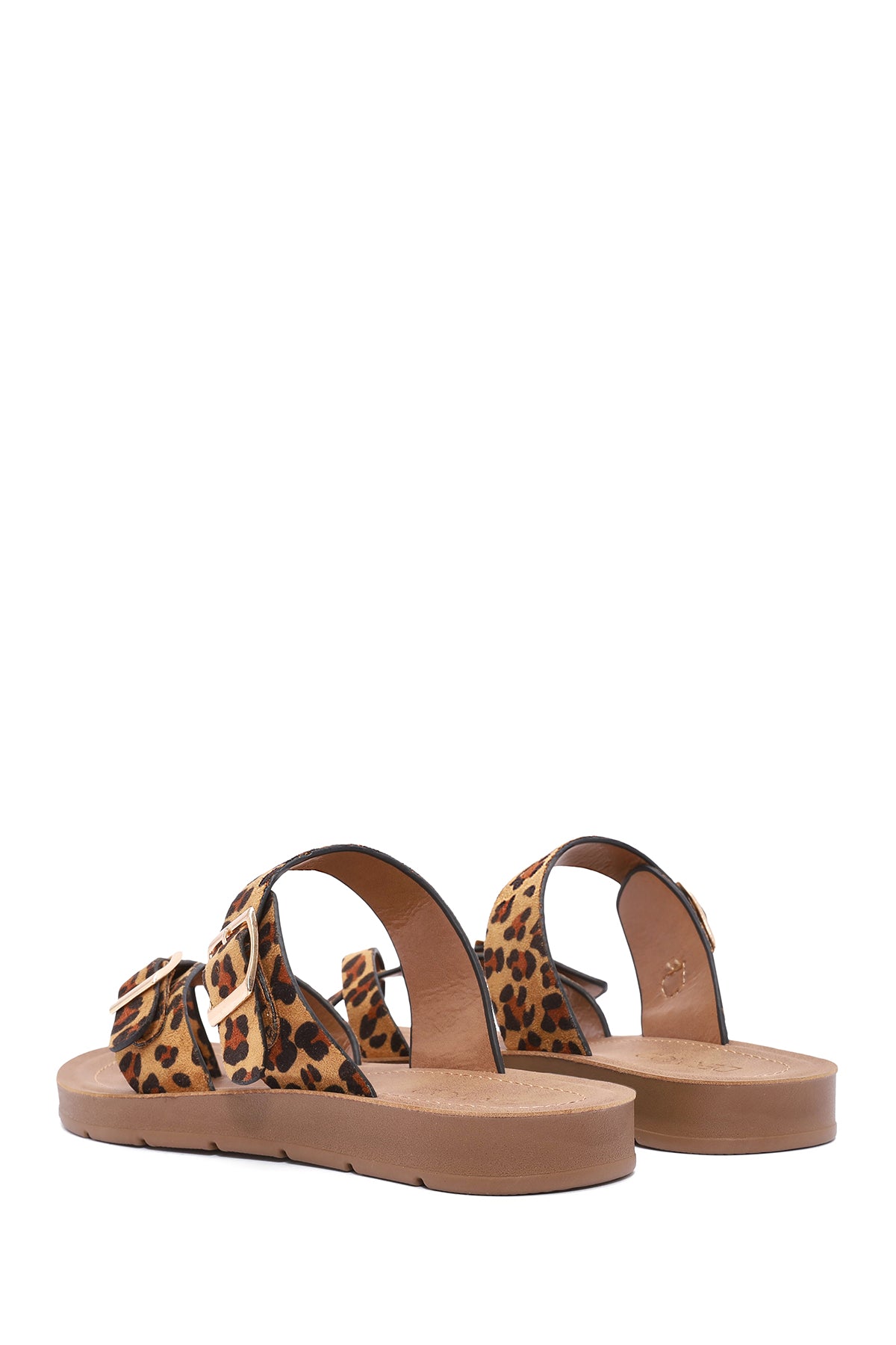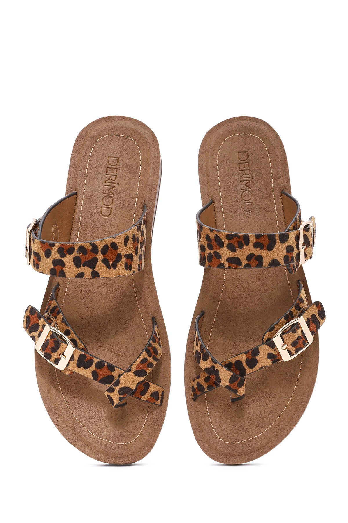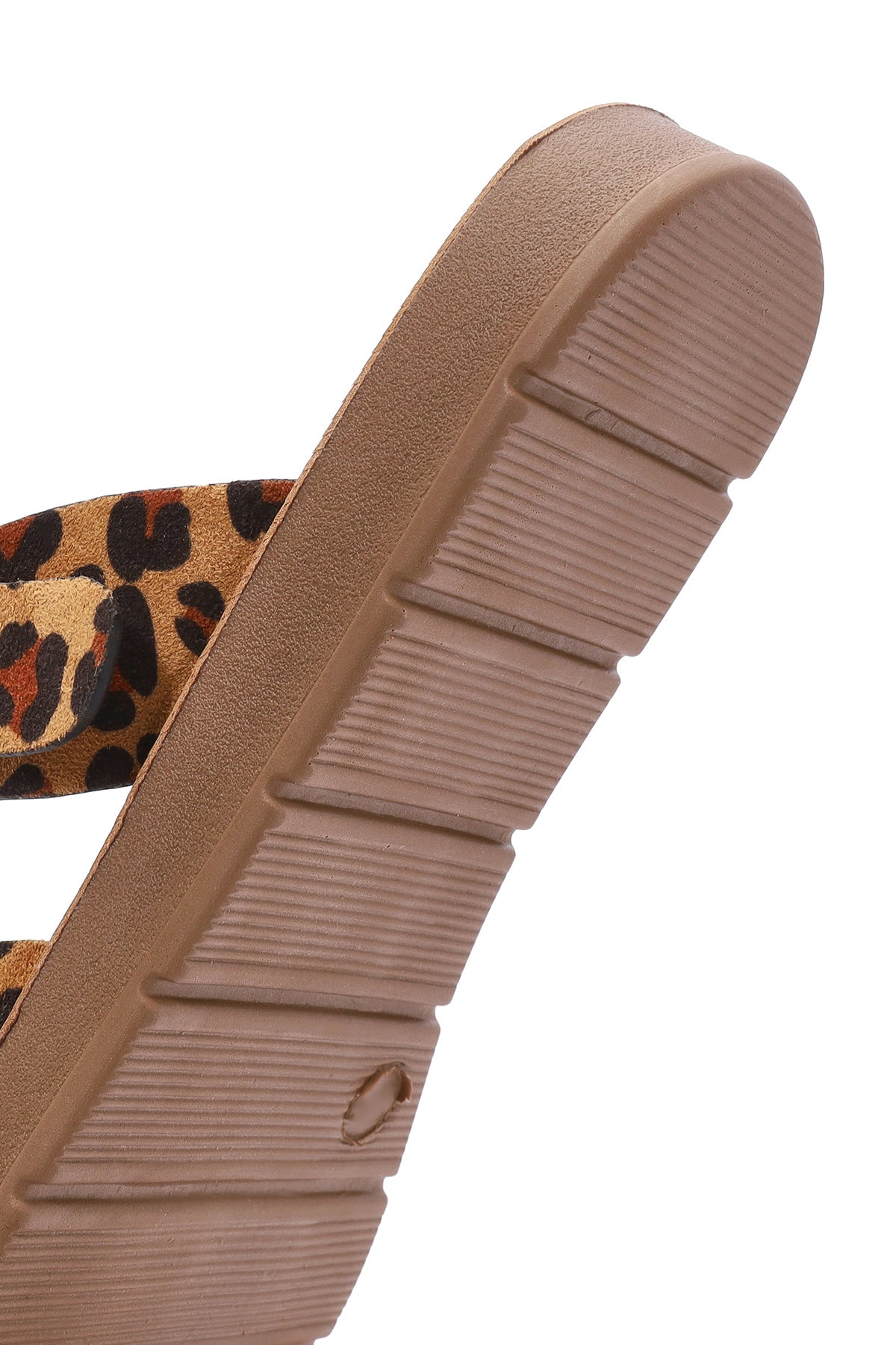Kadın Leopar Desenli Parmak Arası Süet Terlik