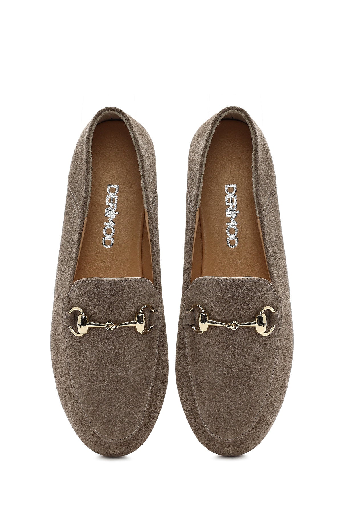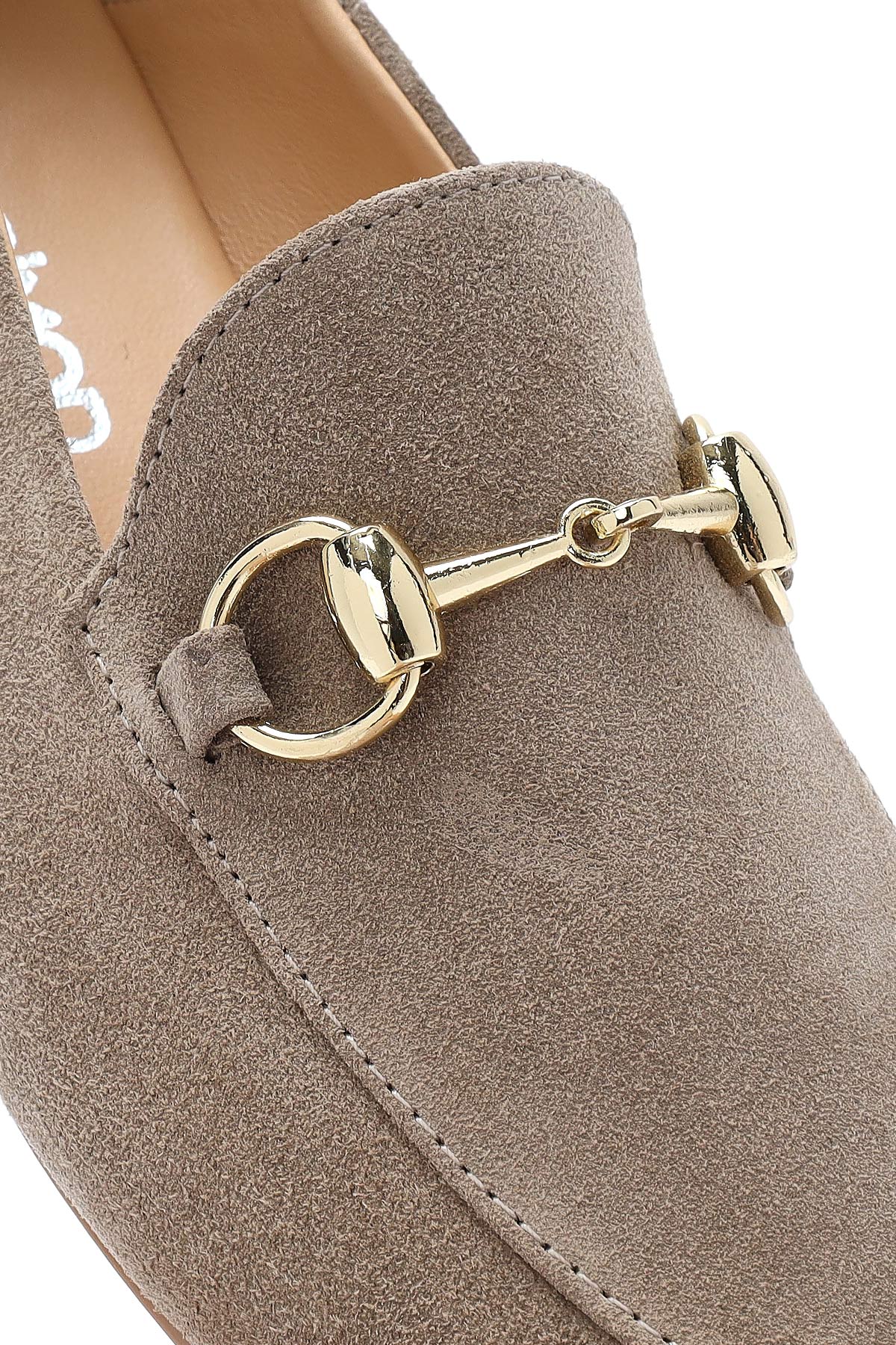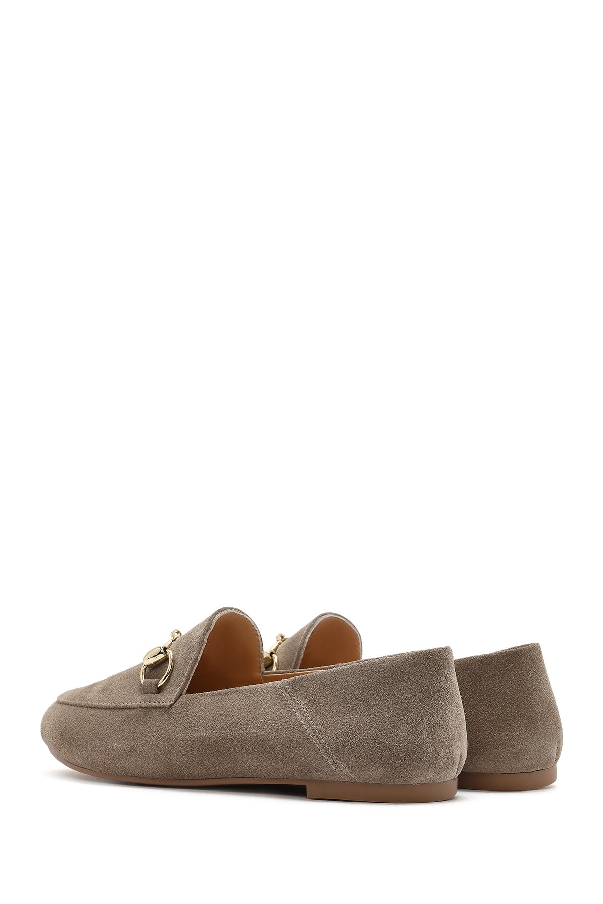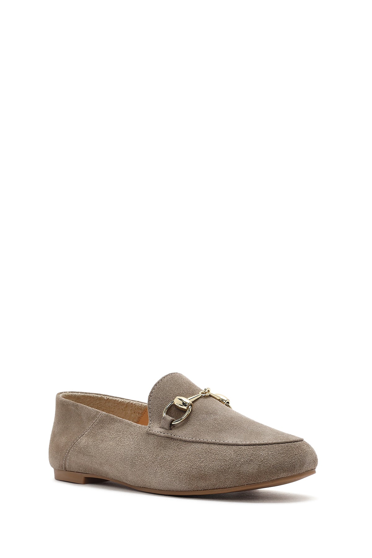 Kadın Vizon Tokalı Süet Deri Maskülen Loafer