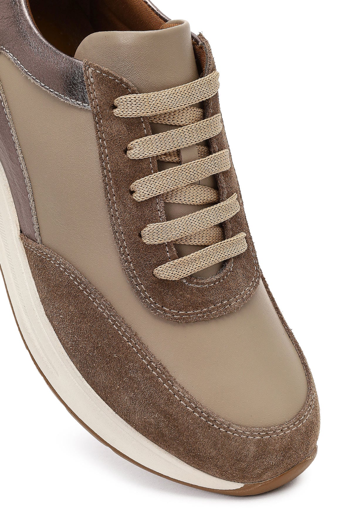 Kadın Vizon Bağcıklı Dolgu Topuklu Deri Sneaker