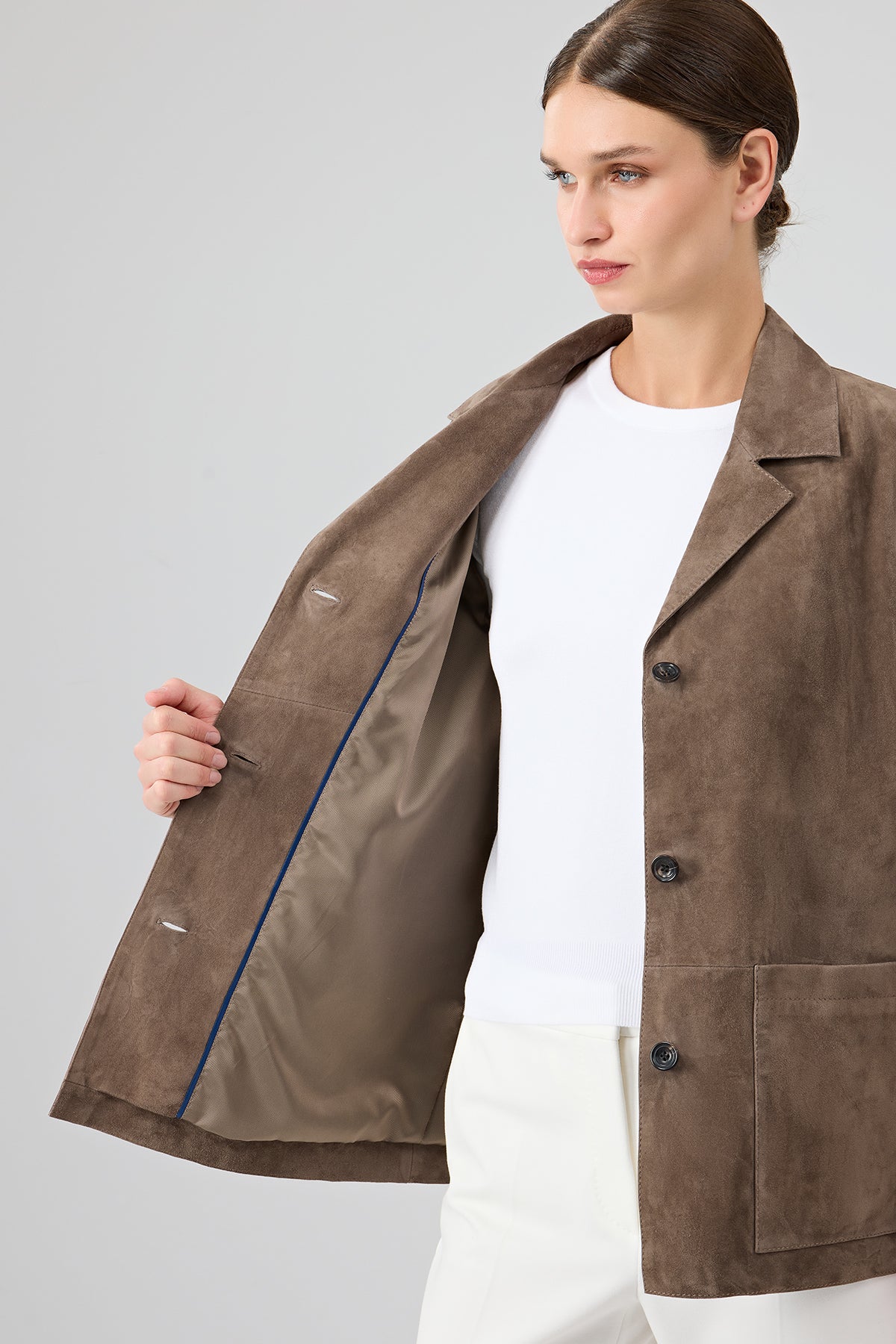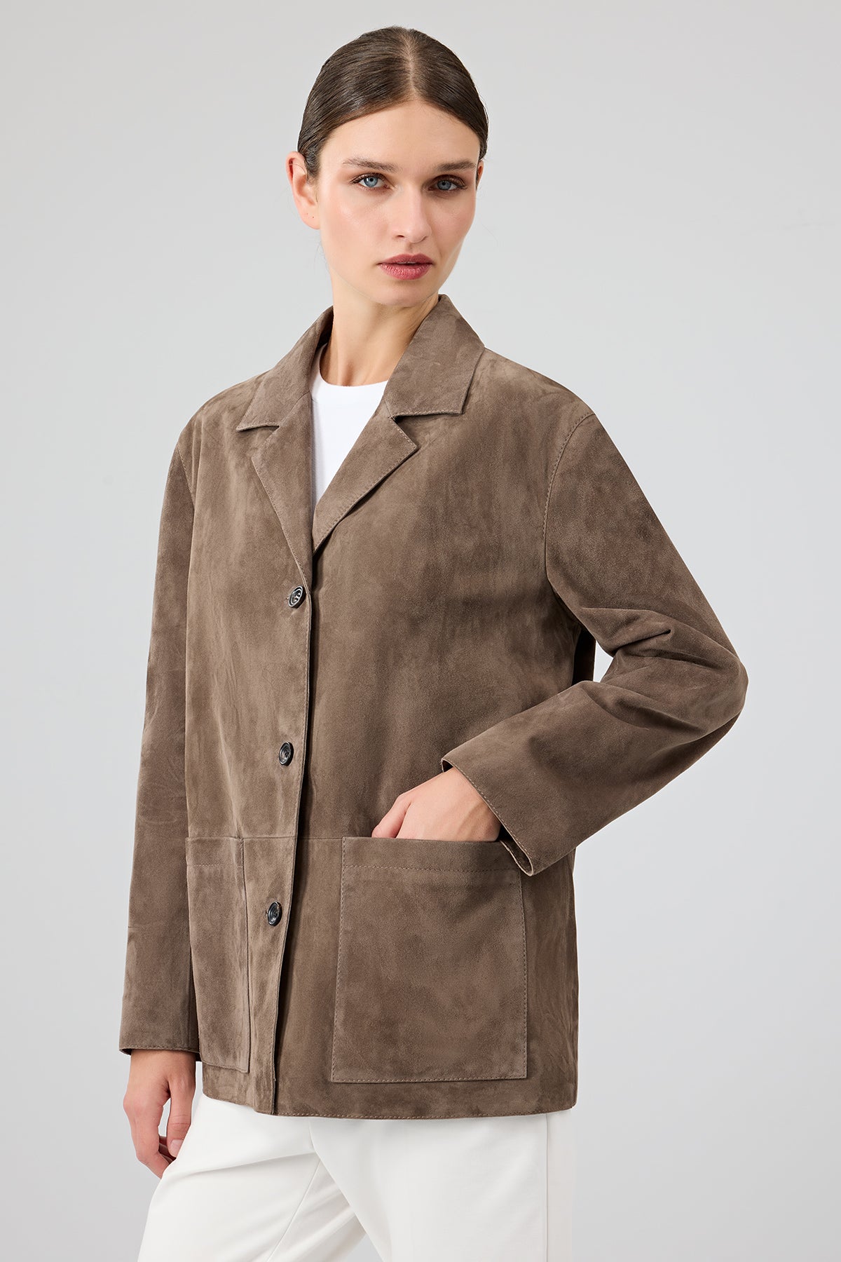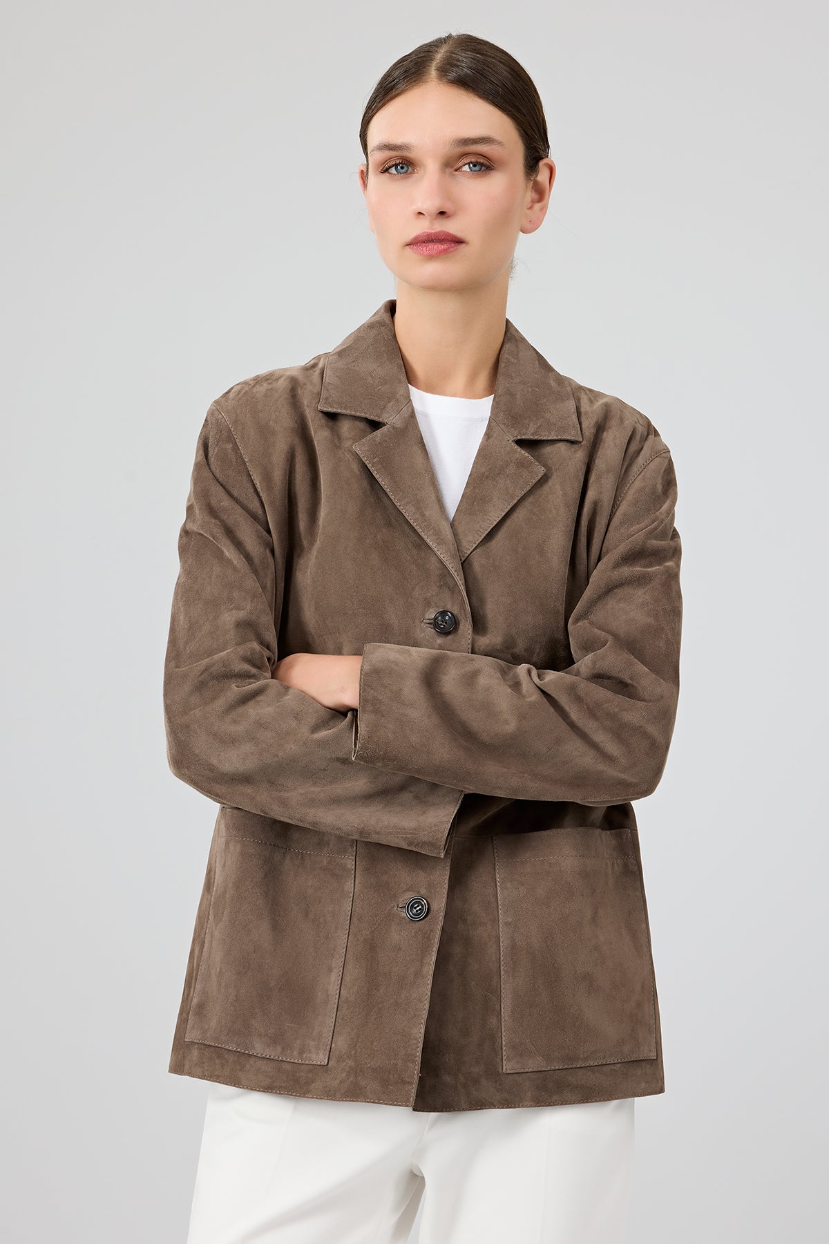 Gloria Kadın Vizon Oversize Süet Deri Ceket