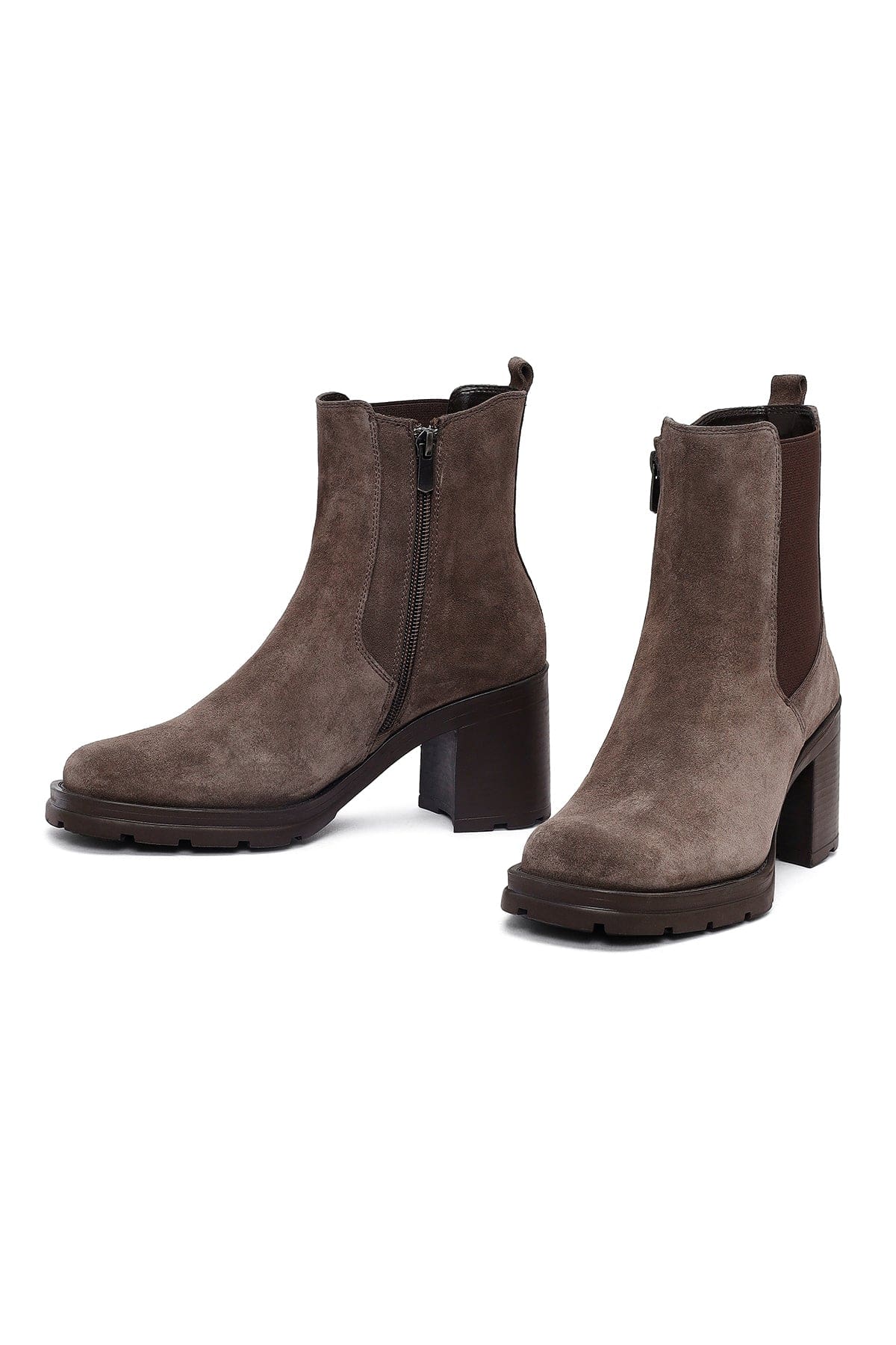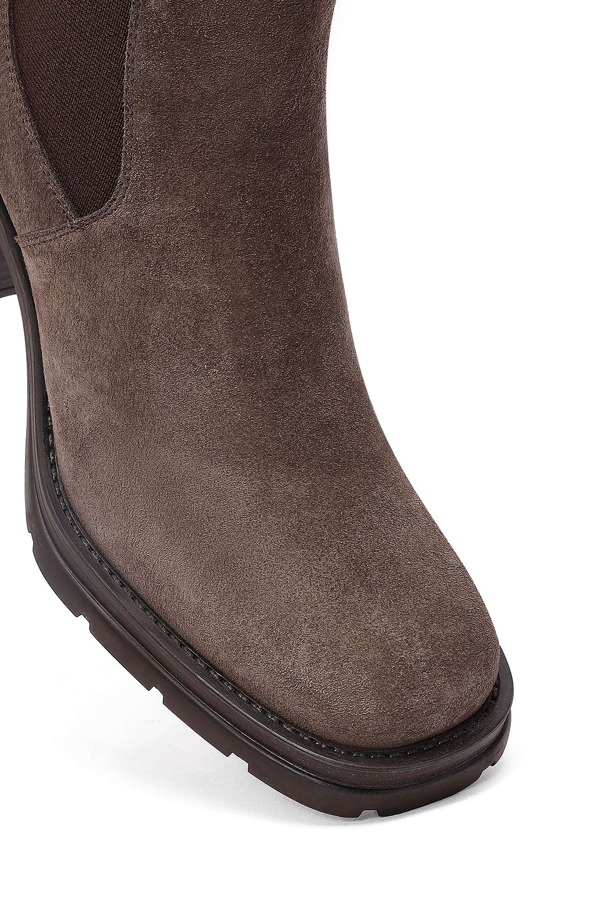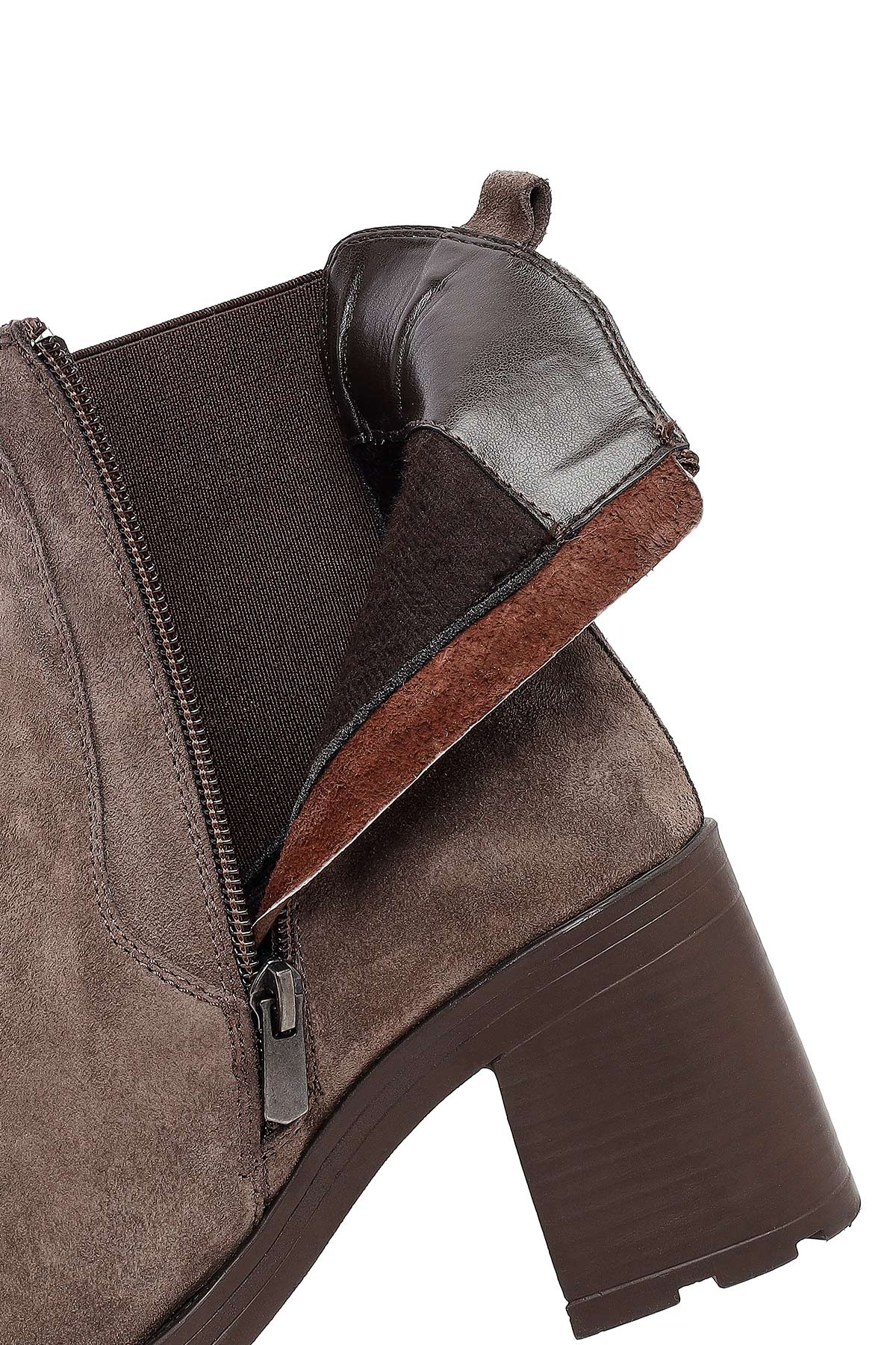 Kadın Vizon Fermuarlı Kalın Topuklu Süet Deri Bot