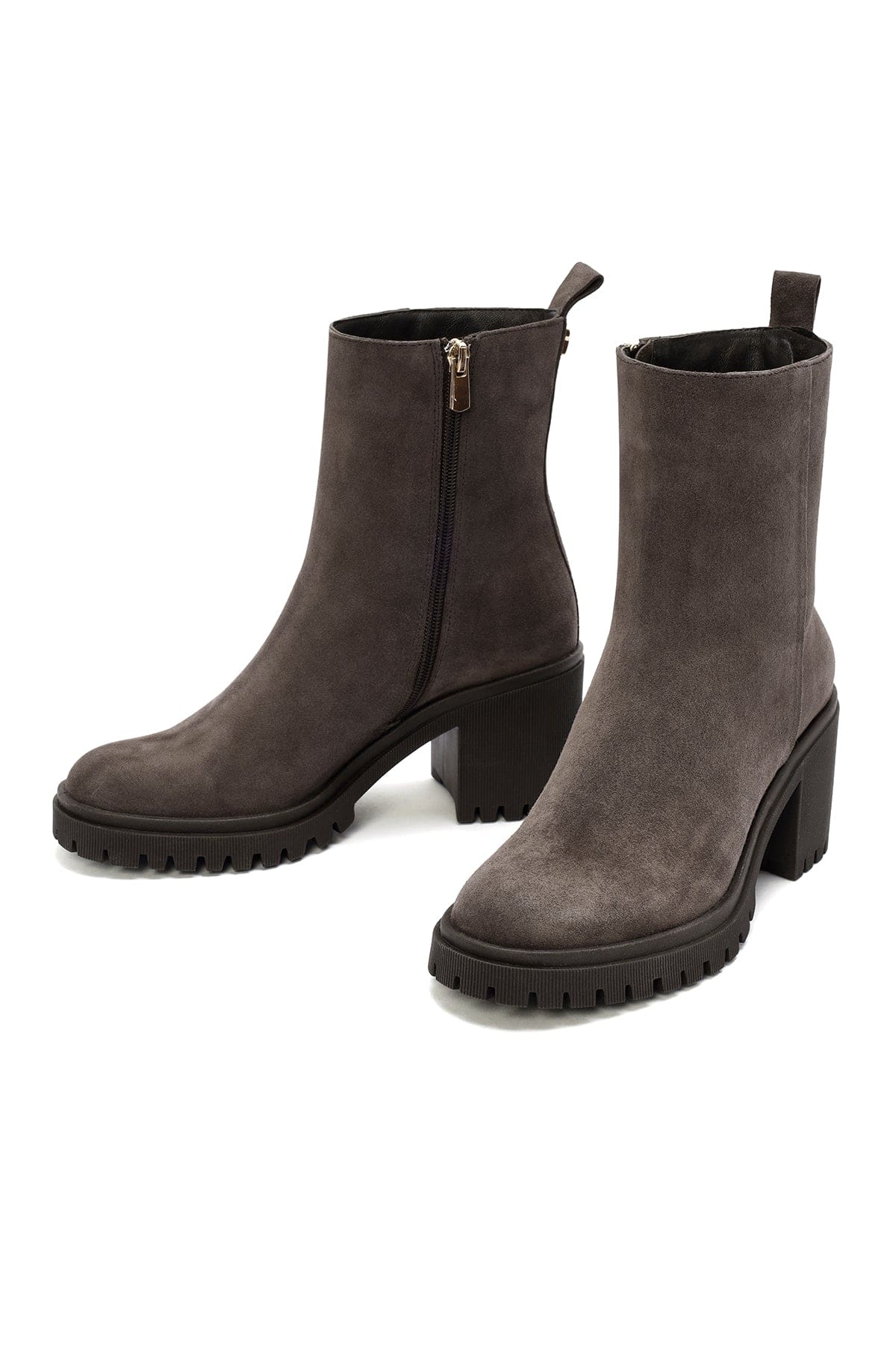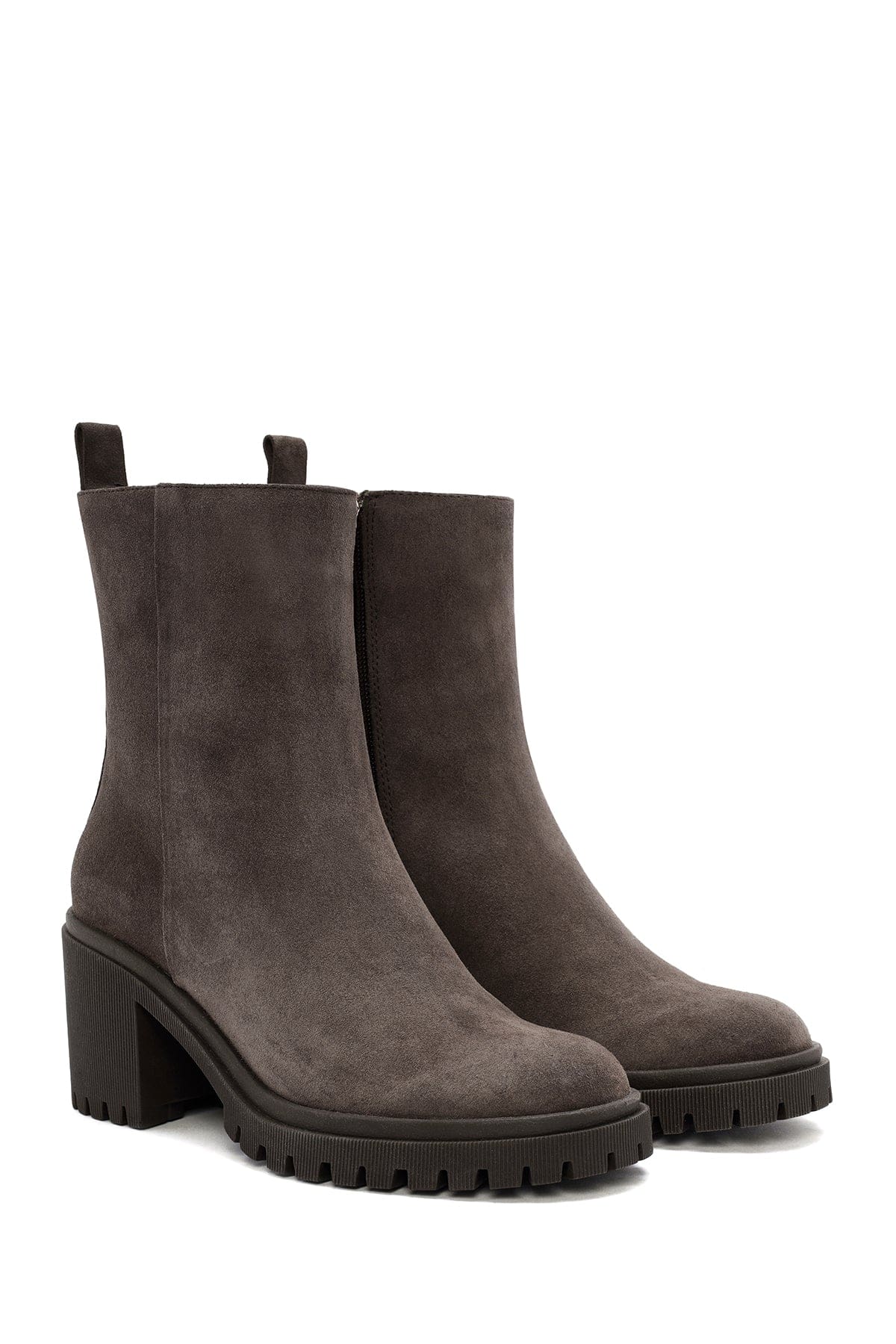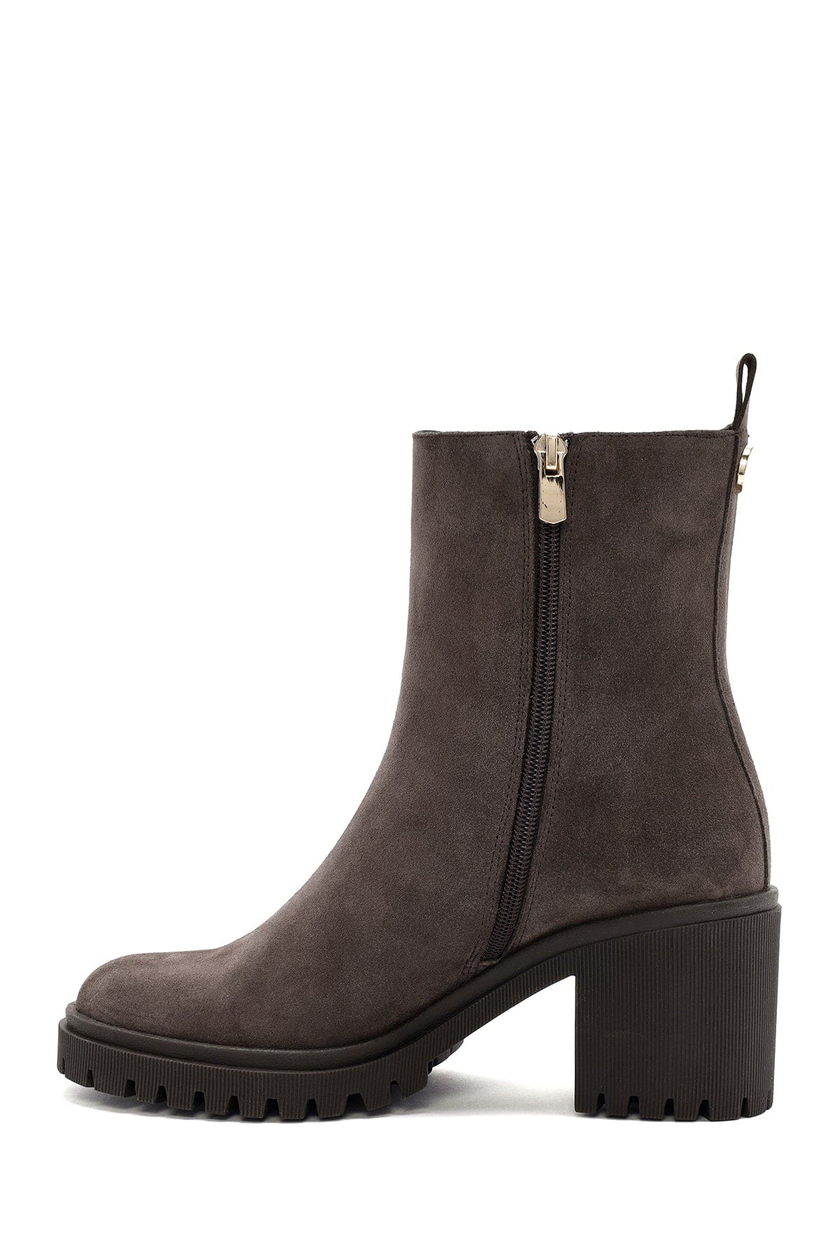 Kadın Vizon Fermuarlı Topuklu Süet Deri Bot
