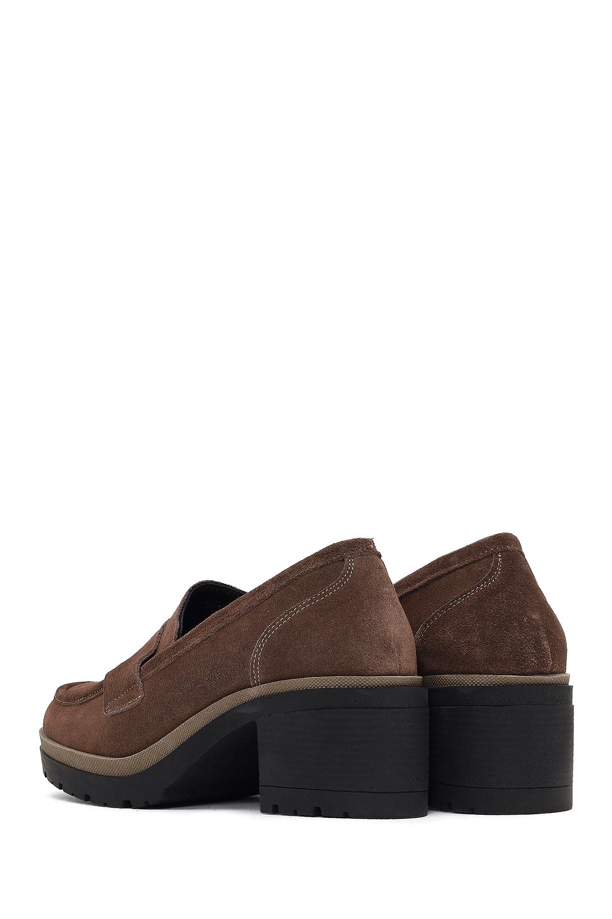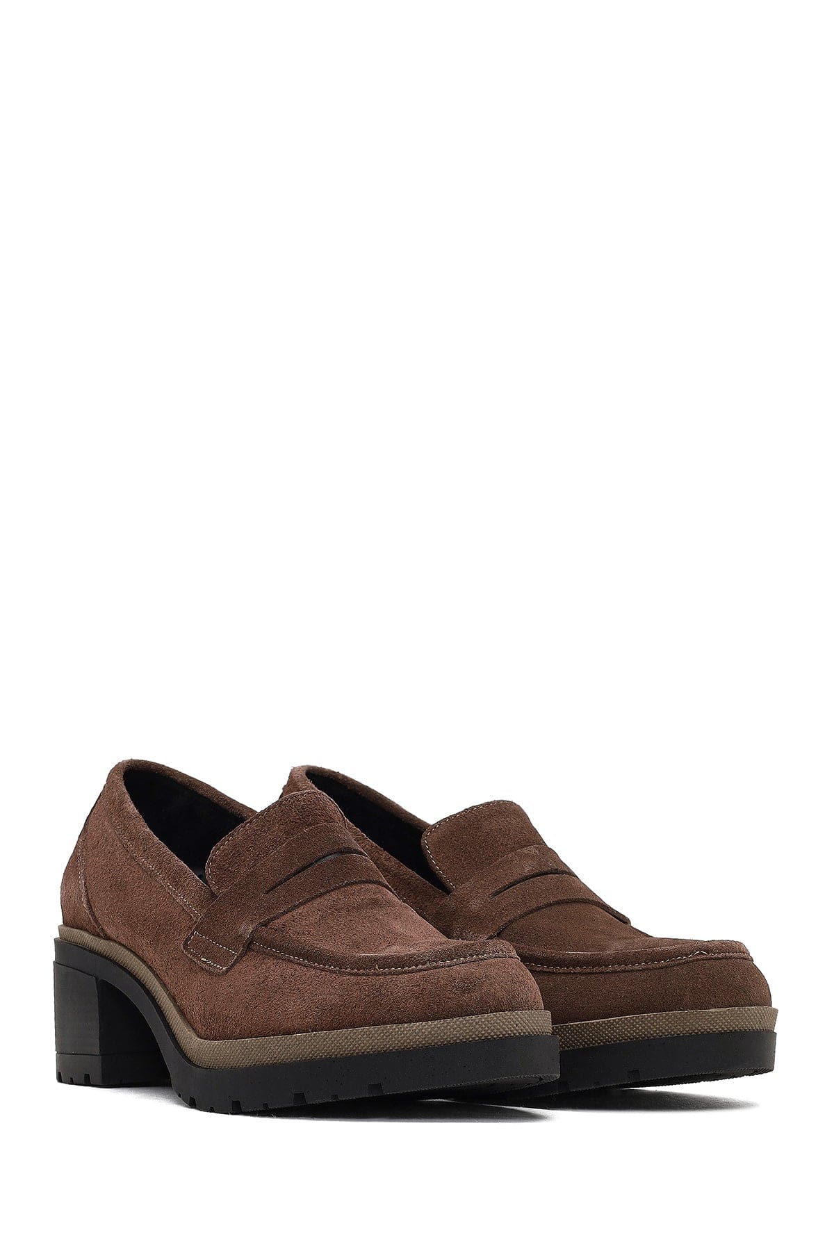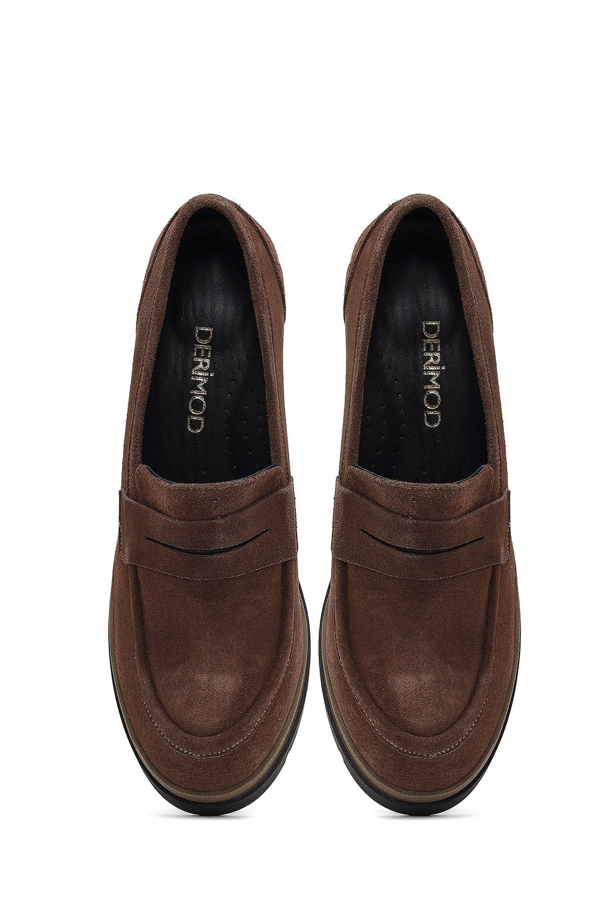 Kadın Vizon Kalın Topuklu Süet Deri Maskülen Loafer