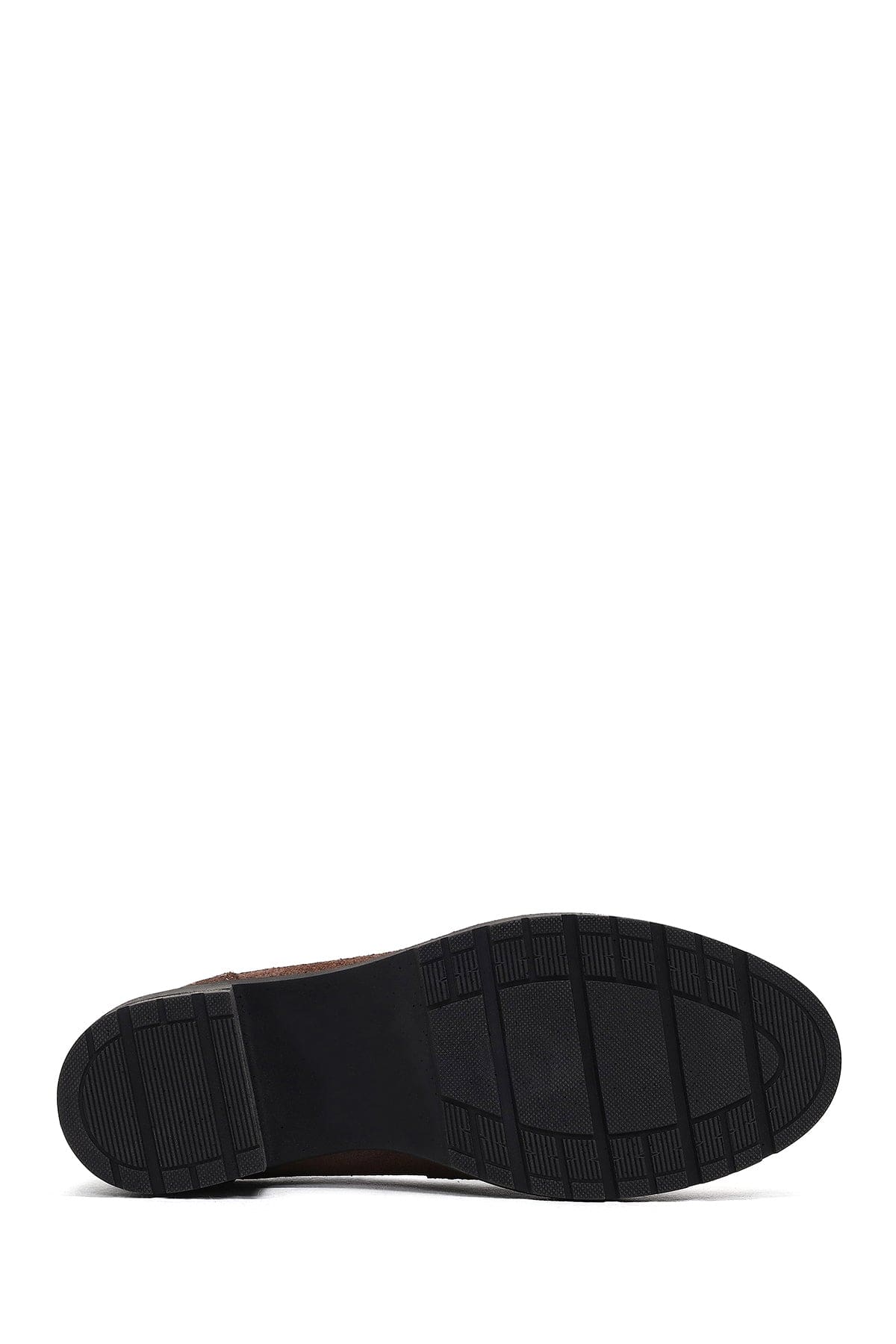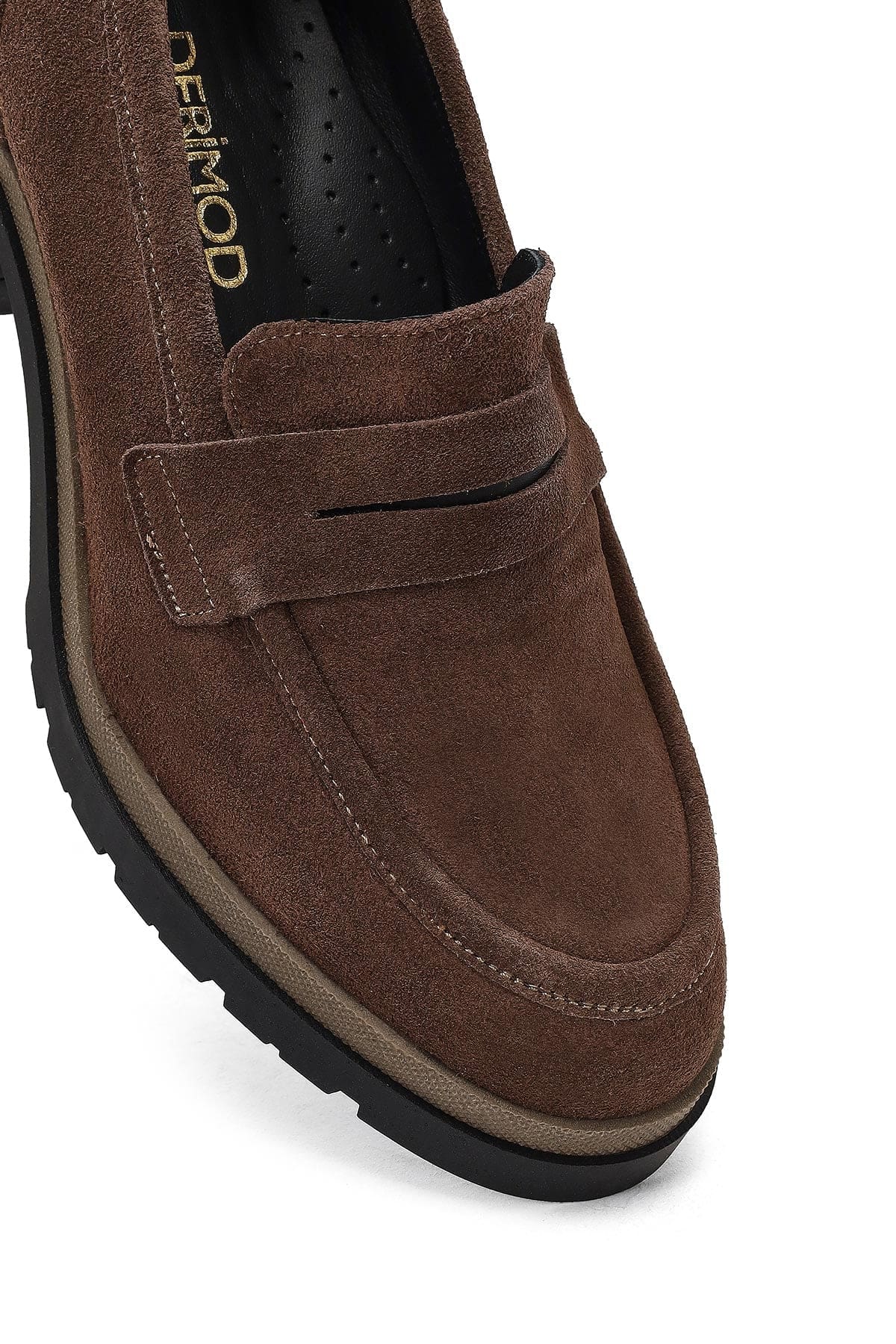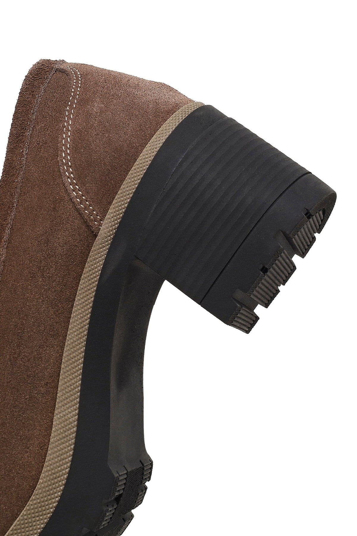 Kadın Vizon Kalın Topuklu Süet Deri Maskülen Loafer