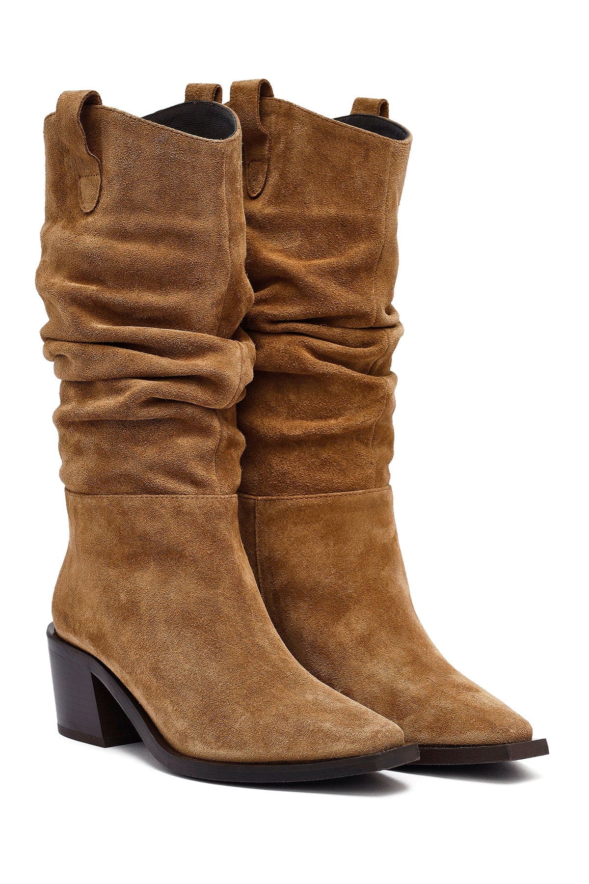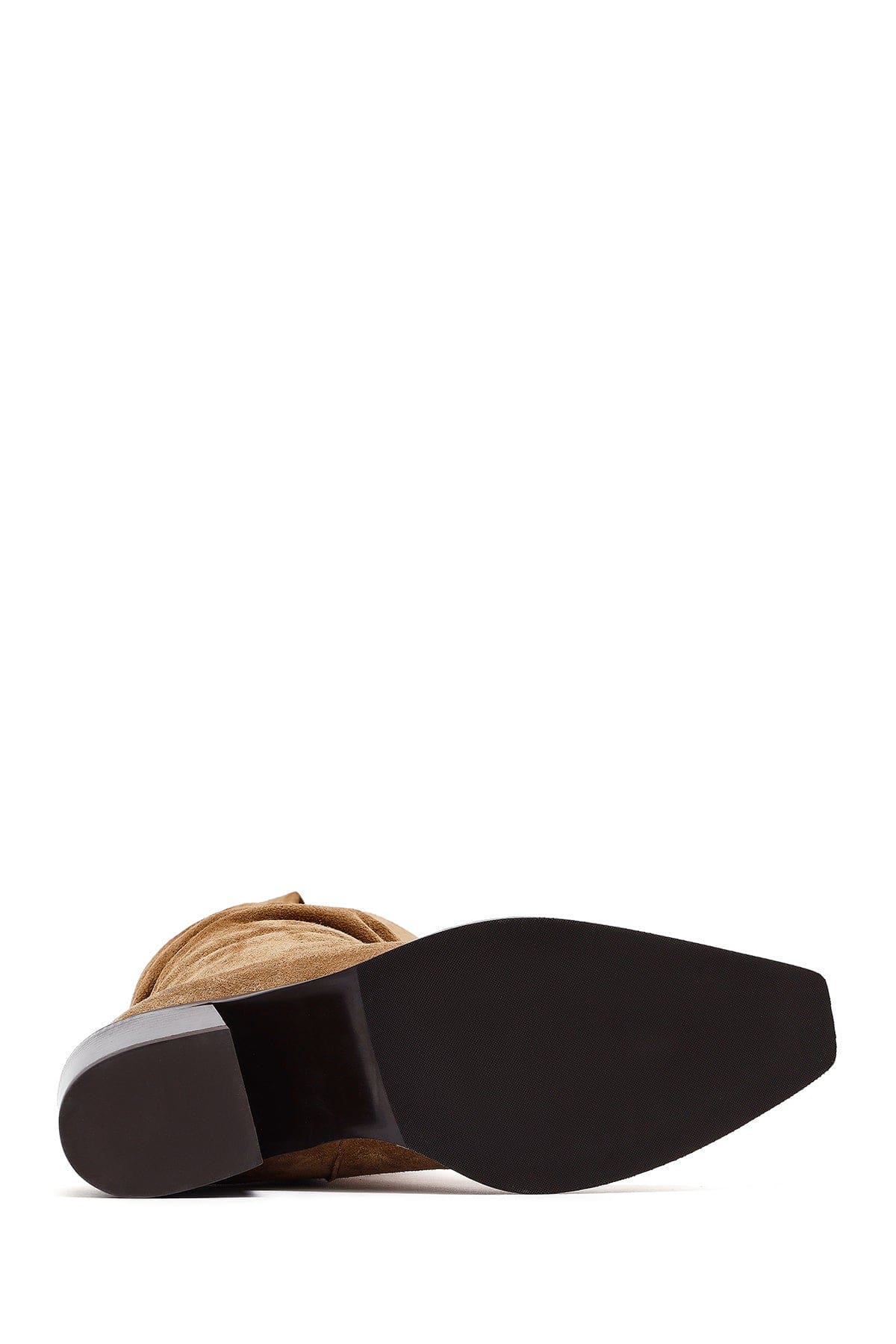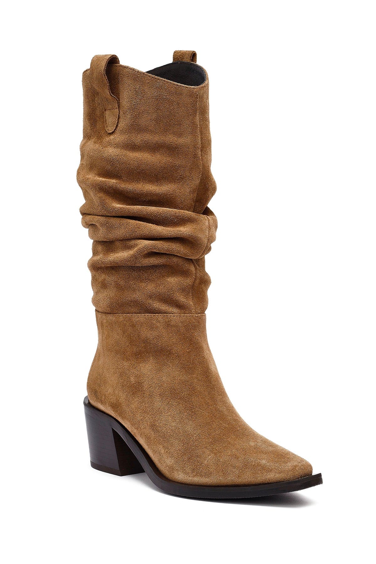 Kadın Vizon Kalın Topuklu Süet Deri Kovboy Çizme