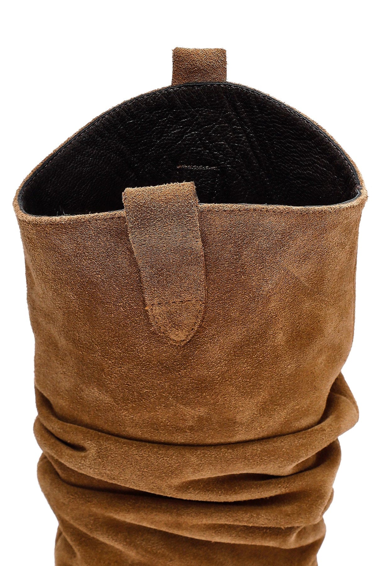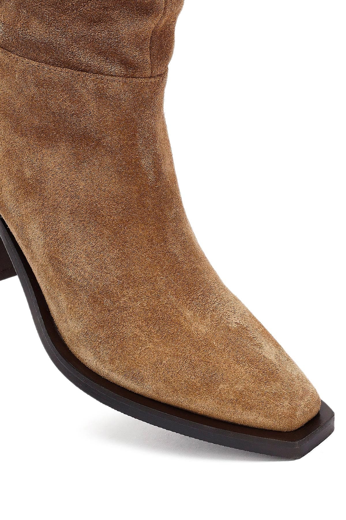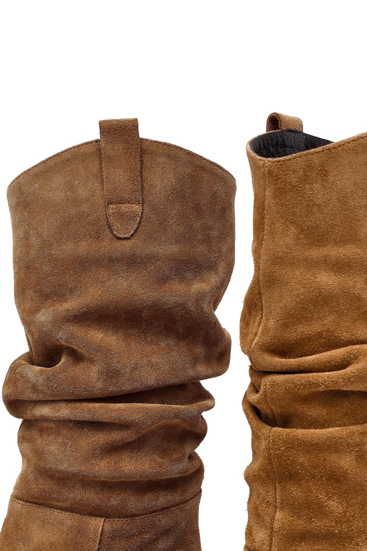 Kadın Vizon Kalın Topuklu Süet Deri Kovboy Çizme