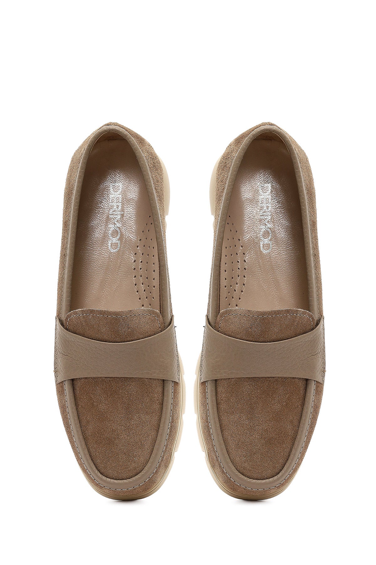 Kadın Vizon Kalın Tabanlı Süet Deri Comfort Loafer