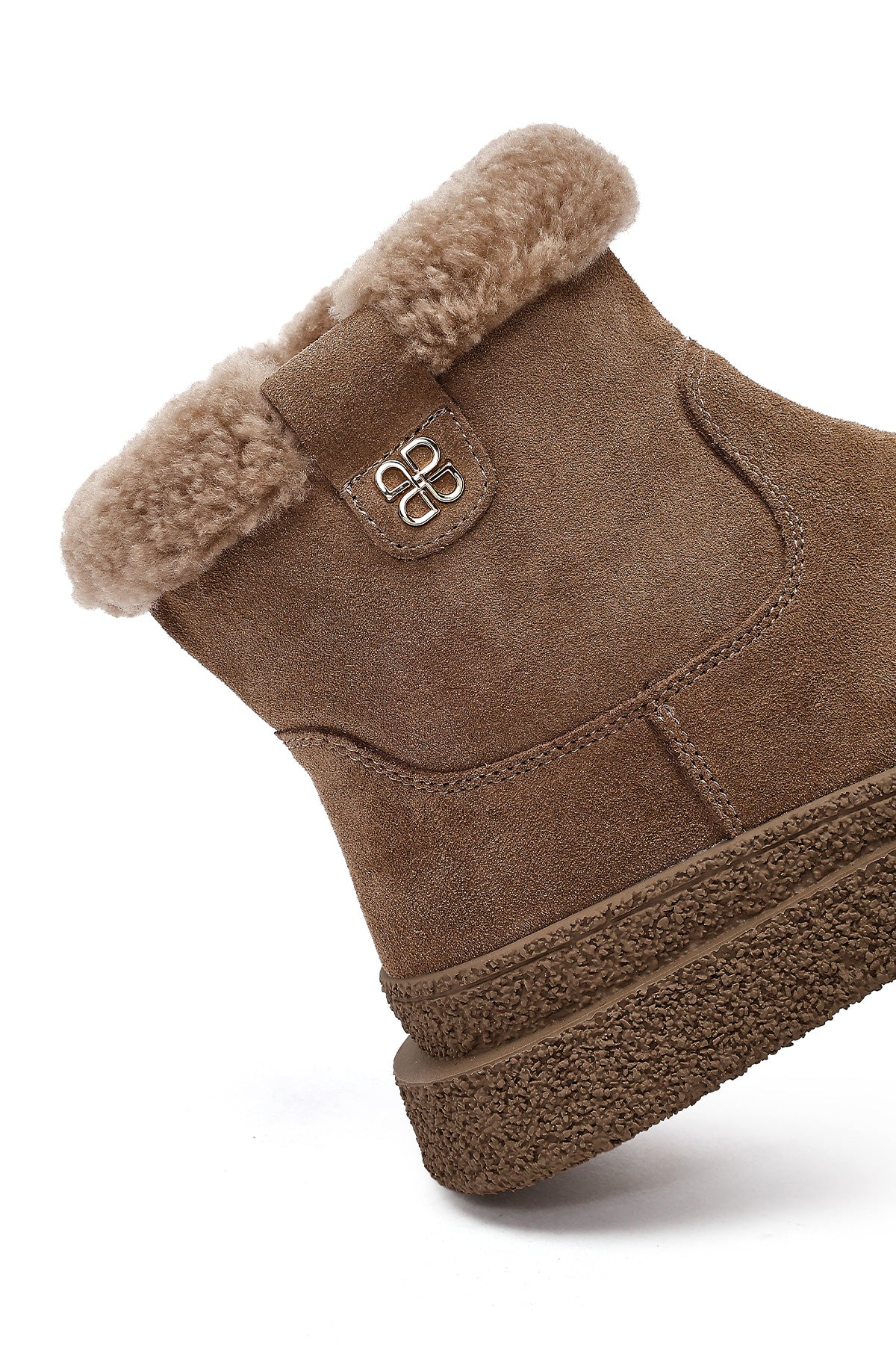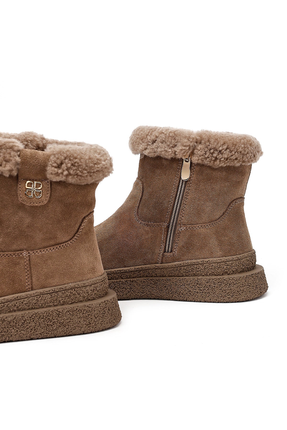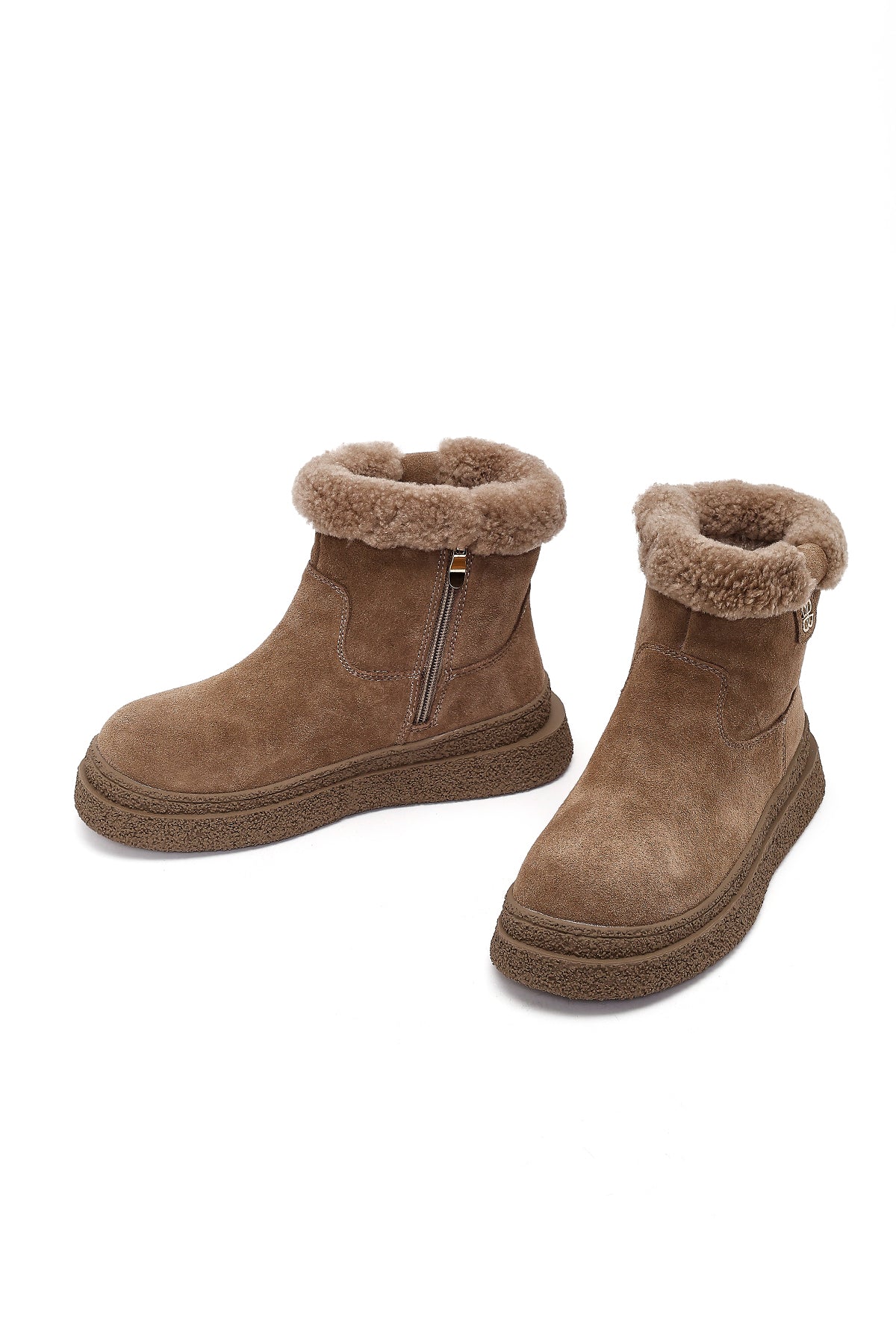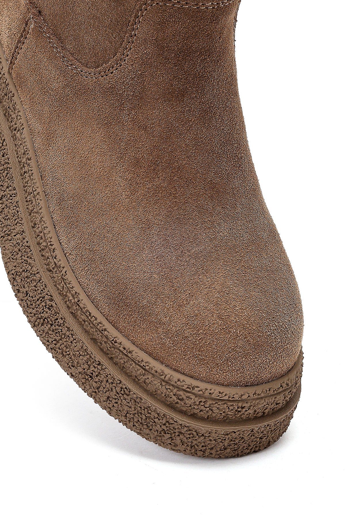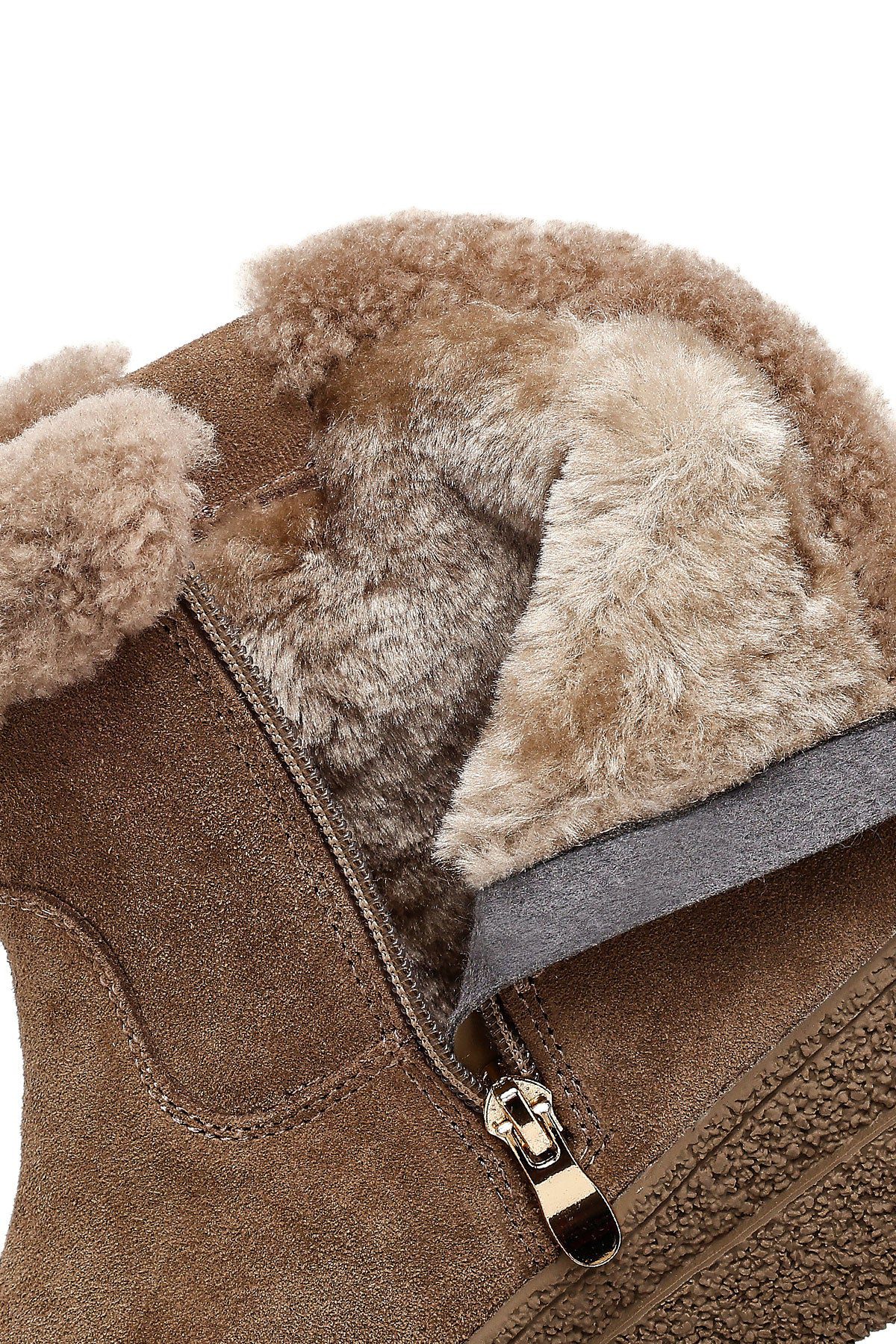 Kadın Vizon Fermuarlı Kalın Tabanlı Süet Deri Teddy Bot