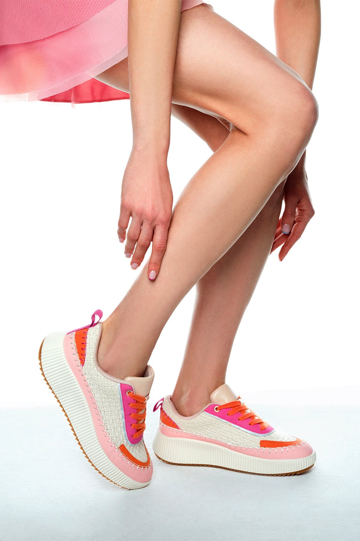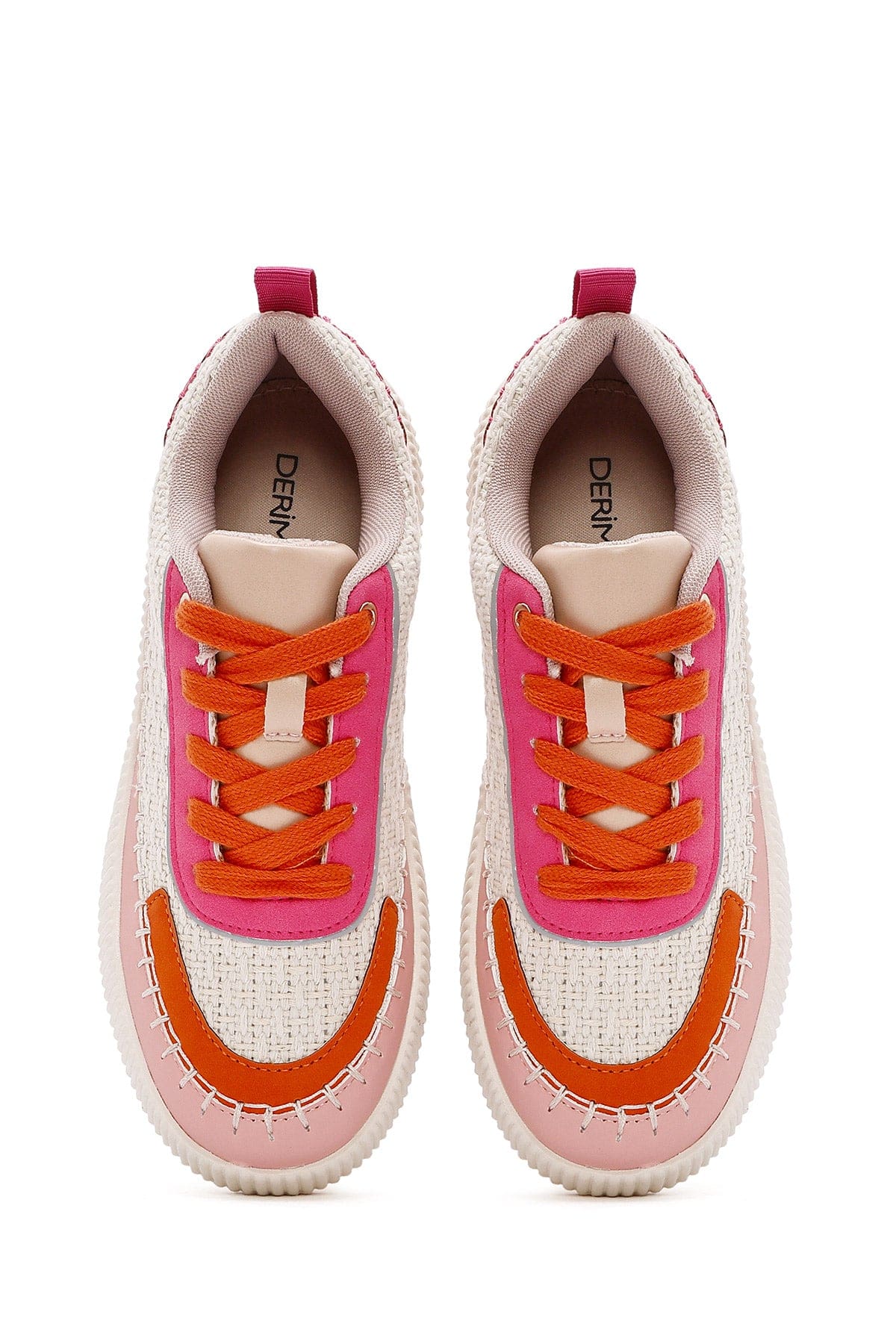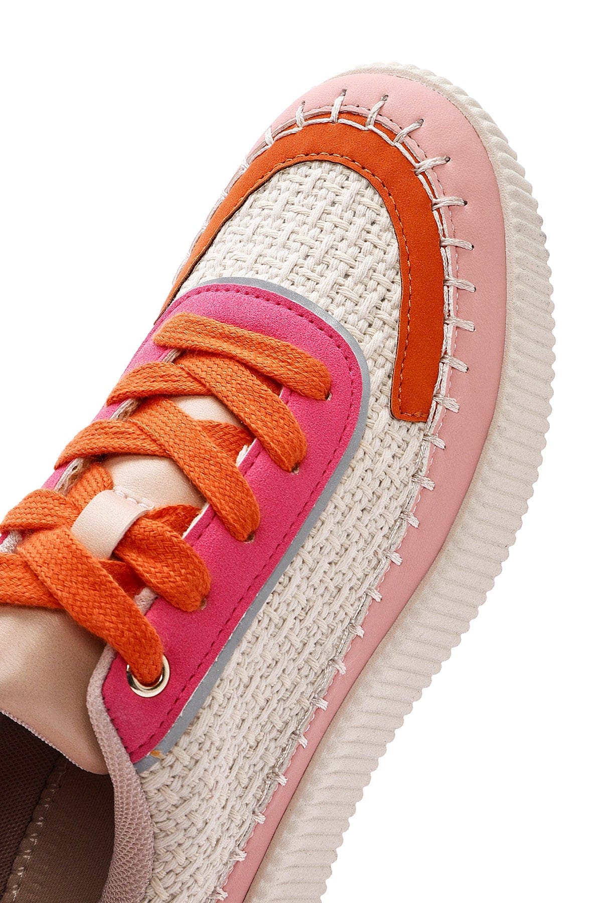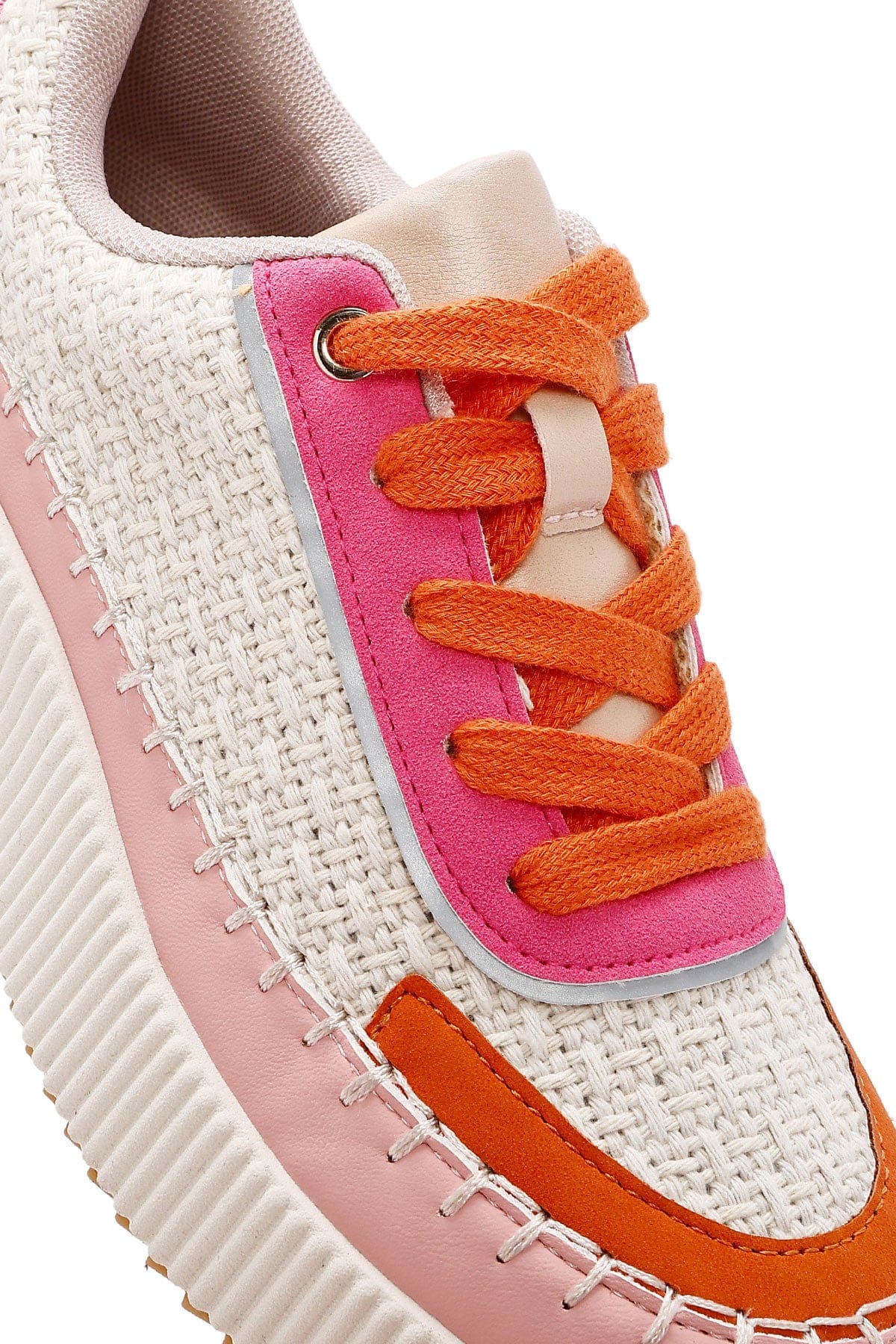 Kadın Çok Renkli Bağcıklı Kalın Tabanlı Örgülü Sneaker