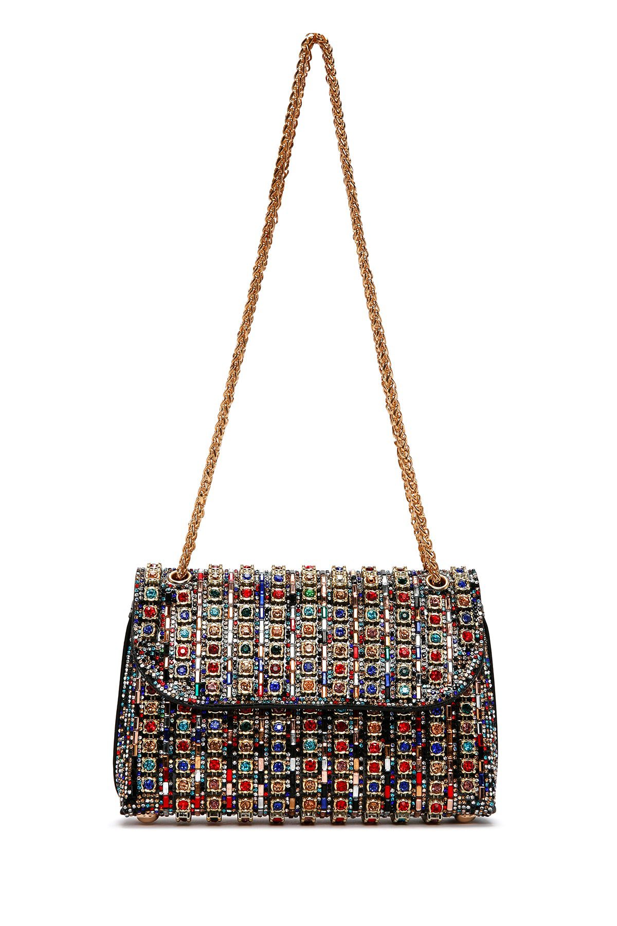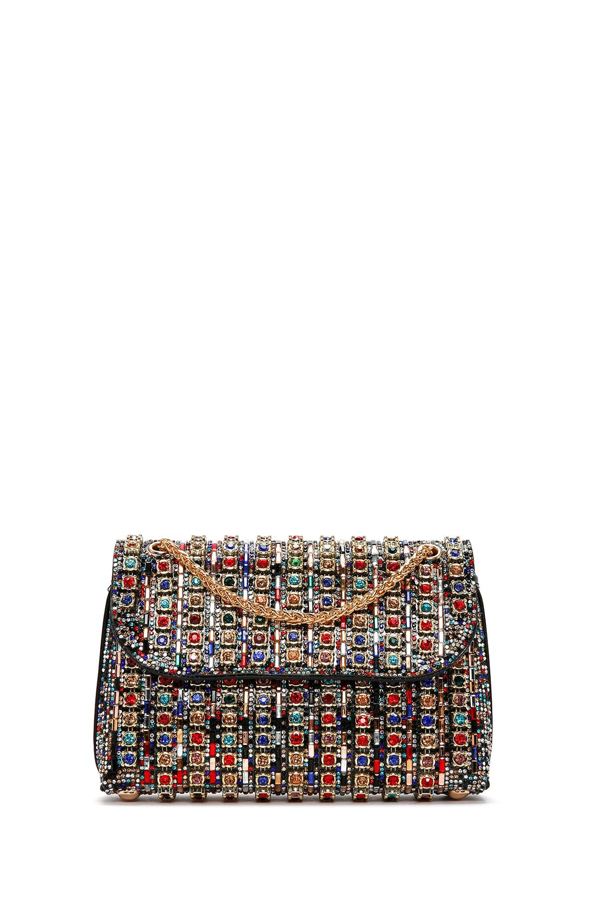 Kadın Çok Renkli Uzun Zincir Askılı Taşlı Abiye Omuz Çantası
