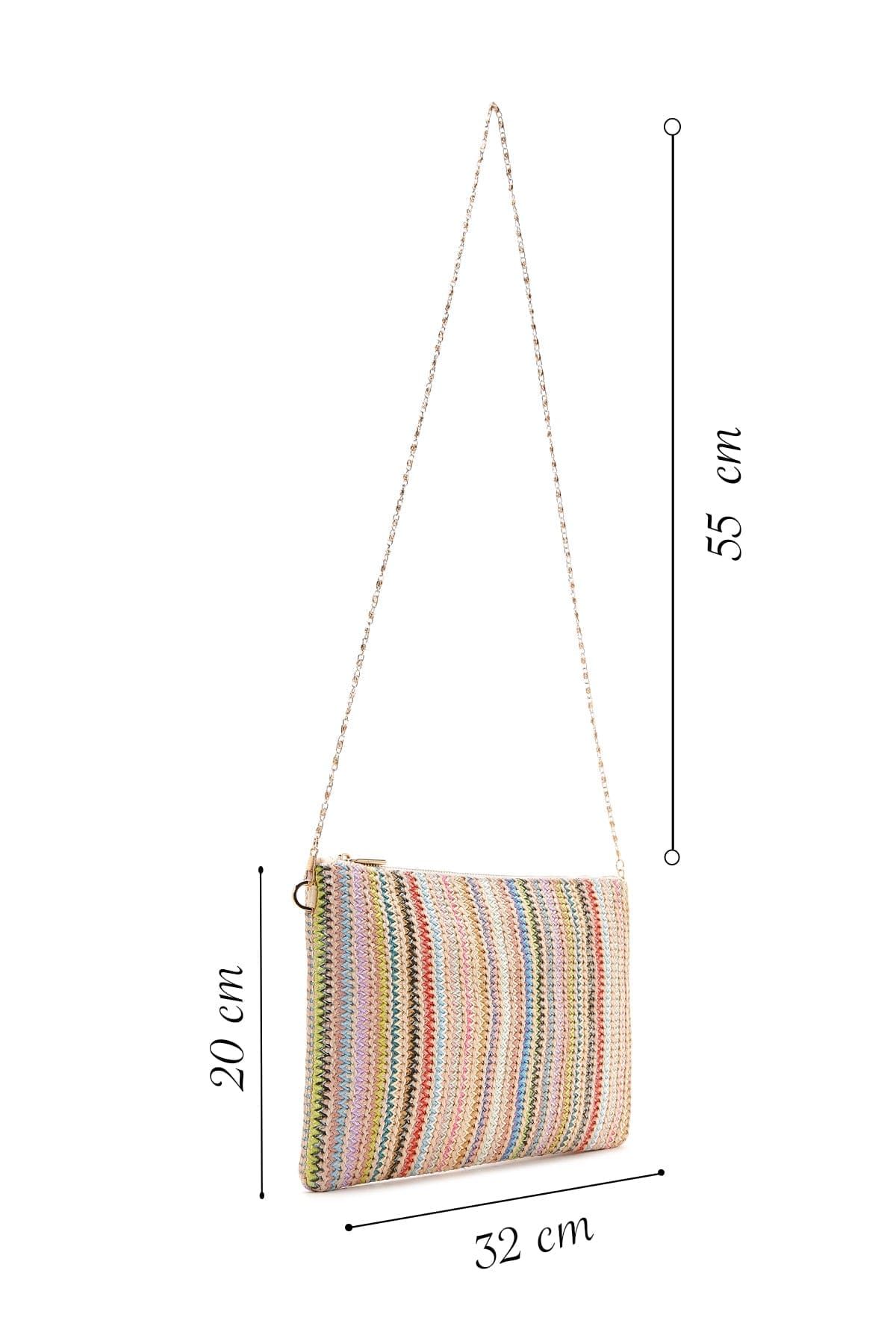 Kadın Çok Renkli Uzun Zincir Askılı Hasır Portföy Çanta