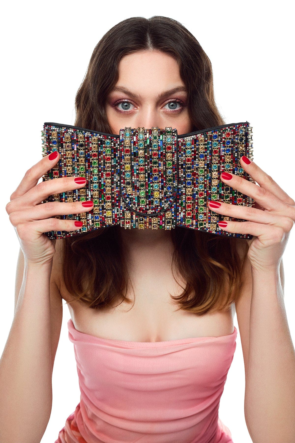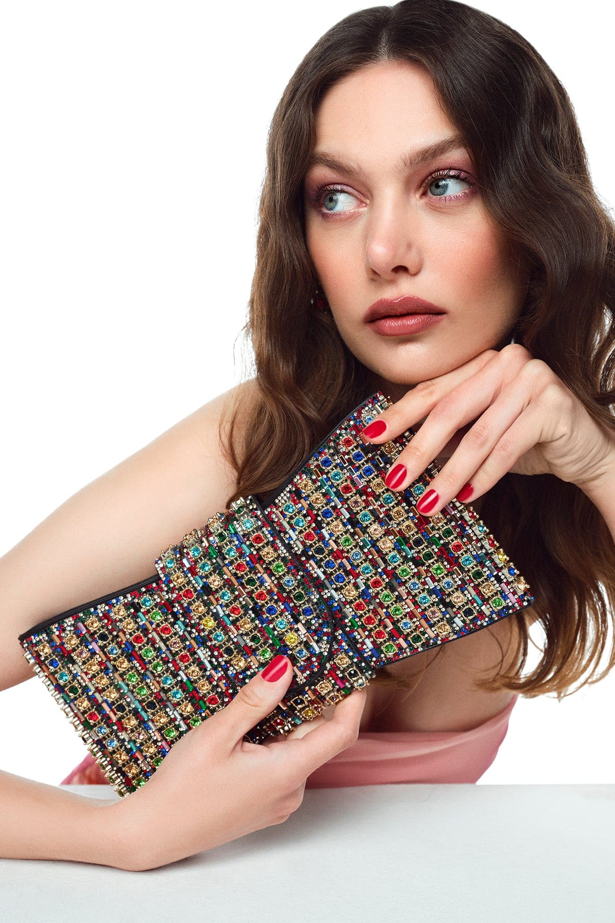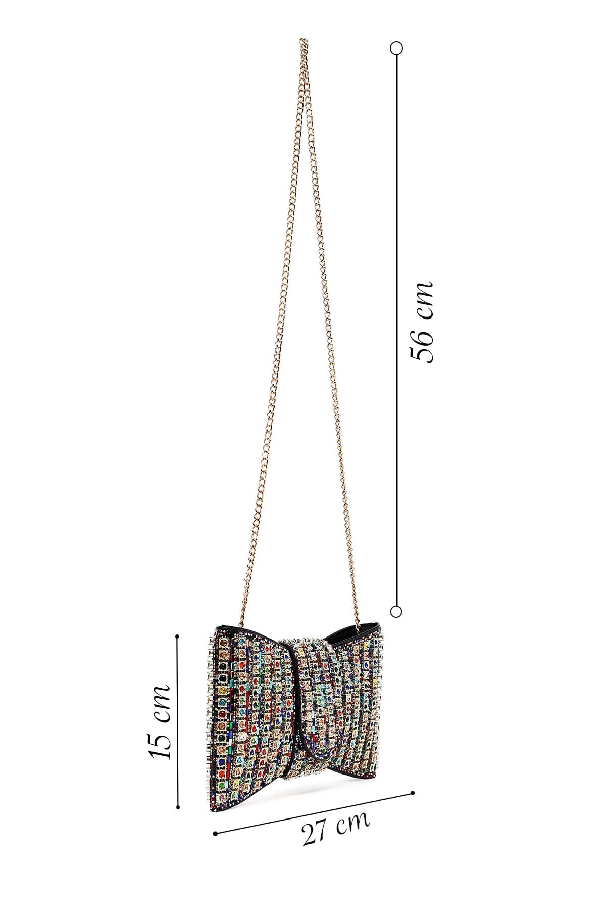 Kadın Çok Renkli Uzun Askılı Taşlı Mini Abiye Kutu Portföy Çanta