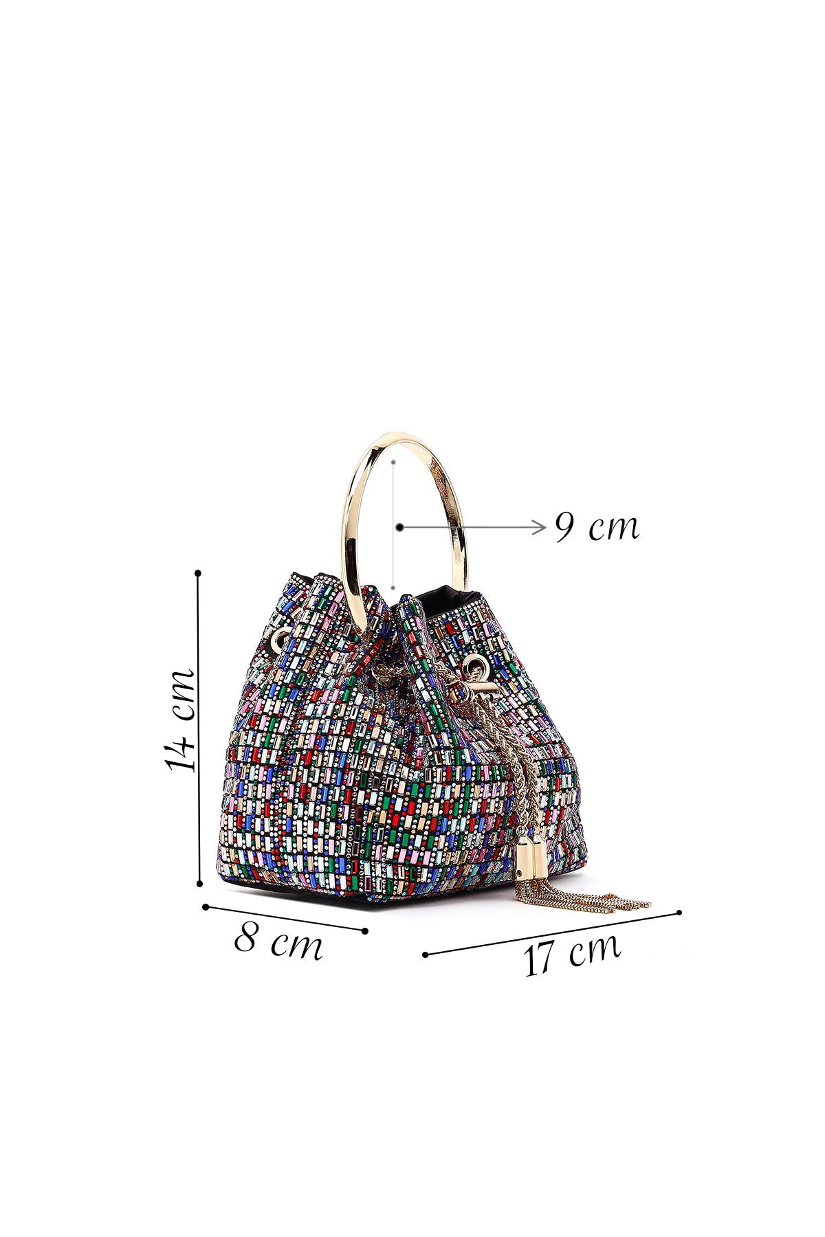 Kadın Çok Renkli Taşlı Mini Abiye Kol Çantası