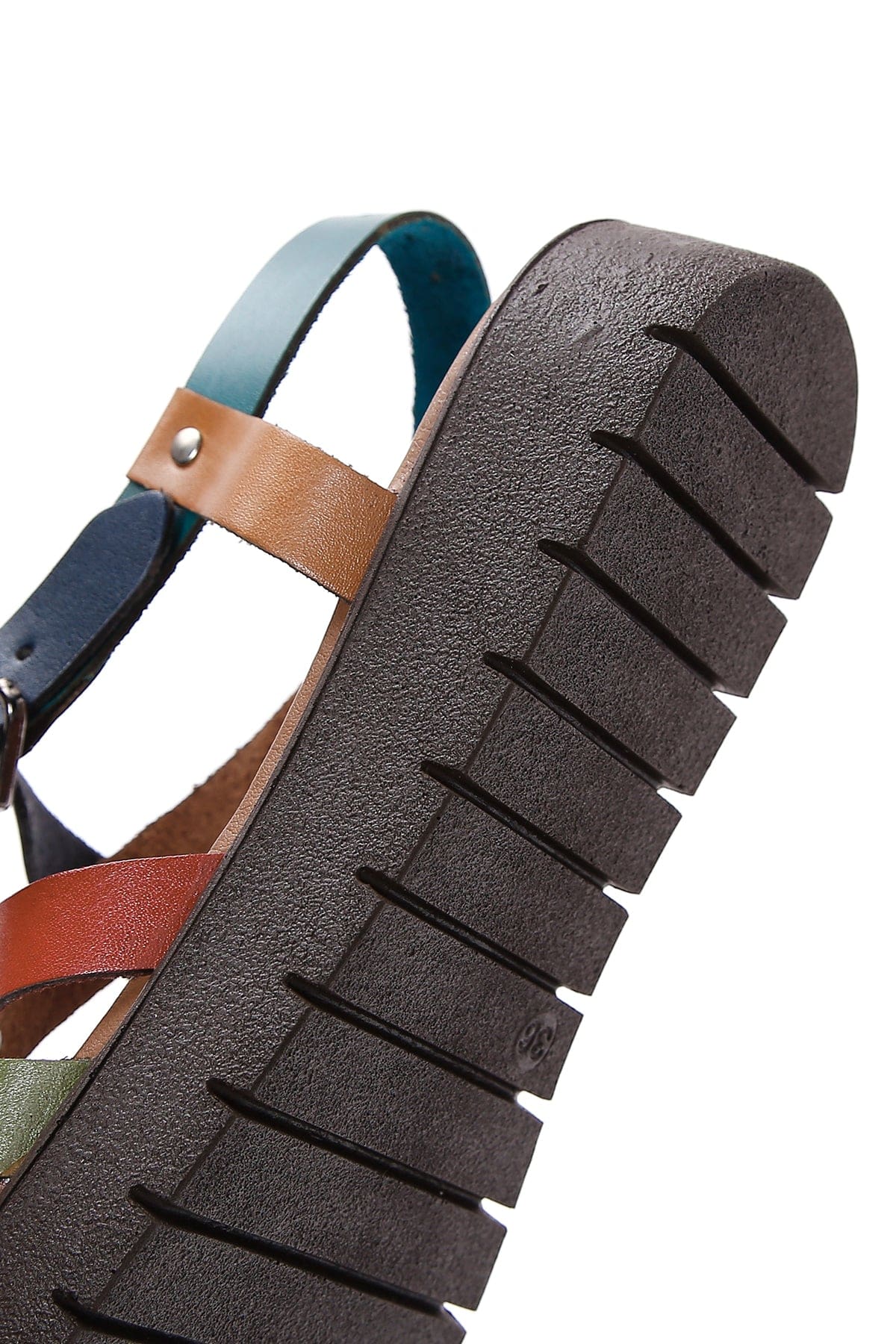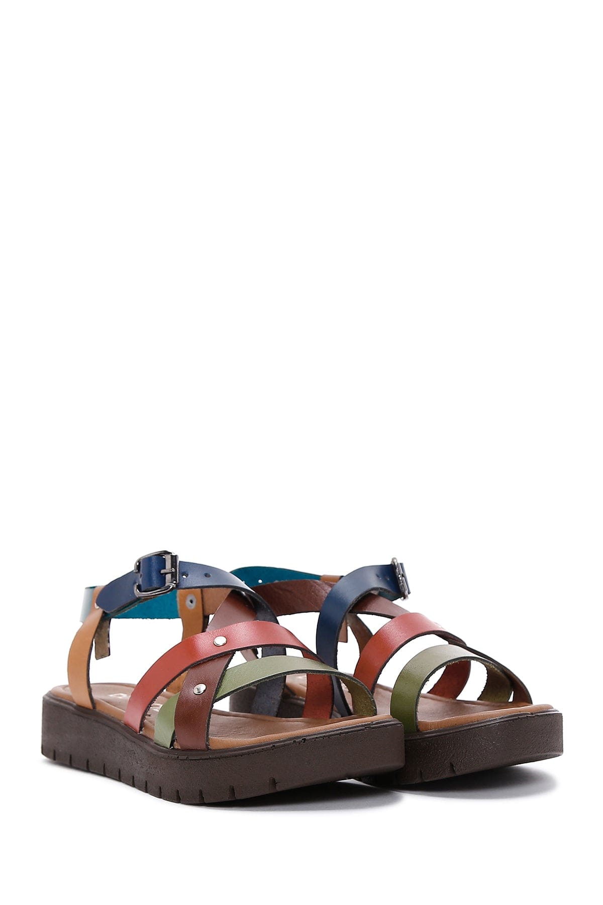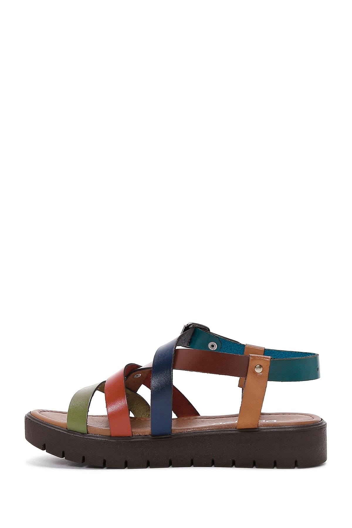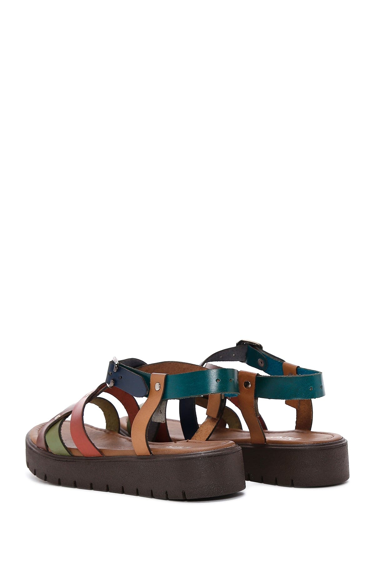 Kadın Çok Renkli Kalın Tabanlı Deri Bodrum Sandalet