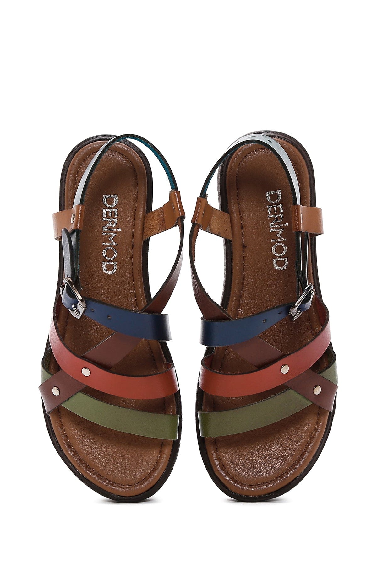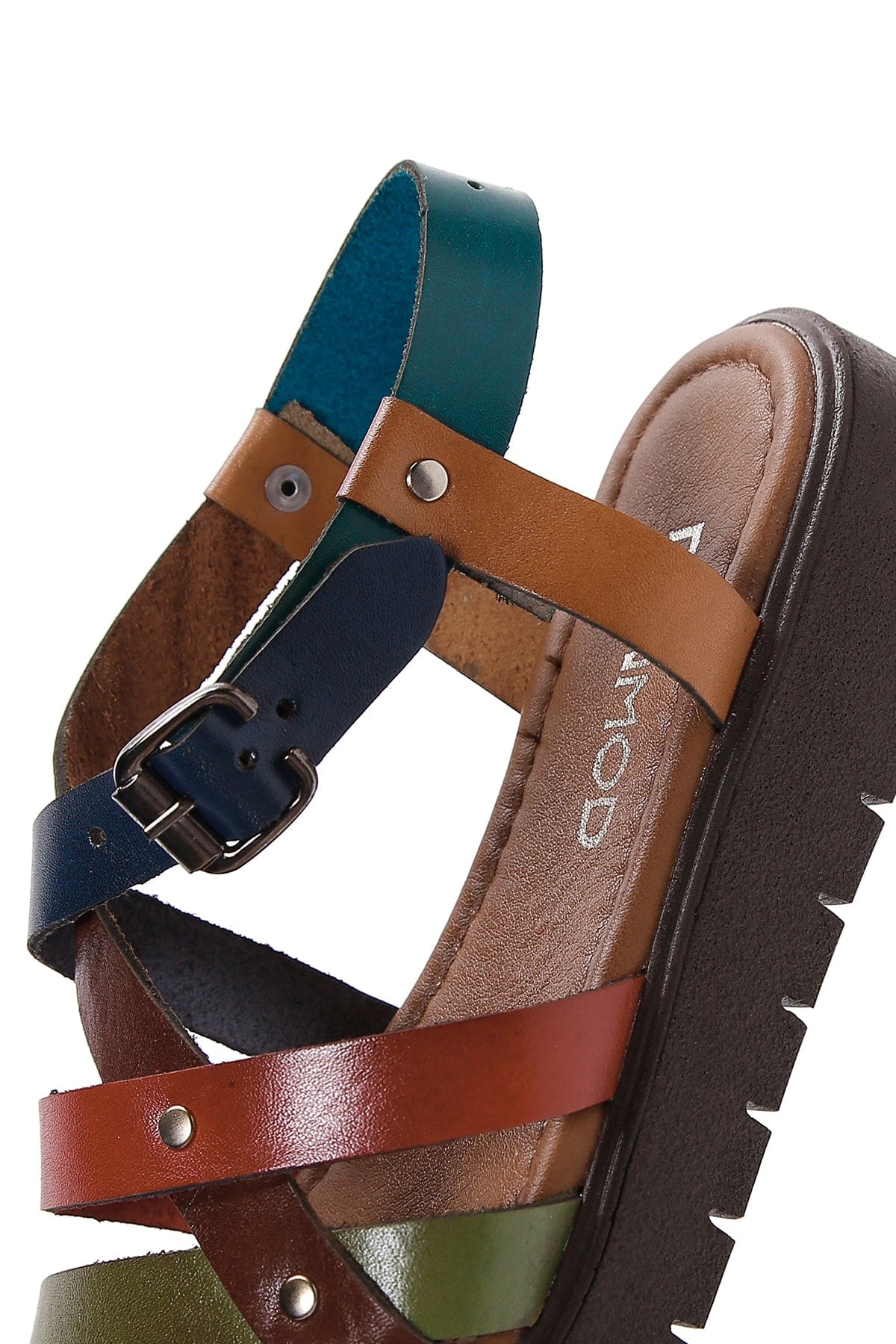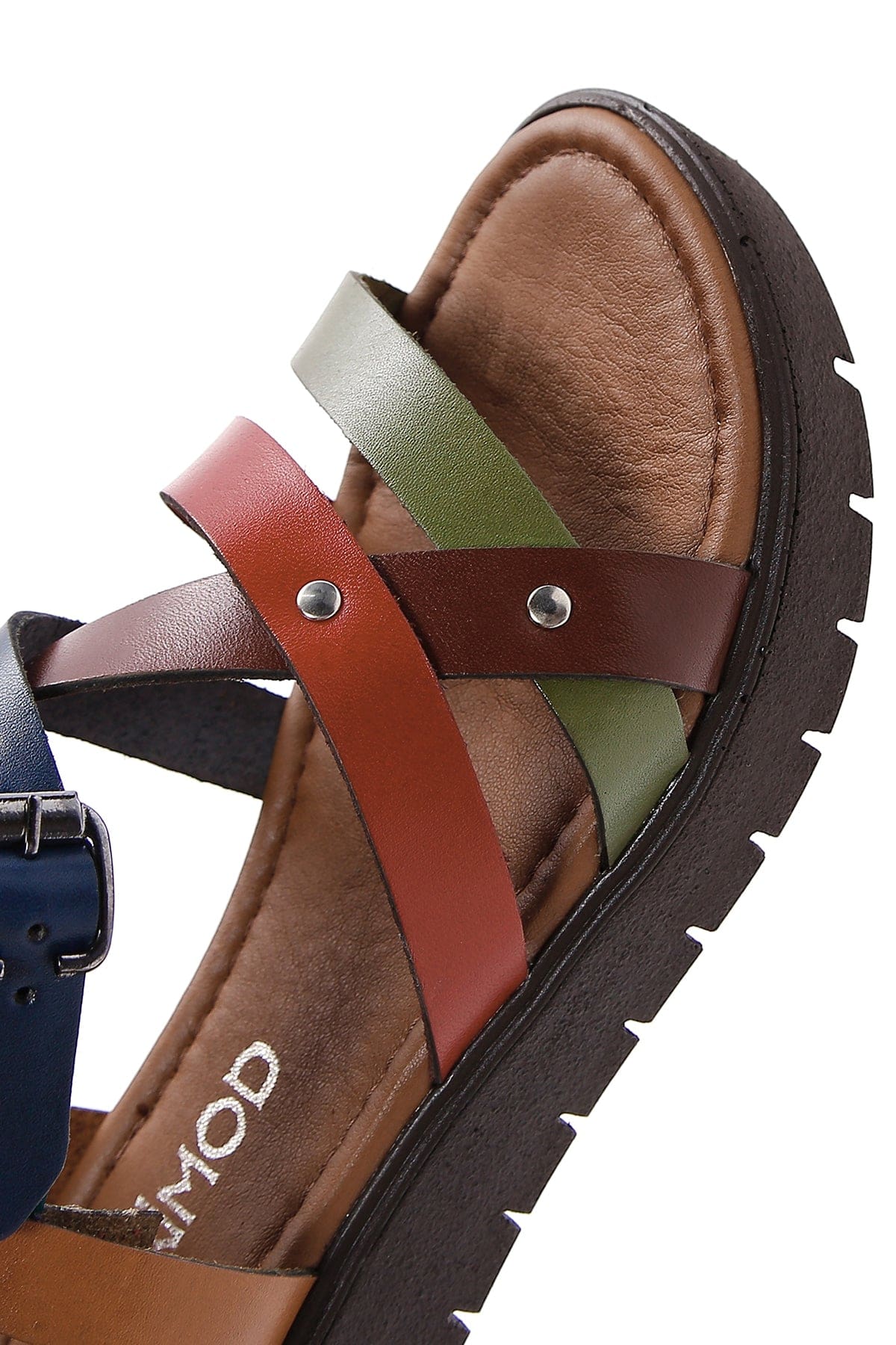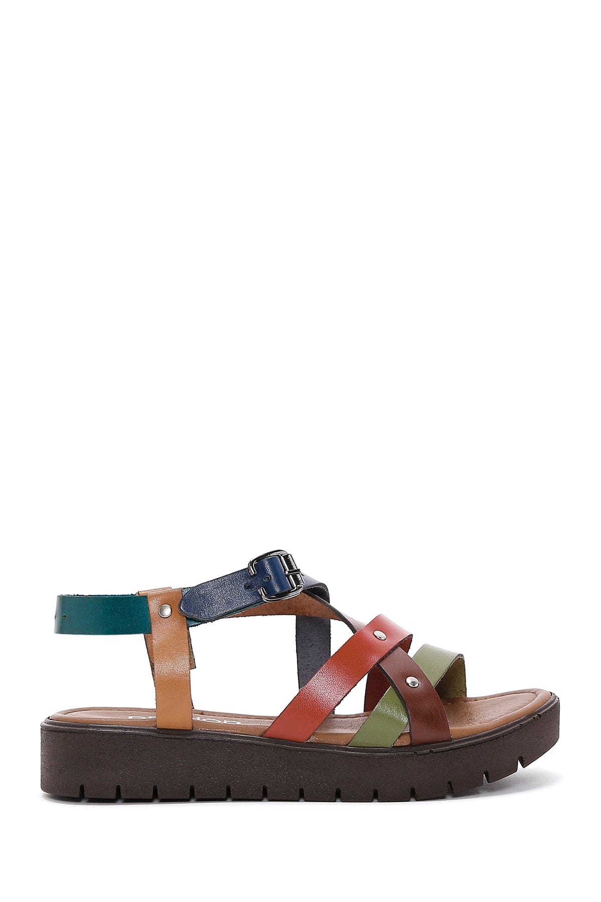 Kadın Çok Renkli Kalın Tabanlı Deri Bodrum Sandalet