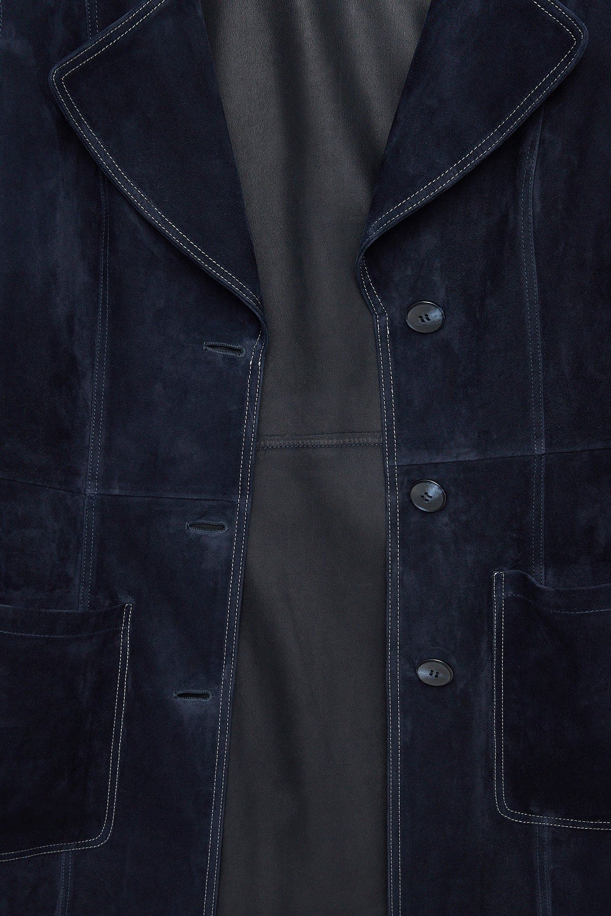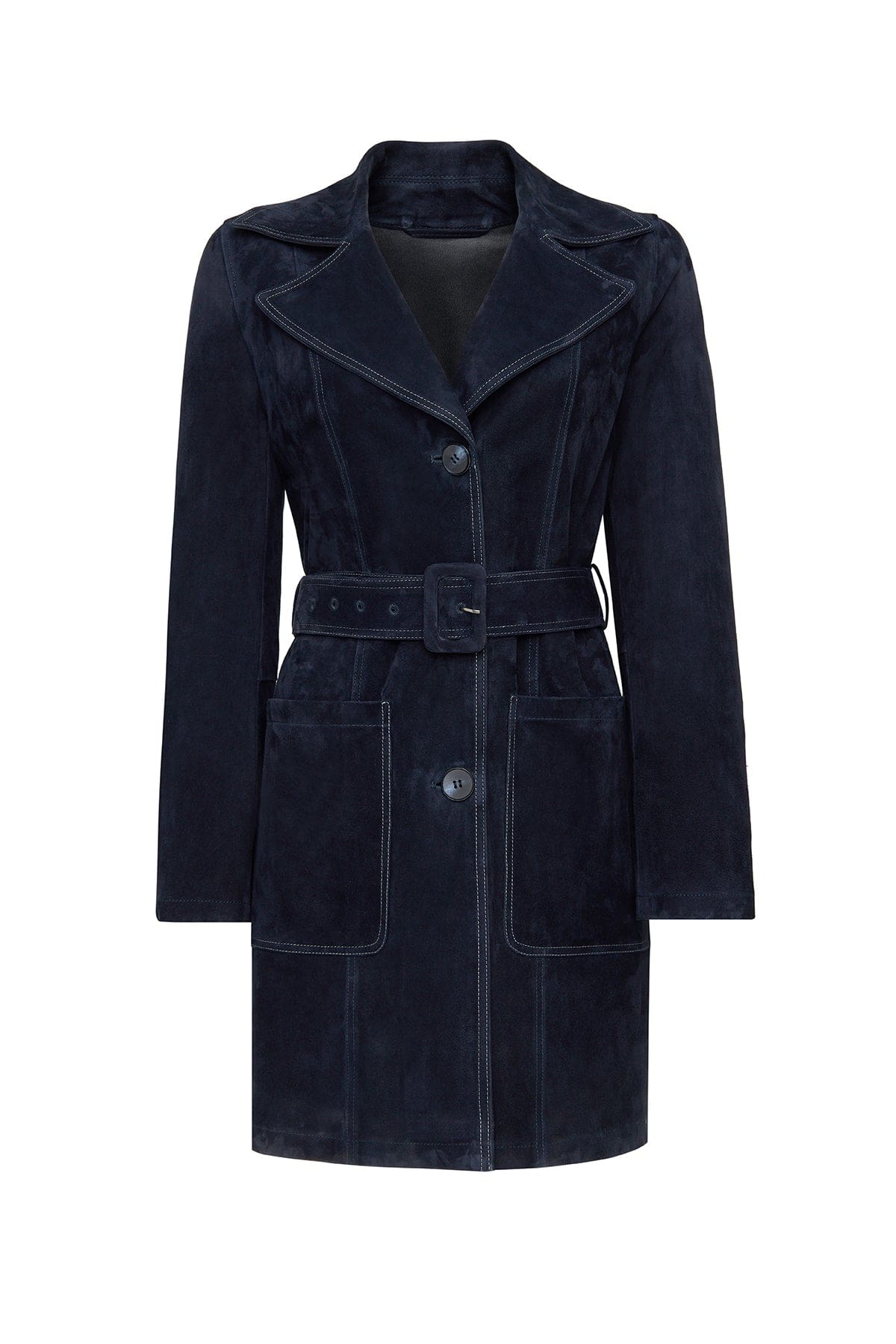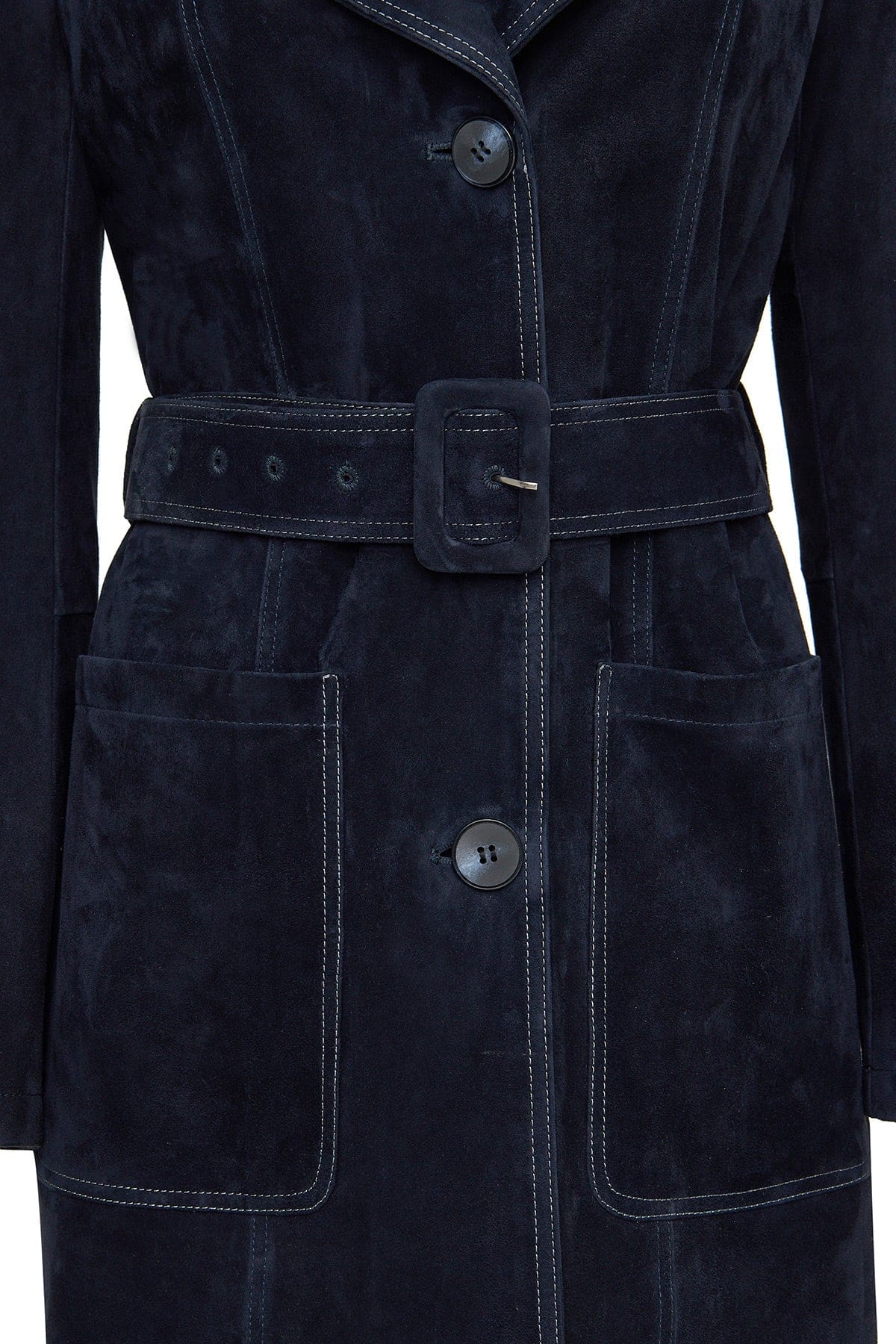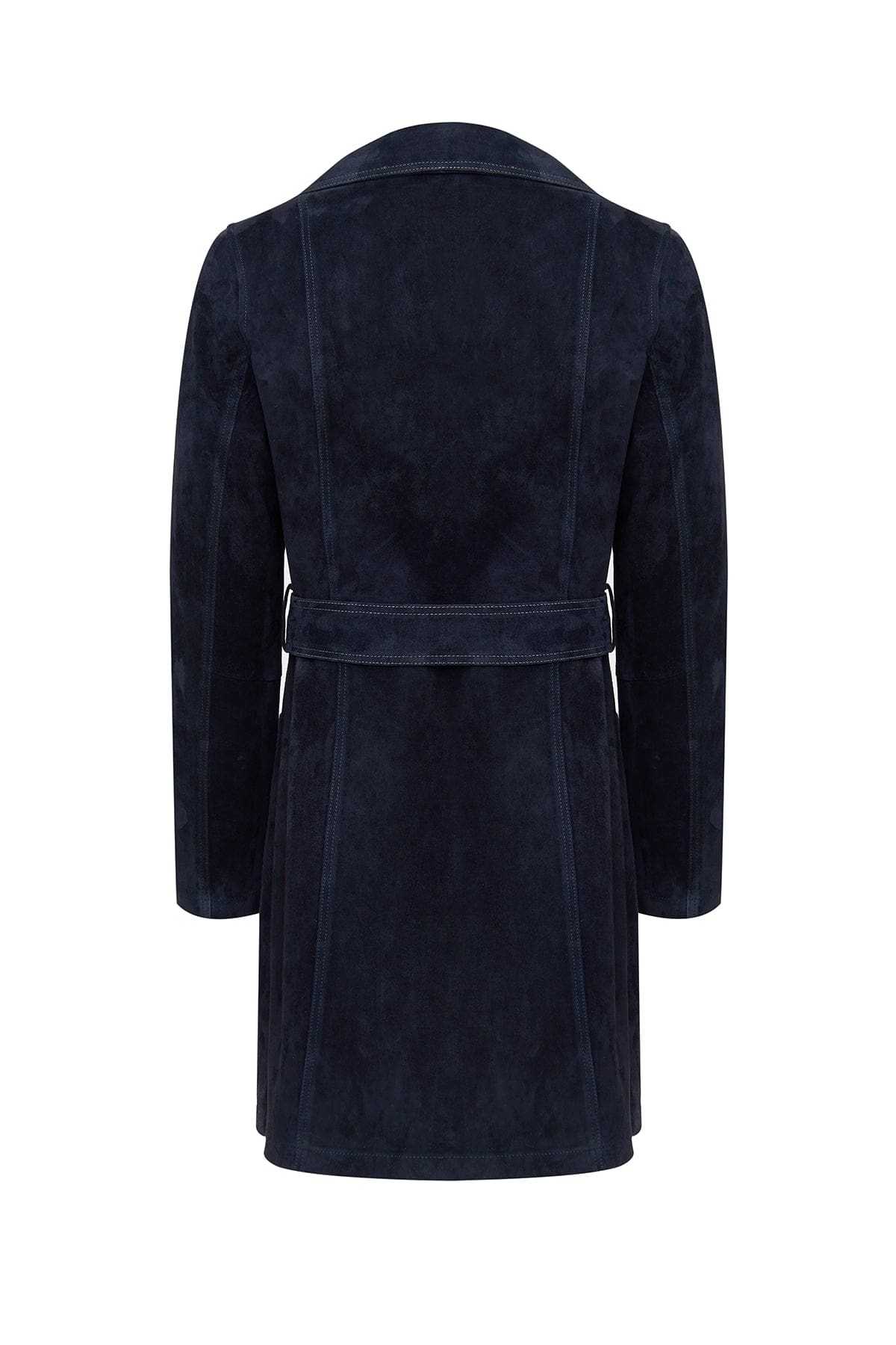 Argentina Kadın Lacivert Süet Deri Trençkot
