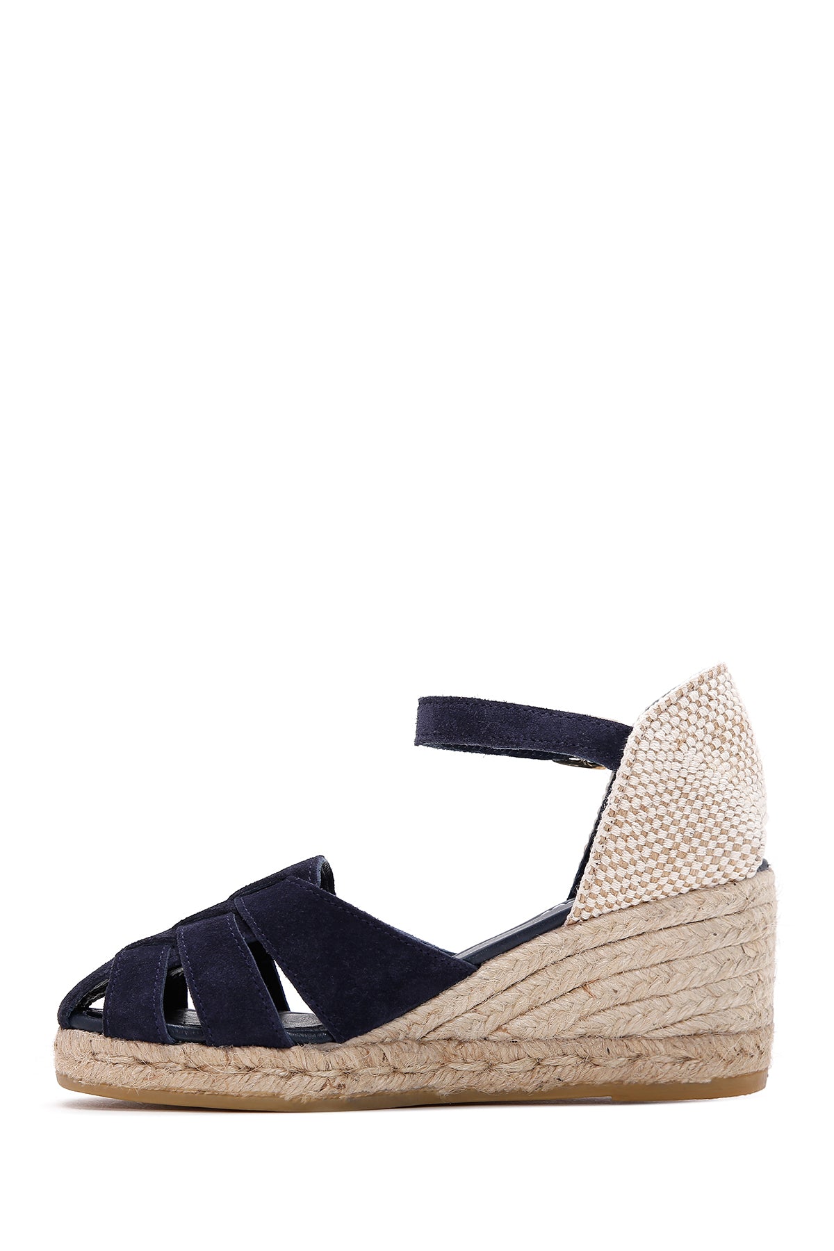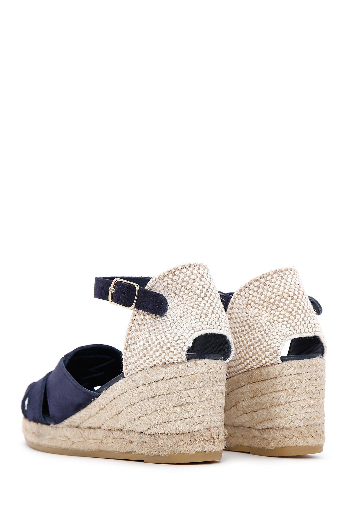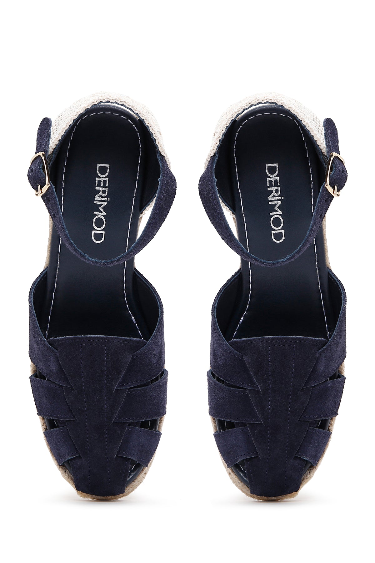 Kadın Lacivert Bilekten Bantlı Dolgu Topuklu Süet Deri Espadril Sandalet