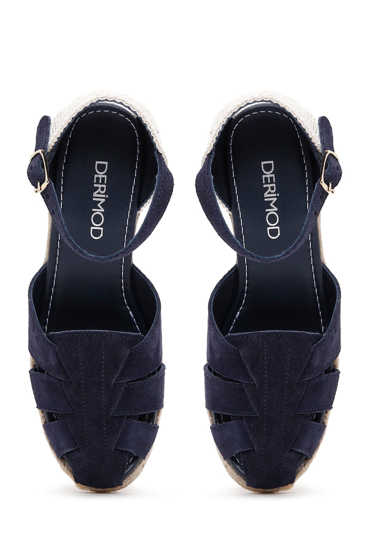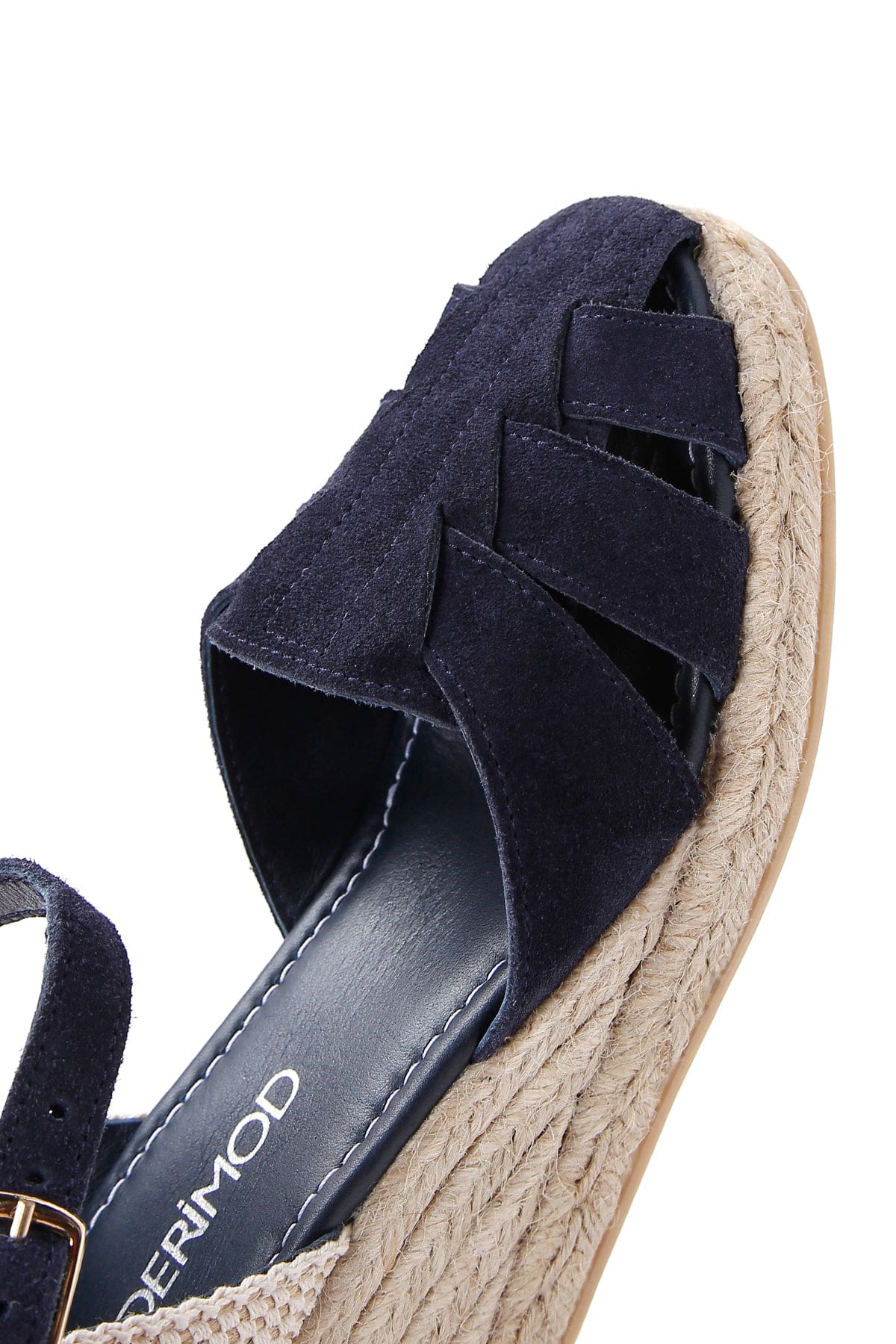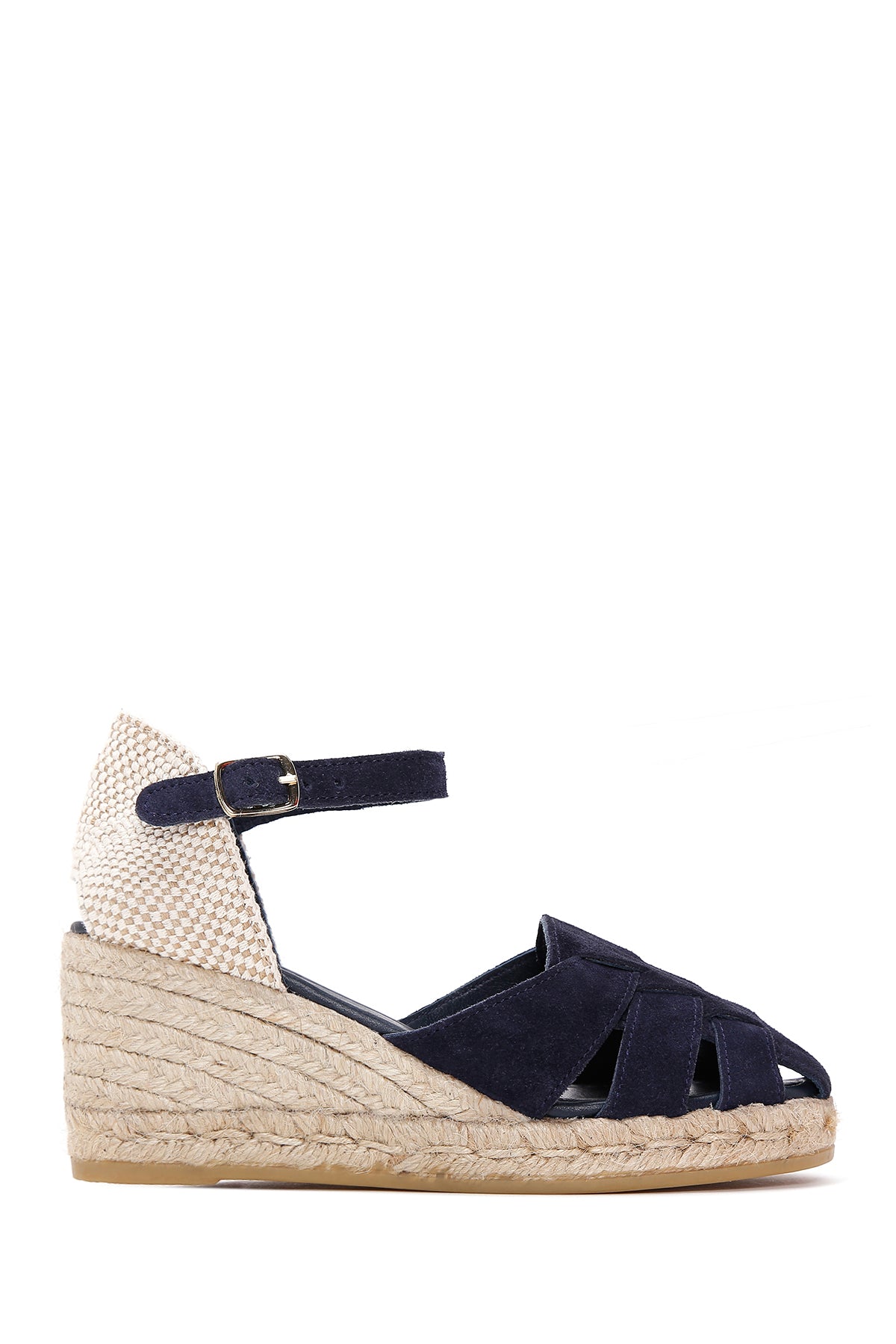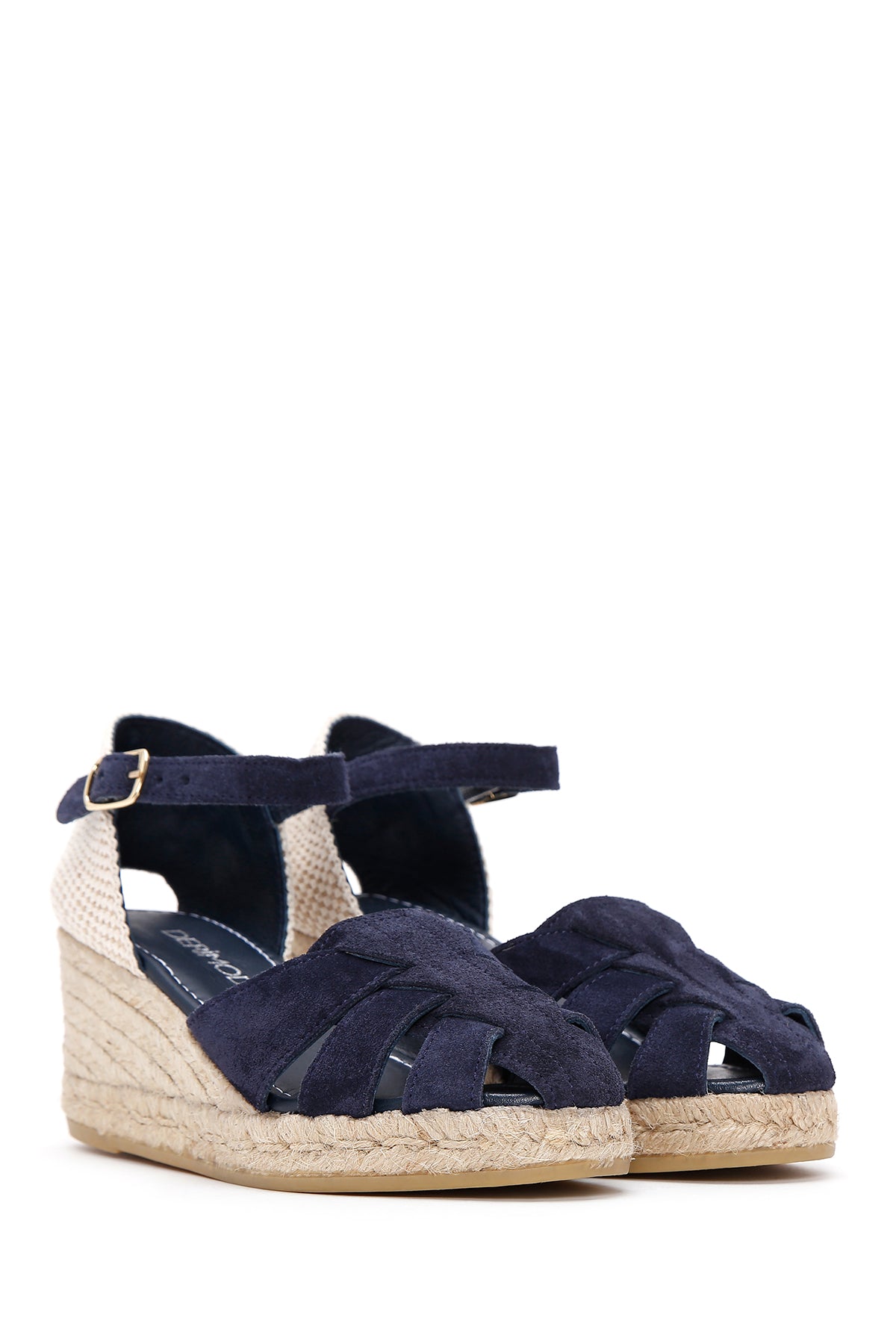 Kadın Lacivert Bilekten Bantlı Dolgu Topuklu Süet Deri Espadril Sandalet