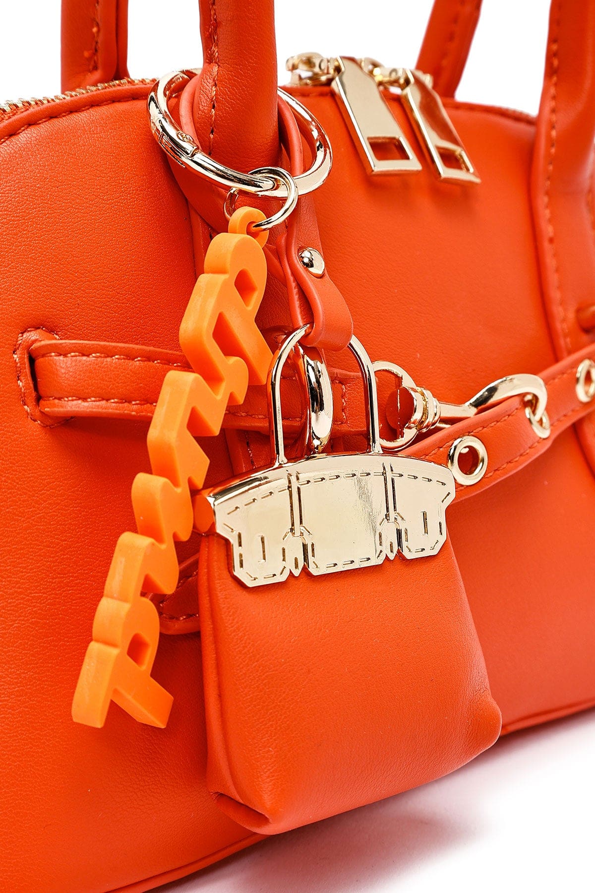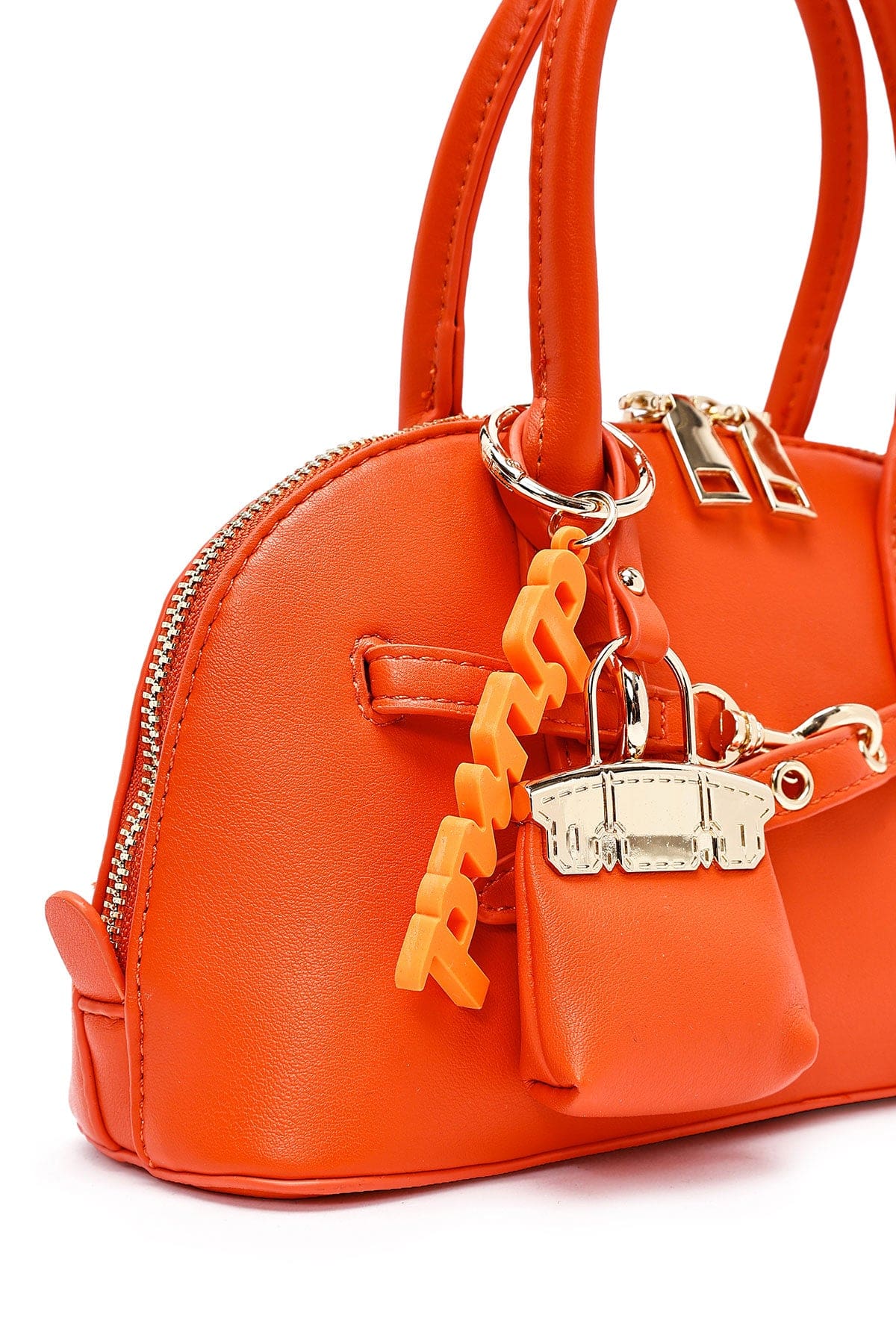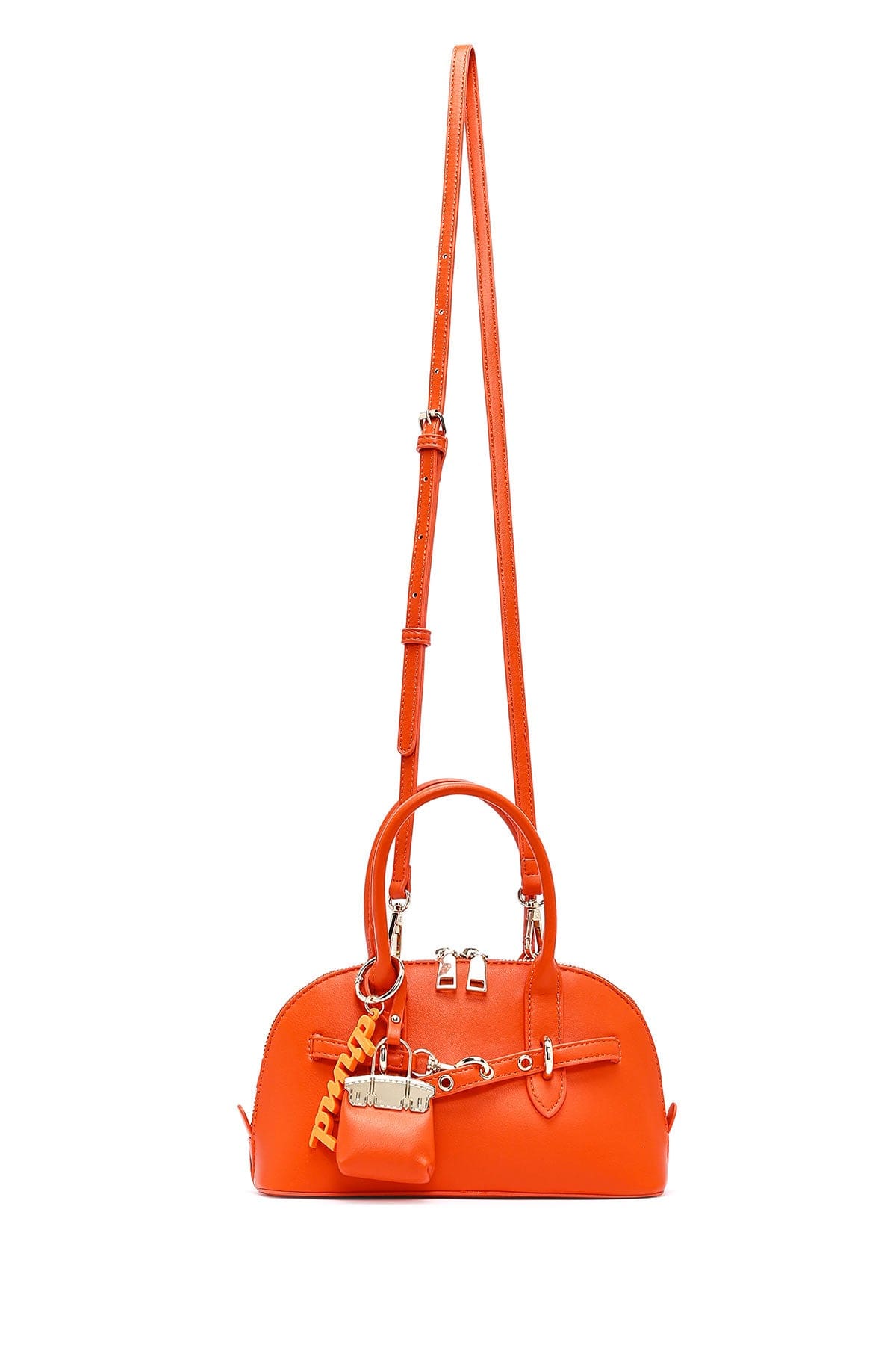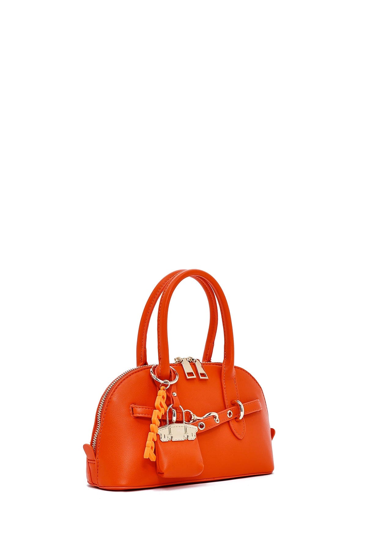کیف زنانه مینی دستی نارنجی بند بلند با اکسسوری دری مد