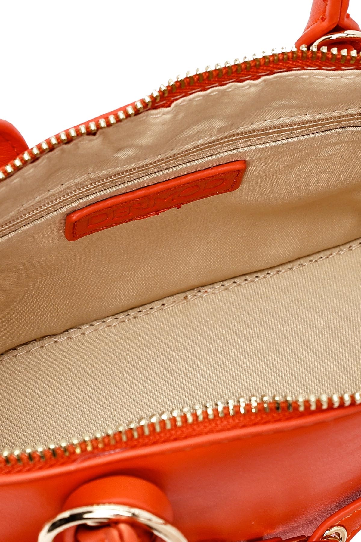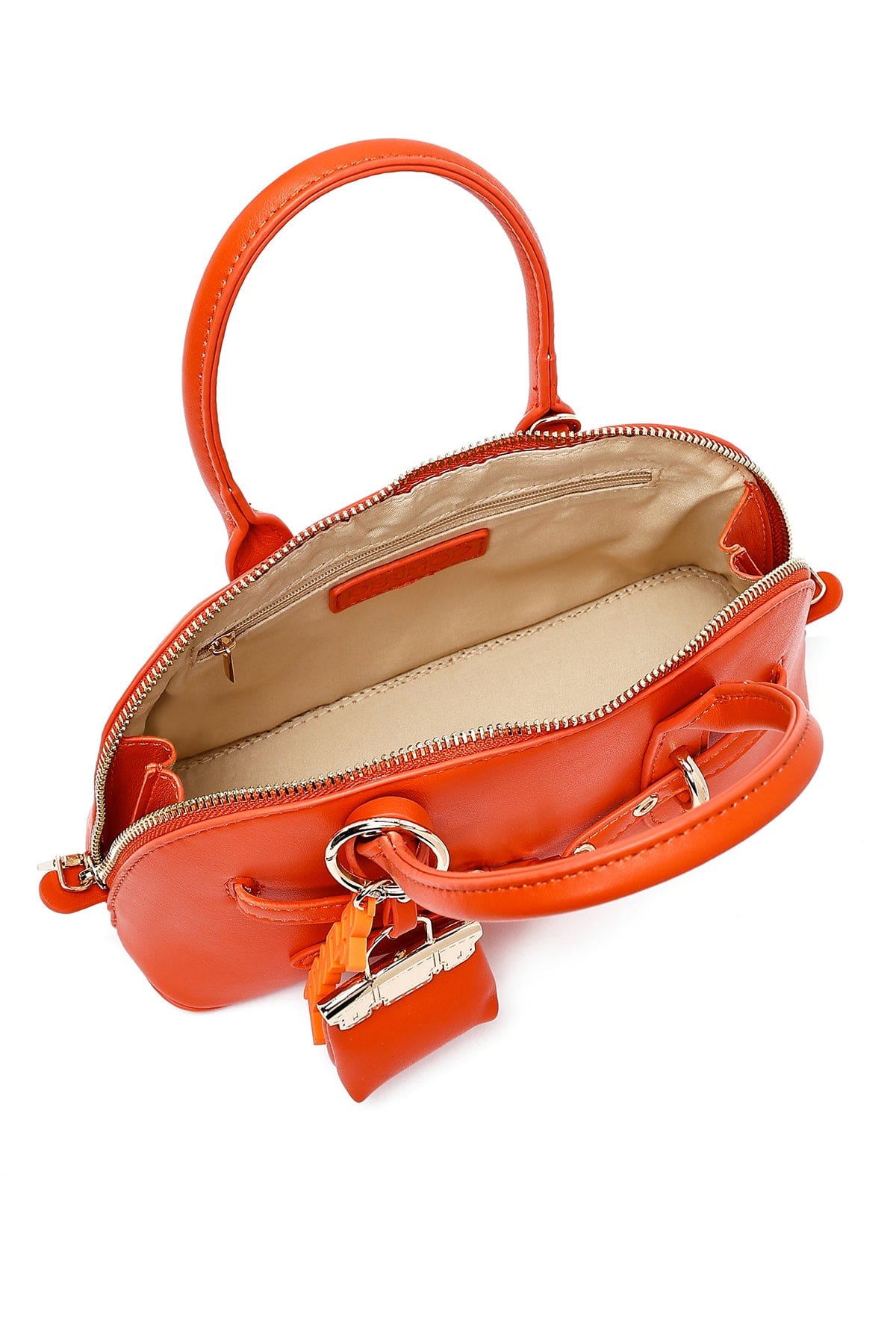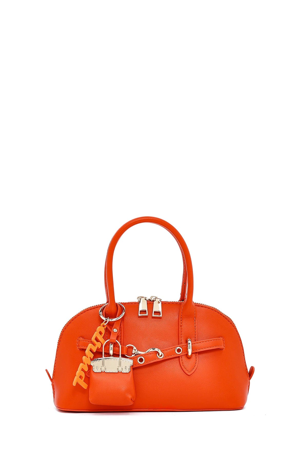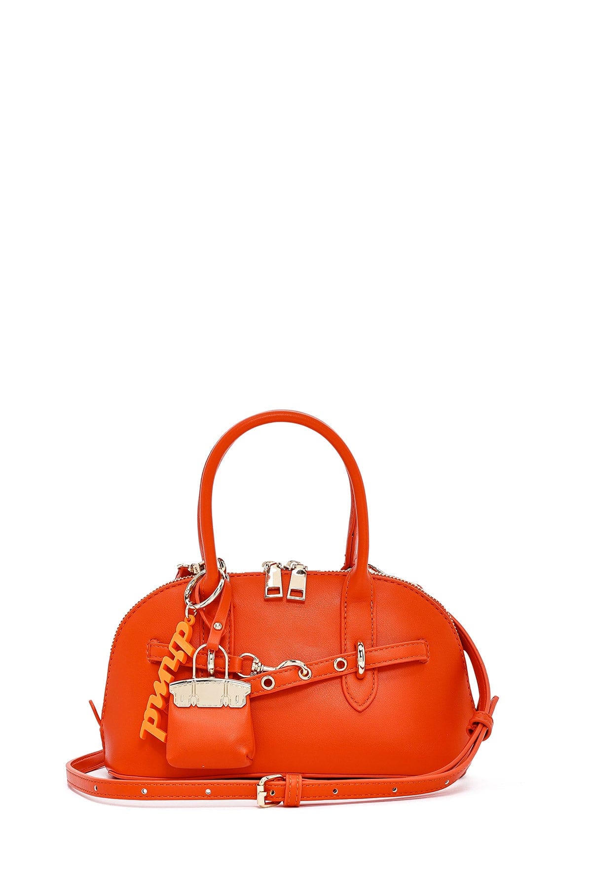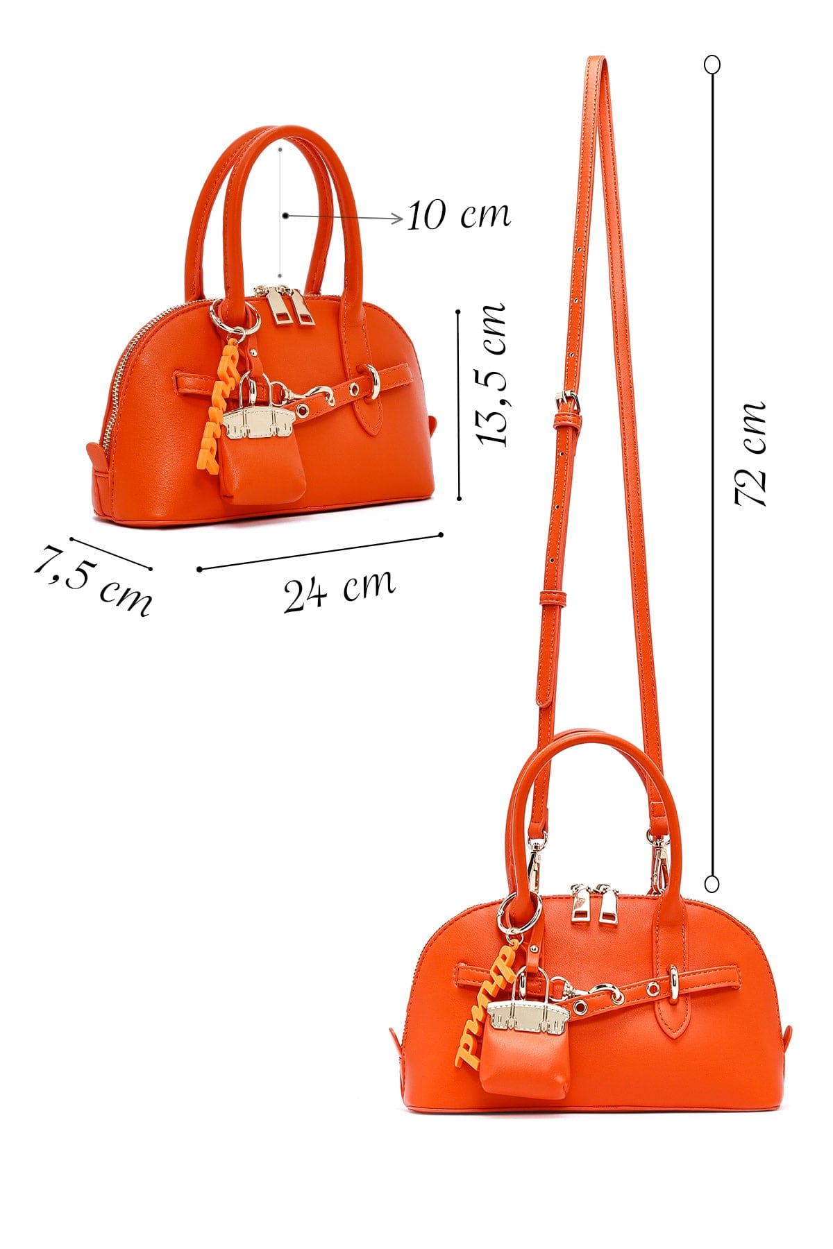 کیف زنانه مینی دستی نارنجی بند بلند با اکسسوری دری مد