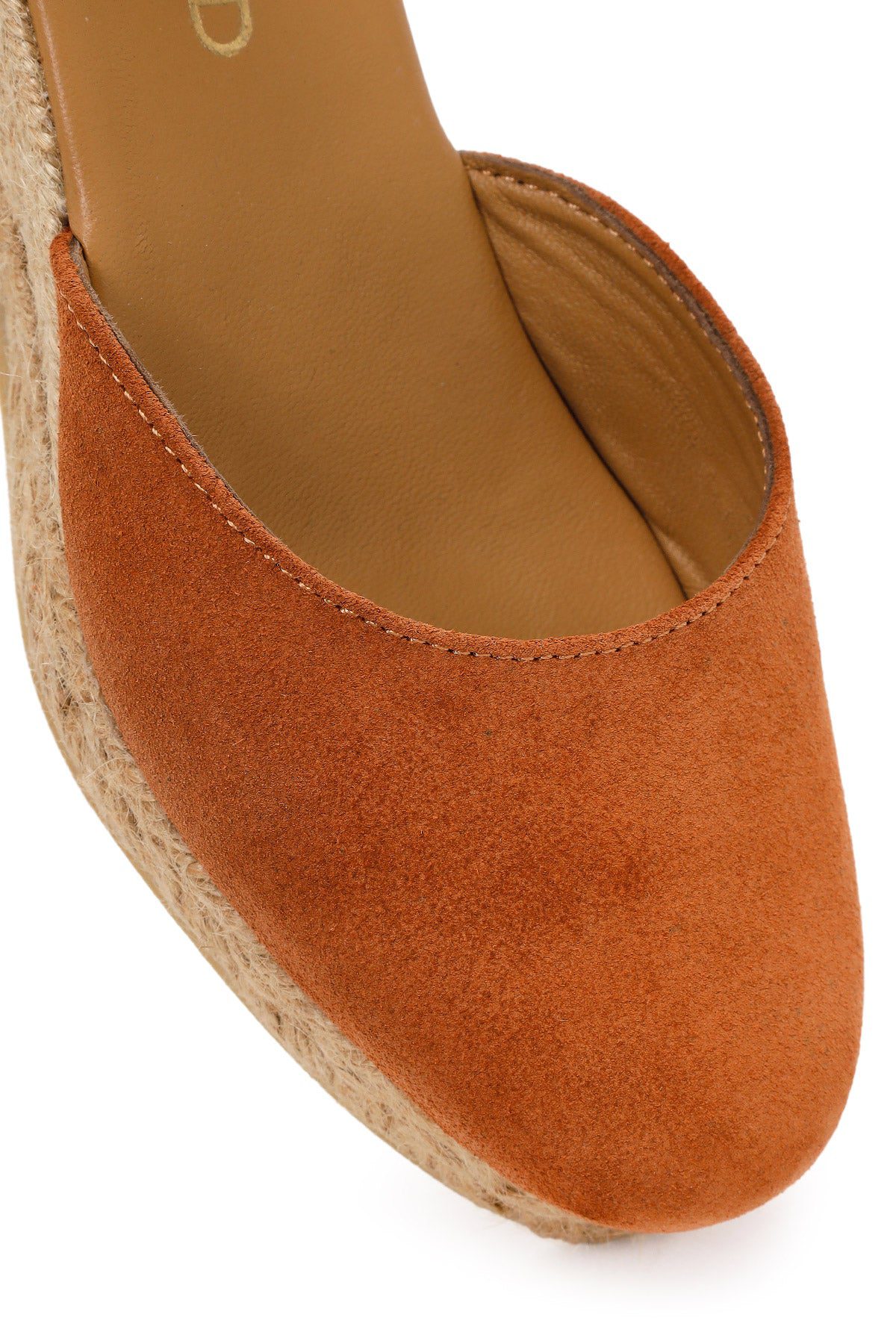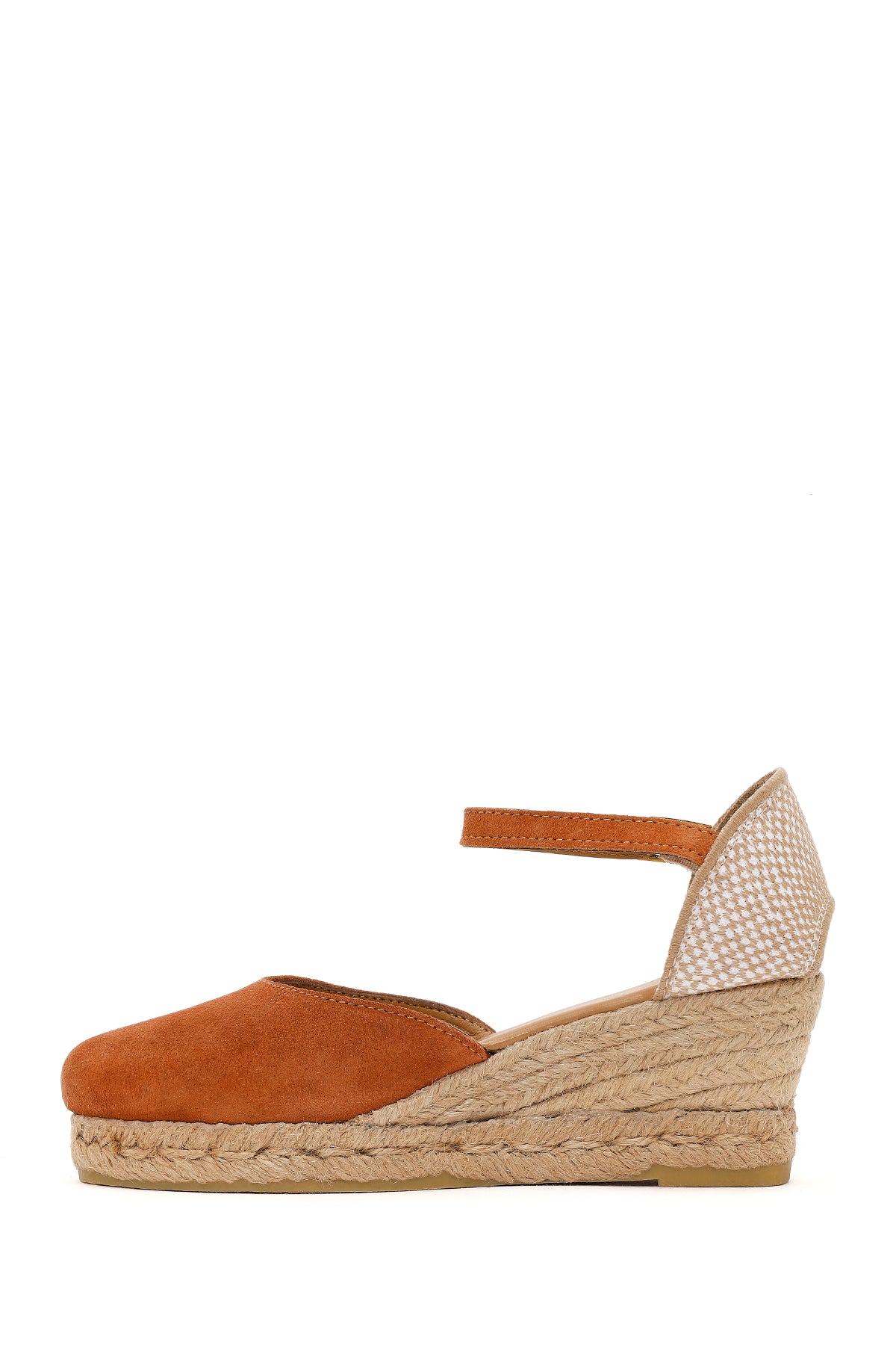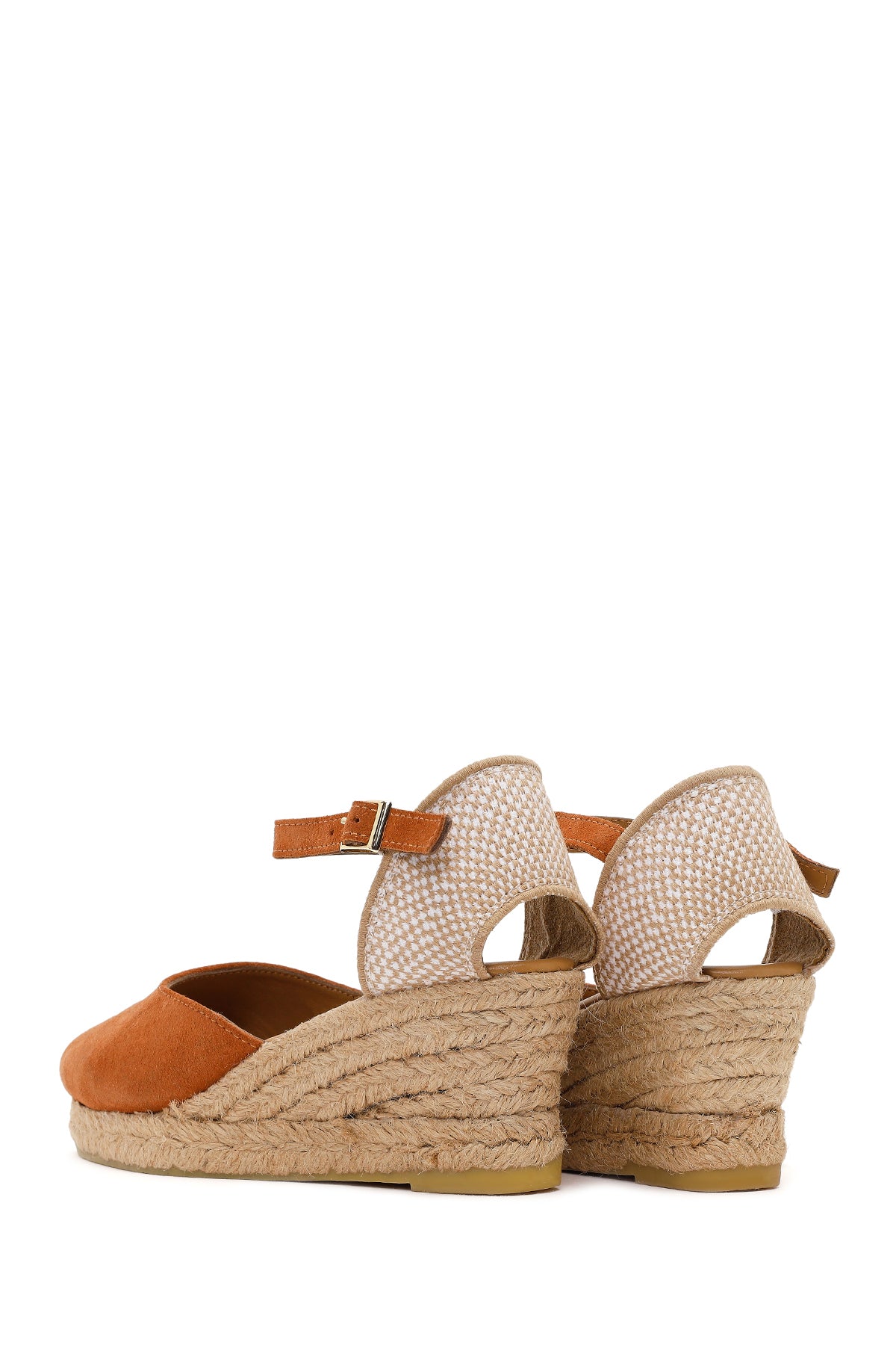 Kadın Turuncu Bilekten Bantlı Dolgu Topuklu Süet Deri Espadril Sandalet