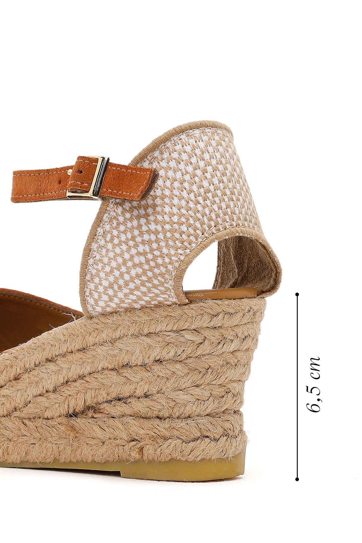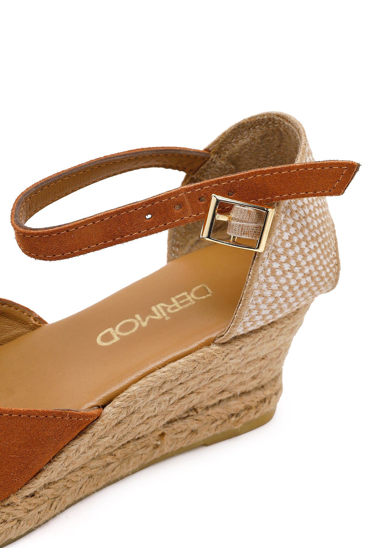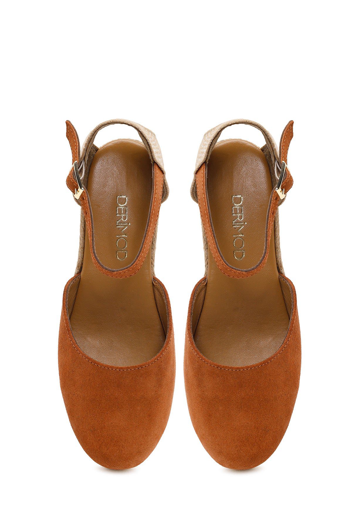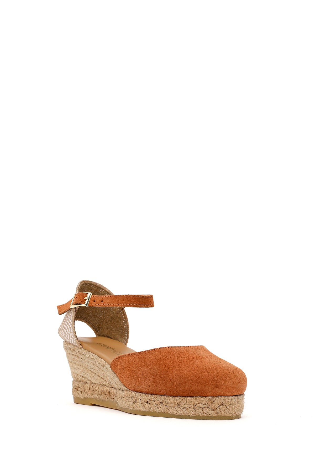 Kadın Turuncu Bilekten Bantlı Dolgu Topuklu Süet Deri Espadril Sandalet