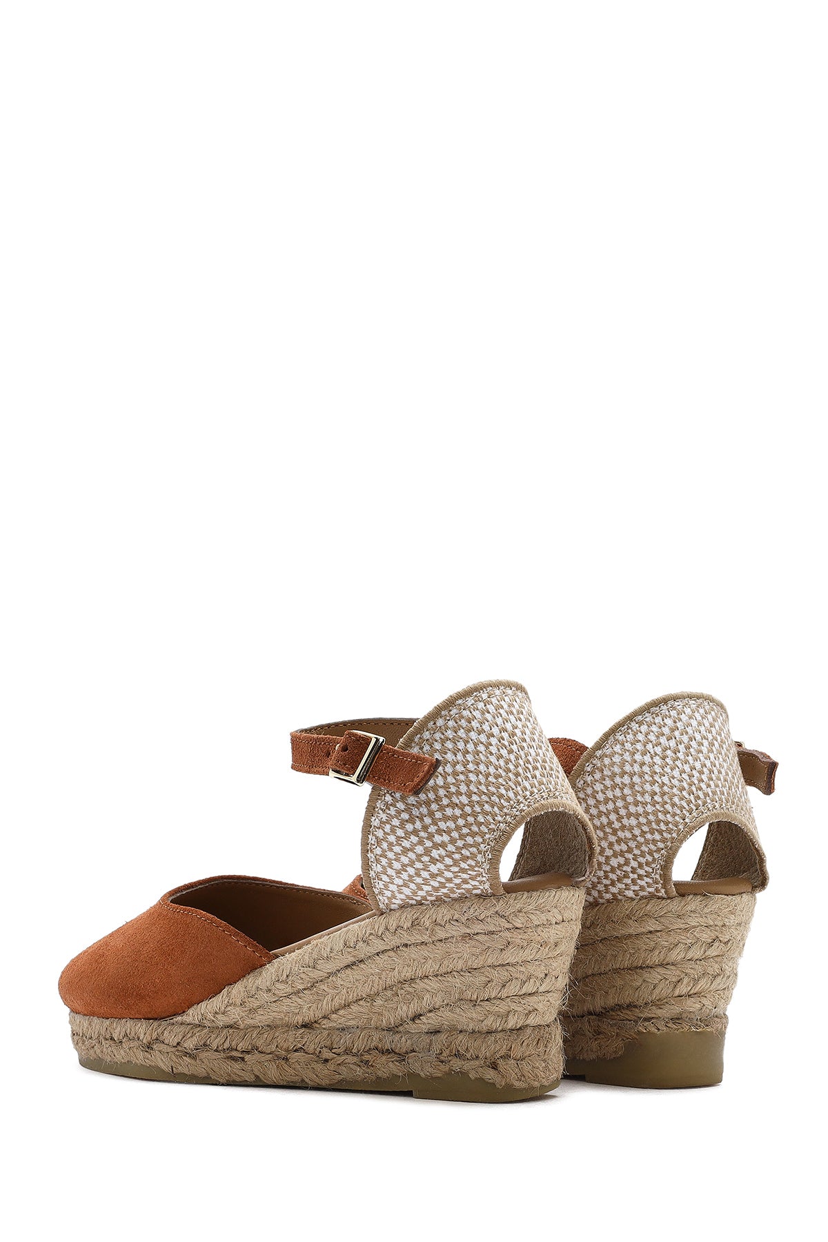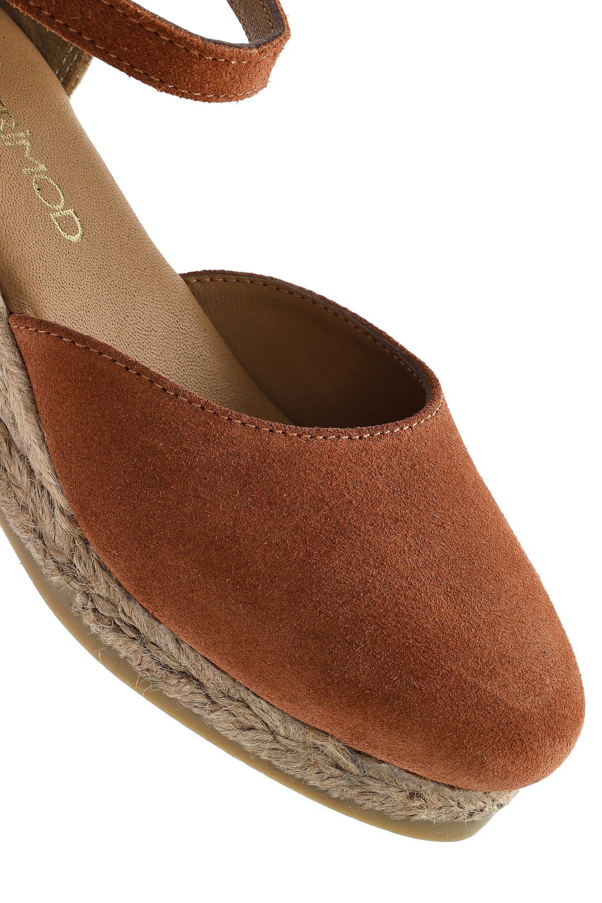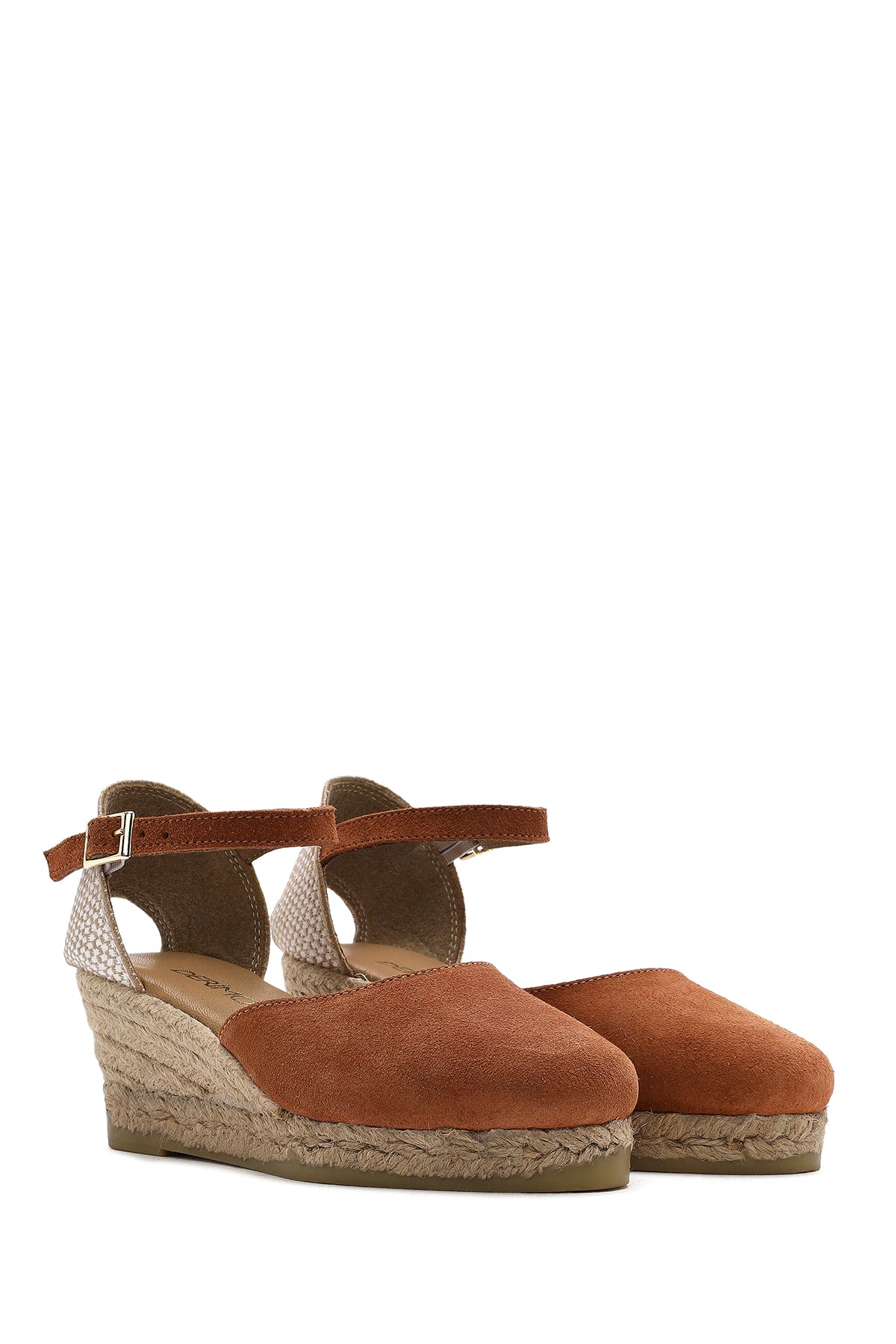 Kadın Turuncu Bilekten Bantlı Dolgu Topuklu Süet Deri Espadril