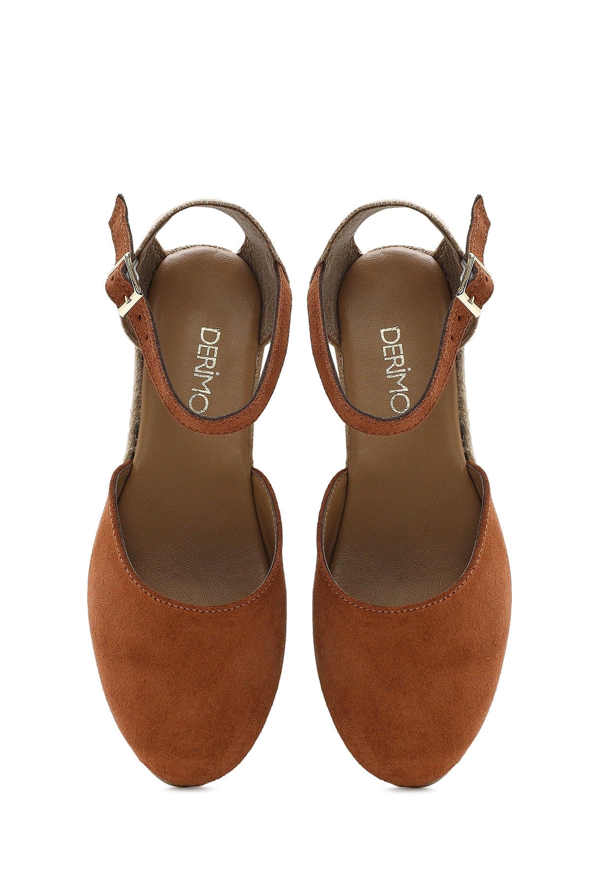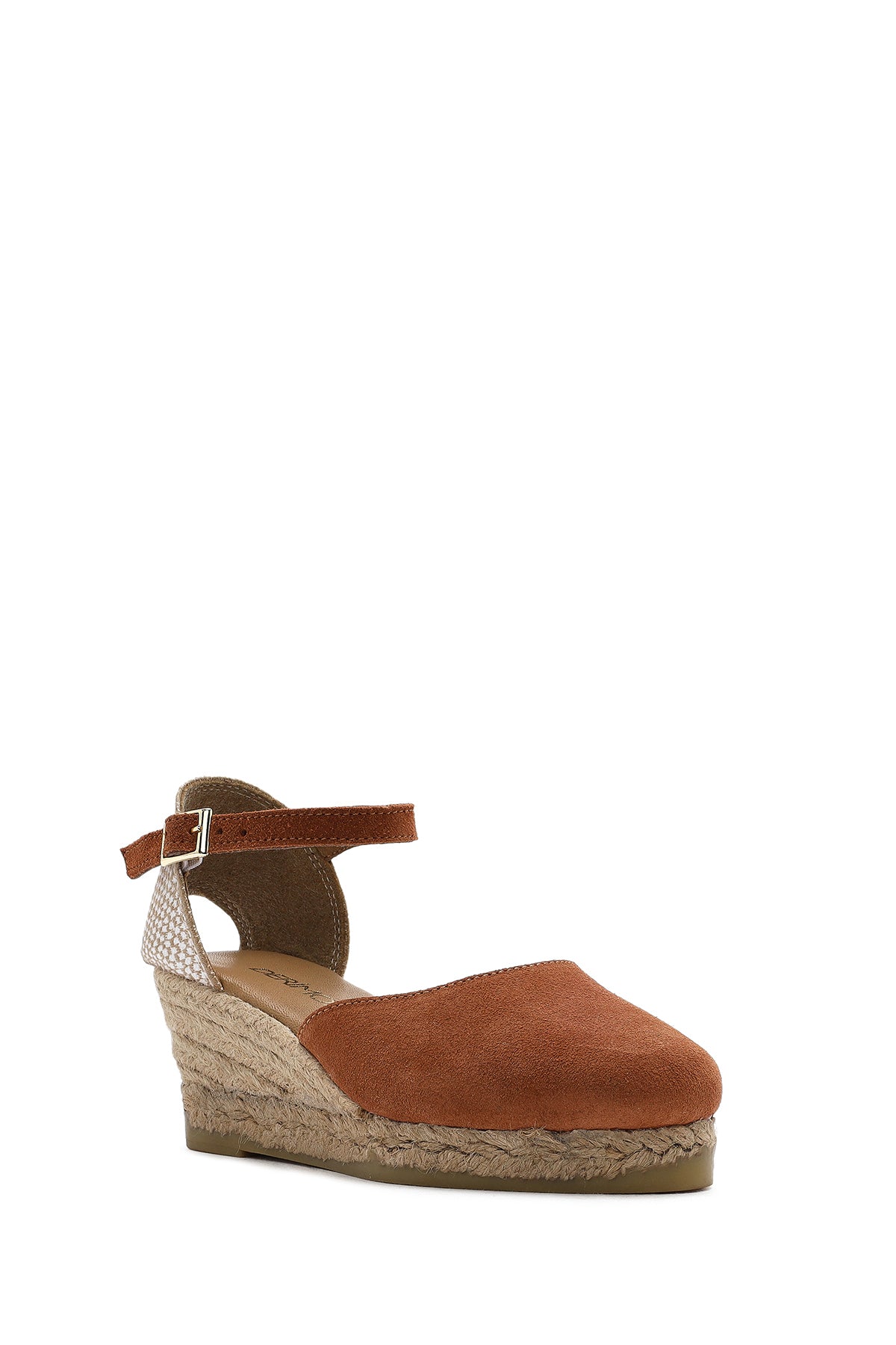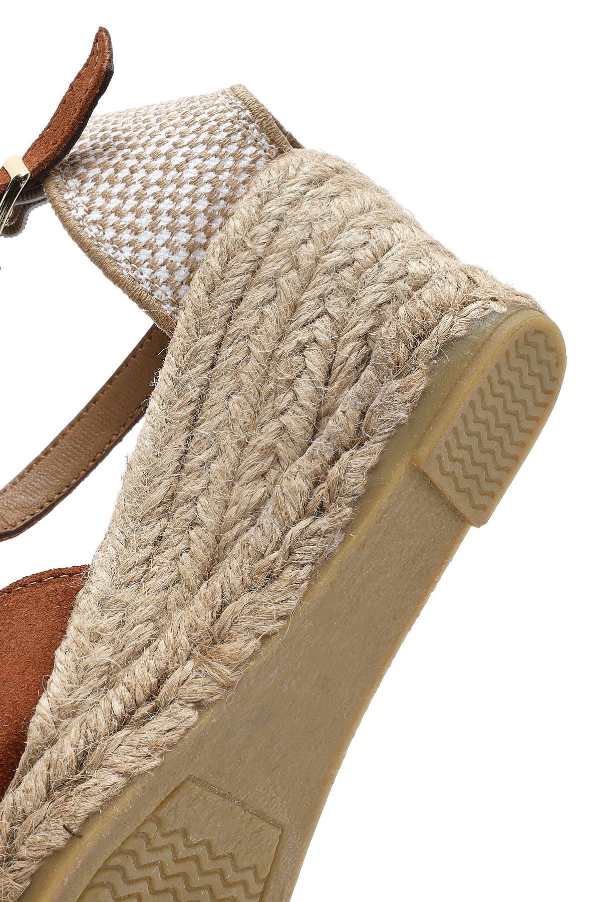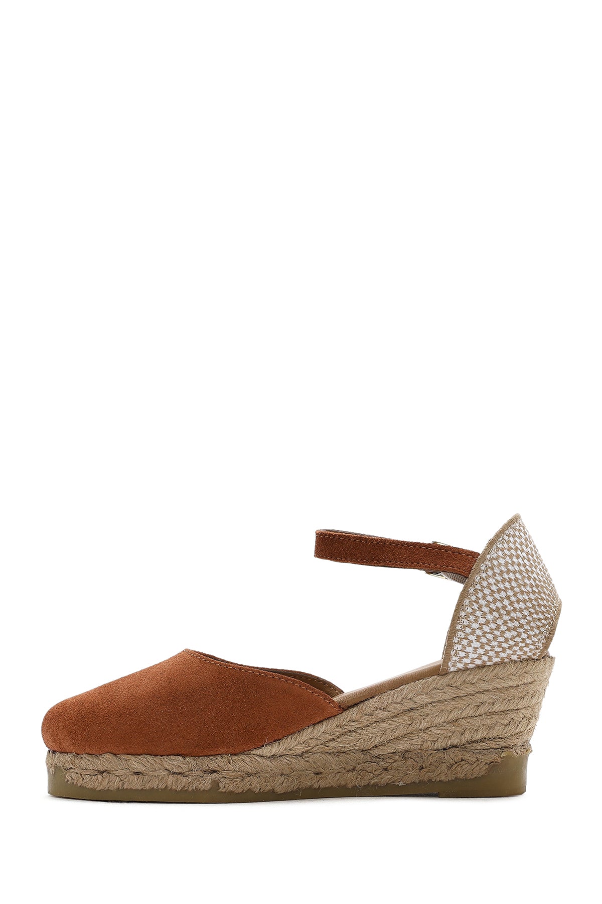 Kadın Turuncu Bilekten Bantlı Dolgu Topuklu Süet Deri Espadril