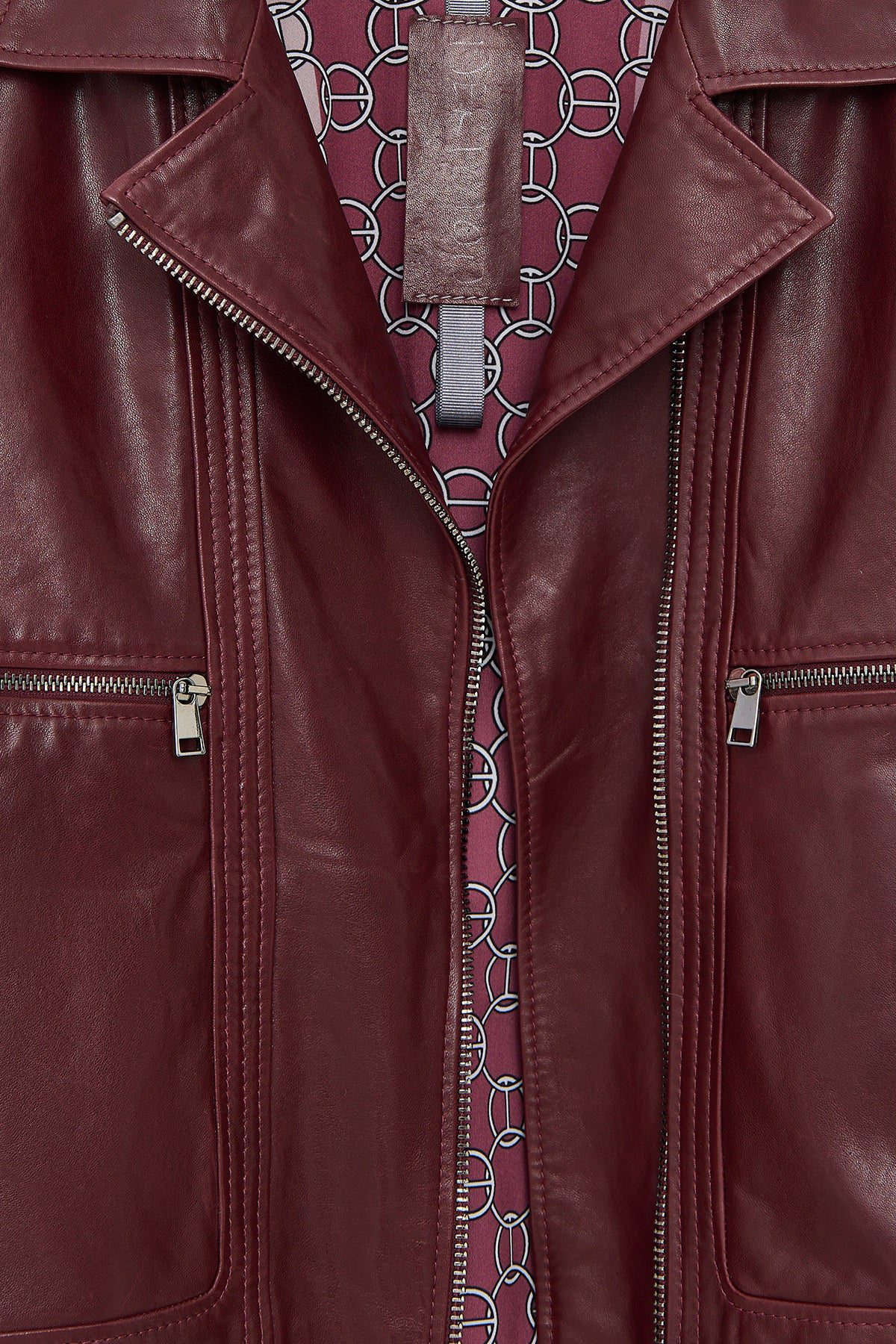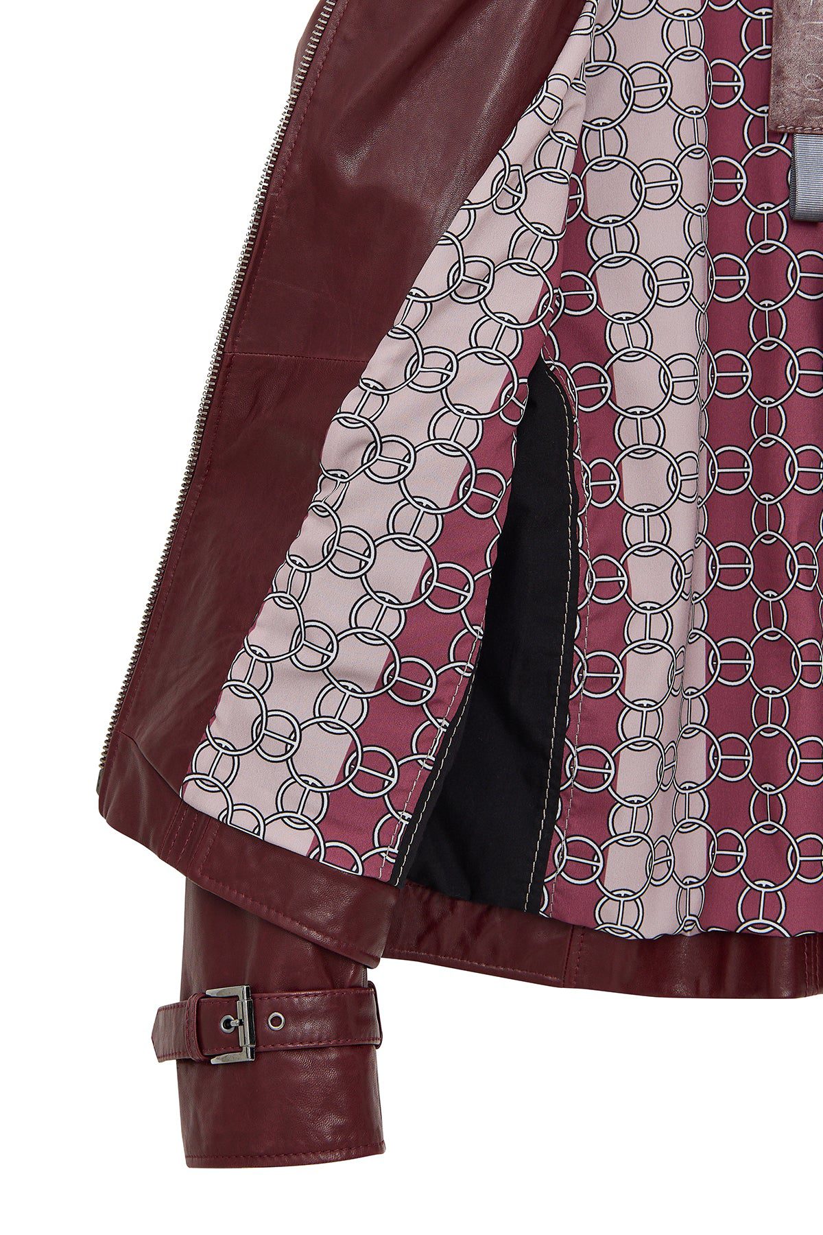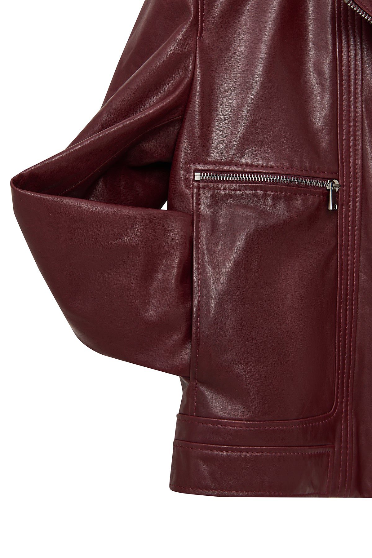 کت زنانه Paloma چرم بوردو بایکر کوتاه اورسایز دری مد