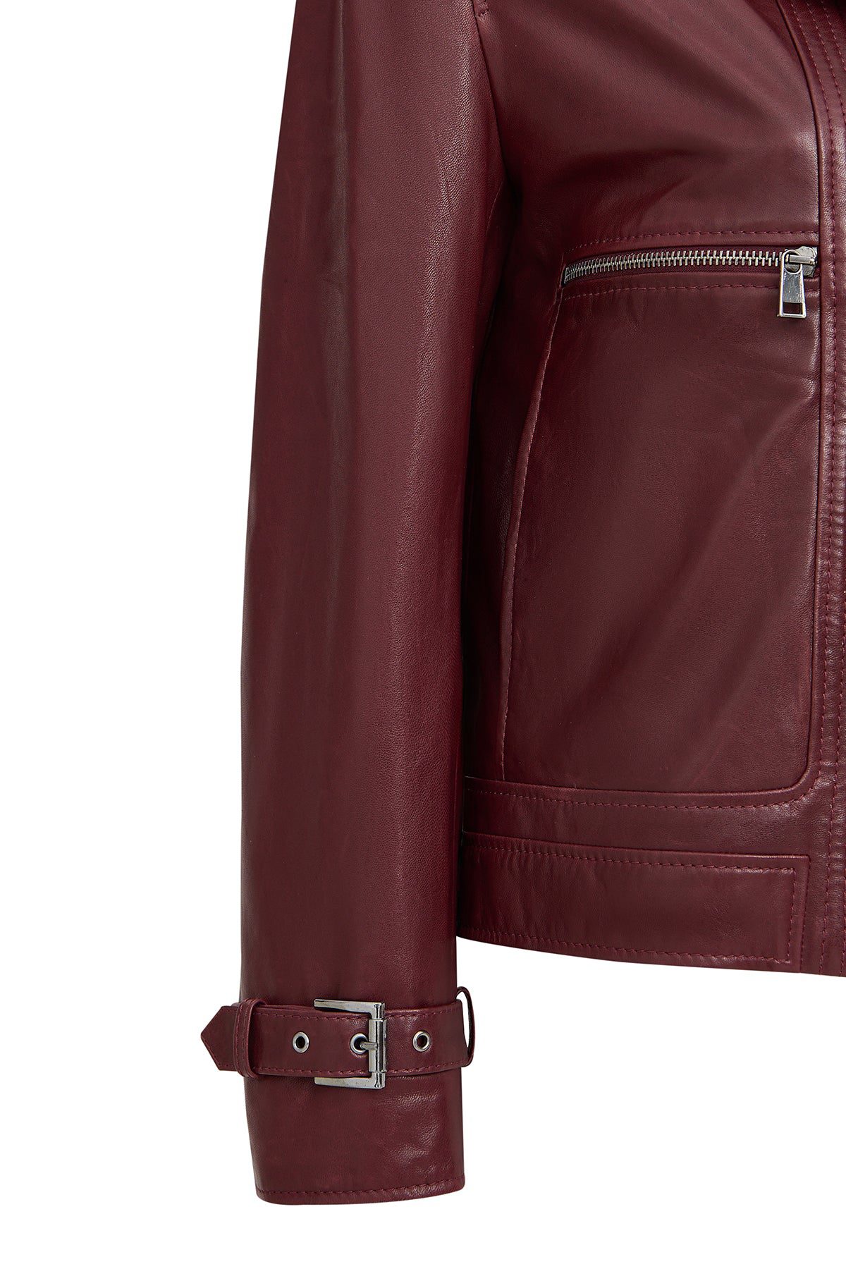 Paloma Kadın Bordo Kısa Oversize Biker Deri Ceket