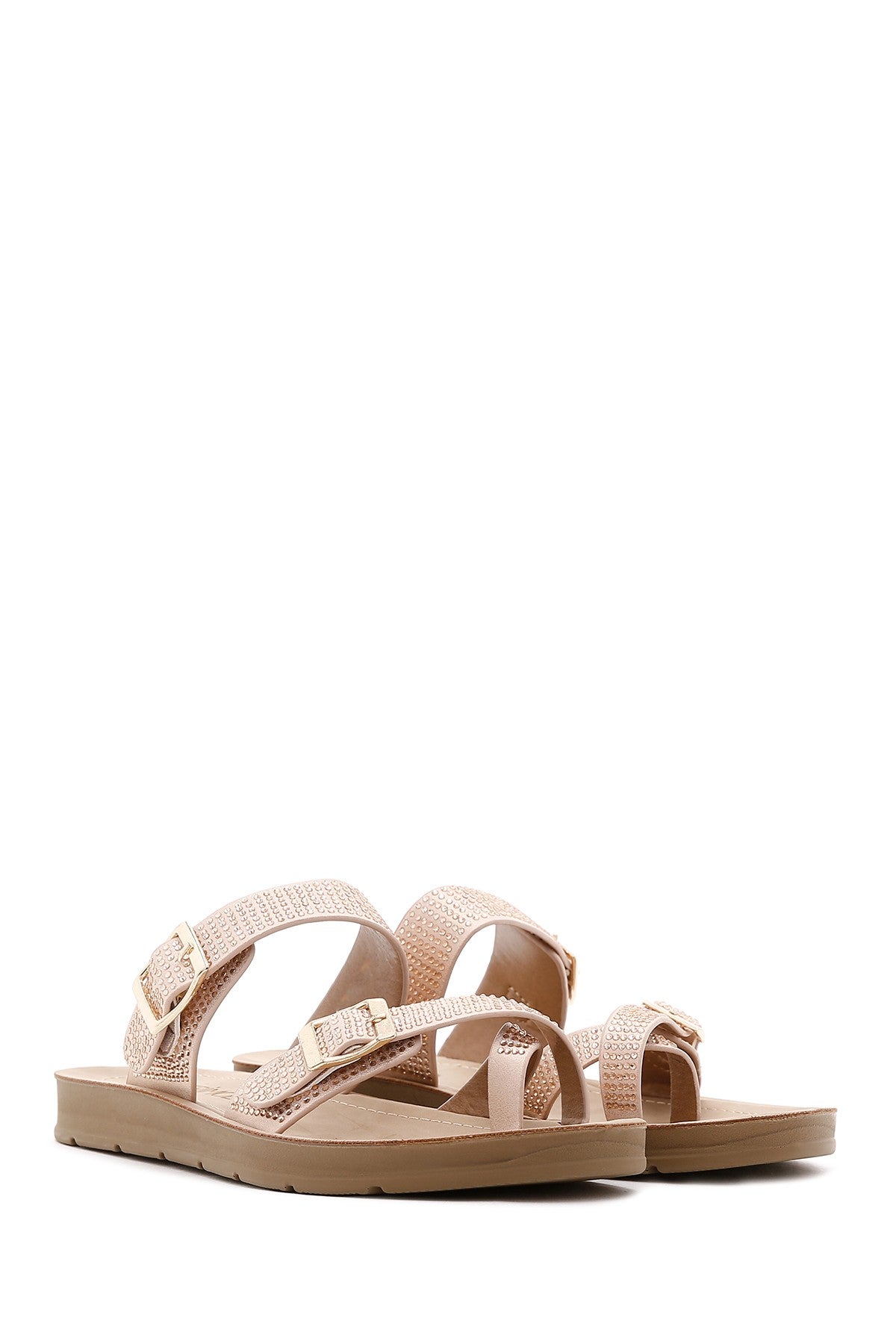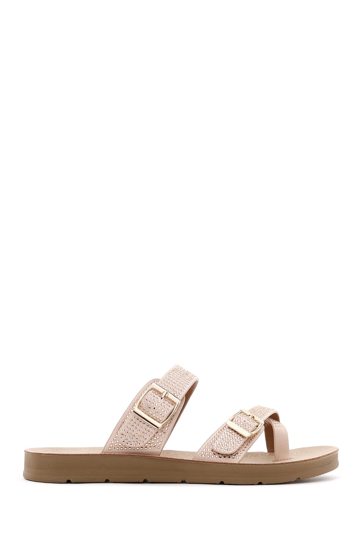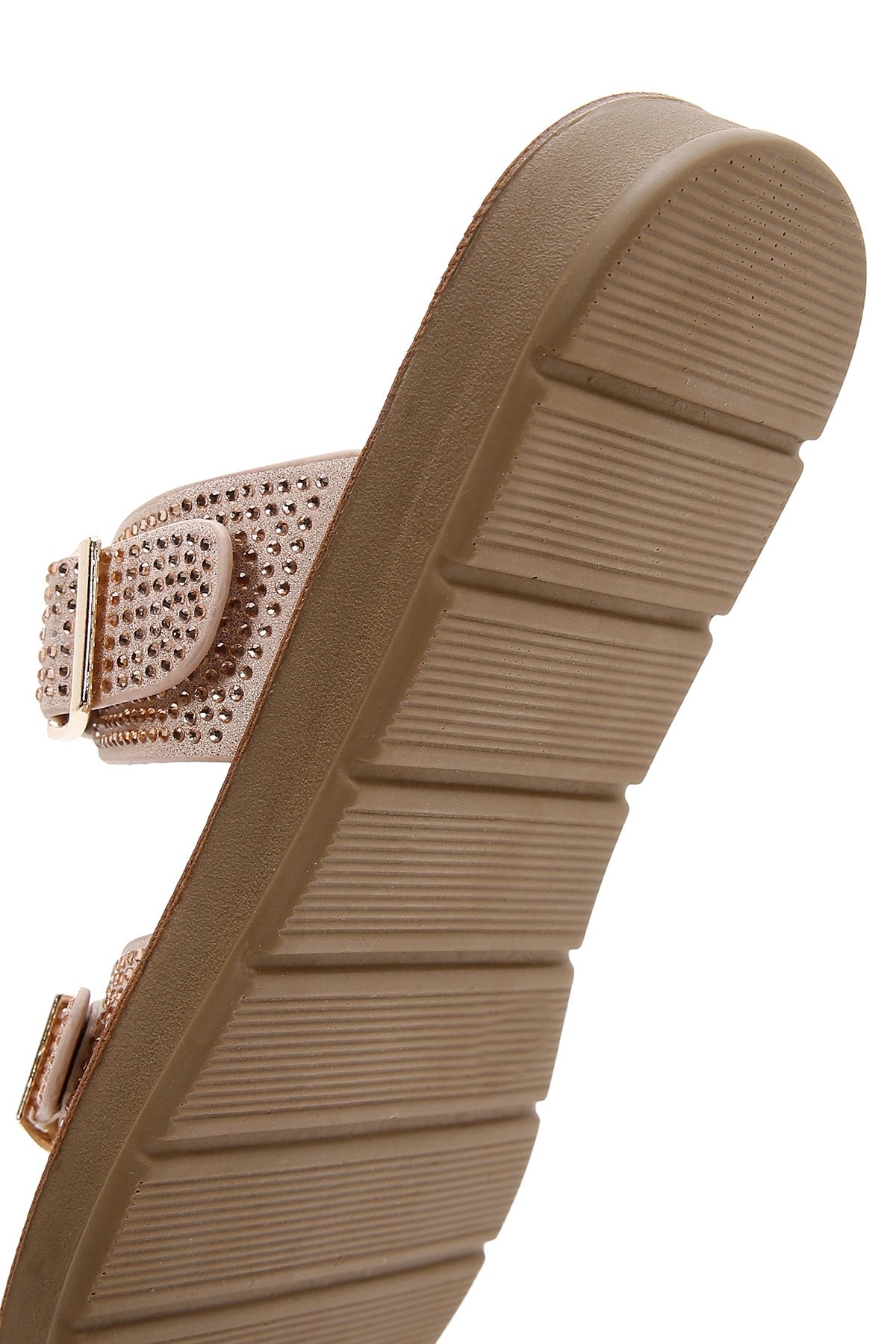 Kadın Pembe Çift Tokalı Taşlı Terlik