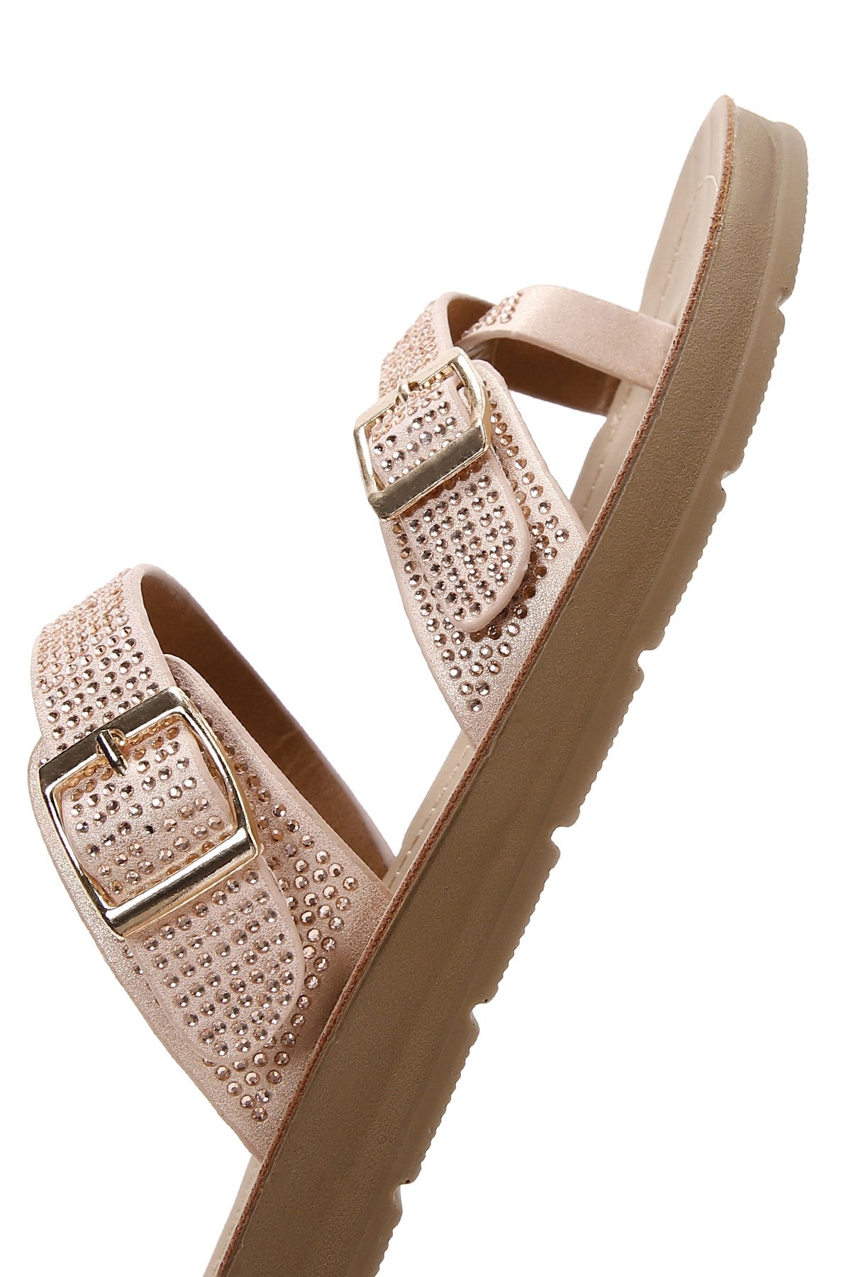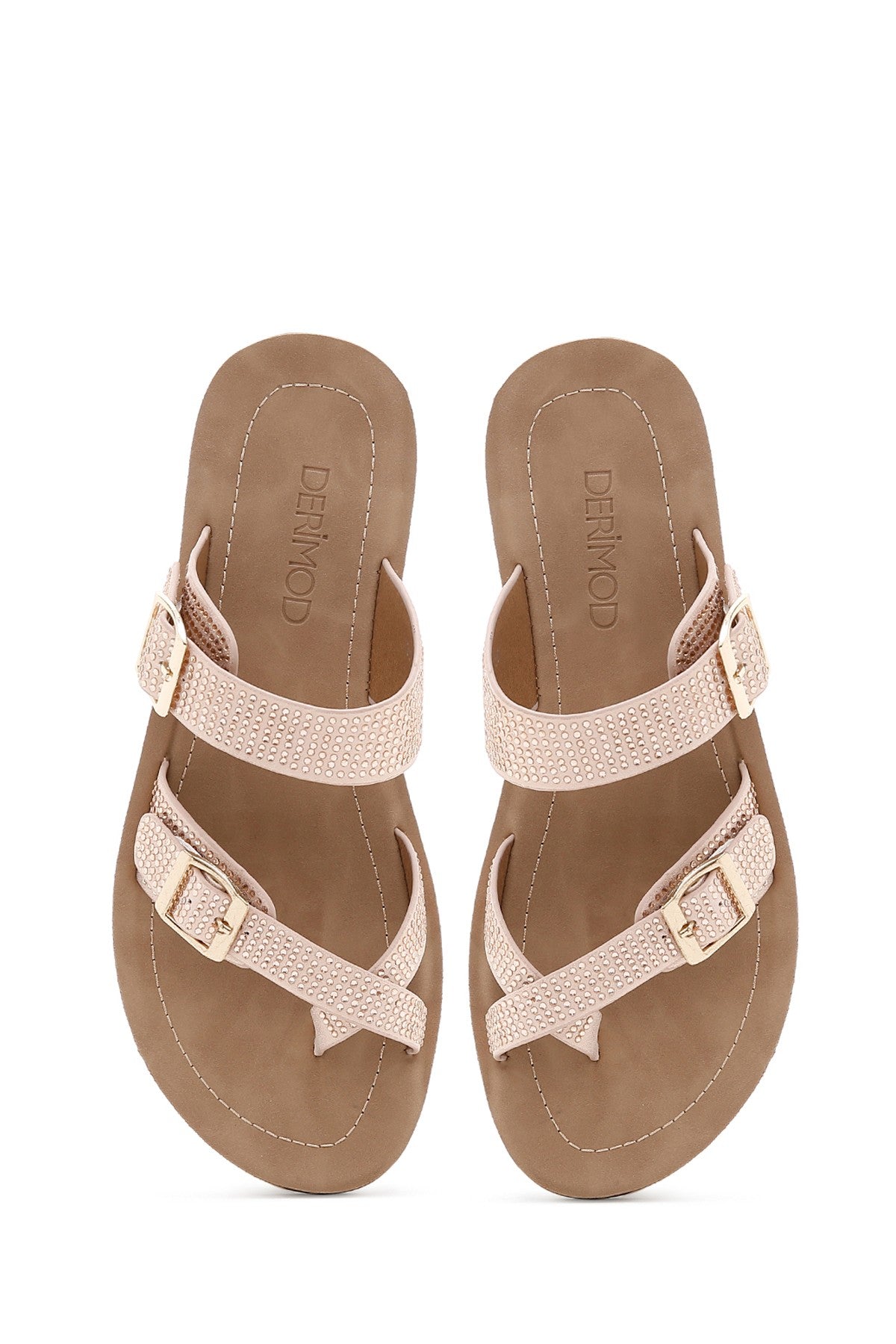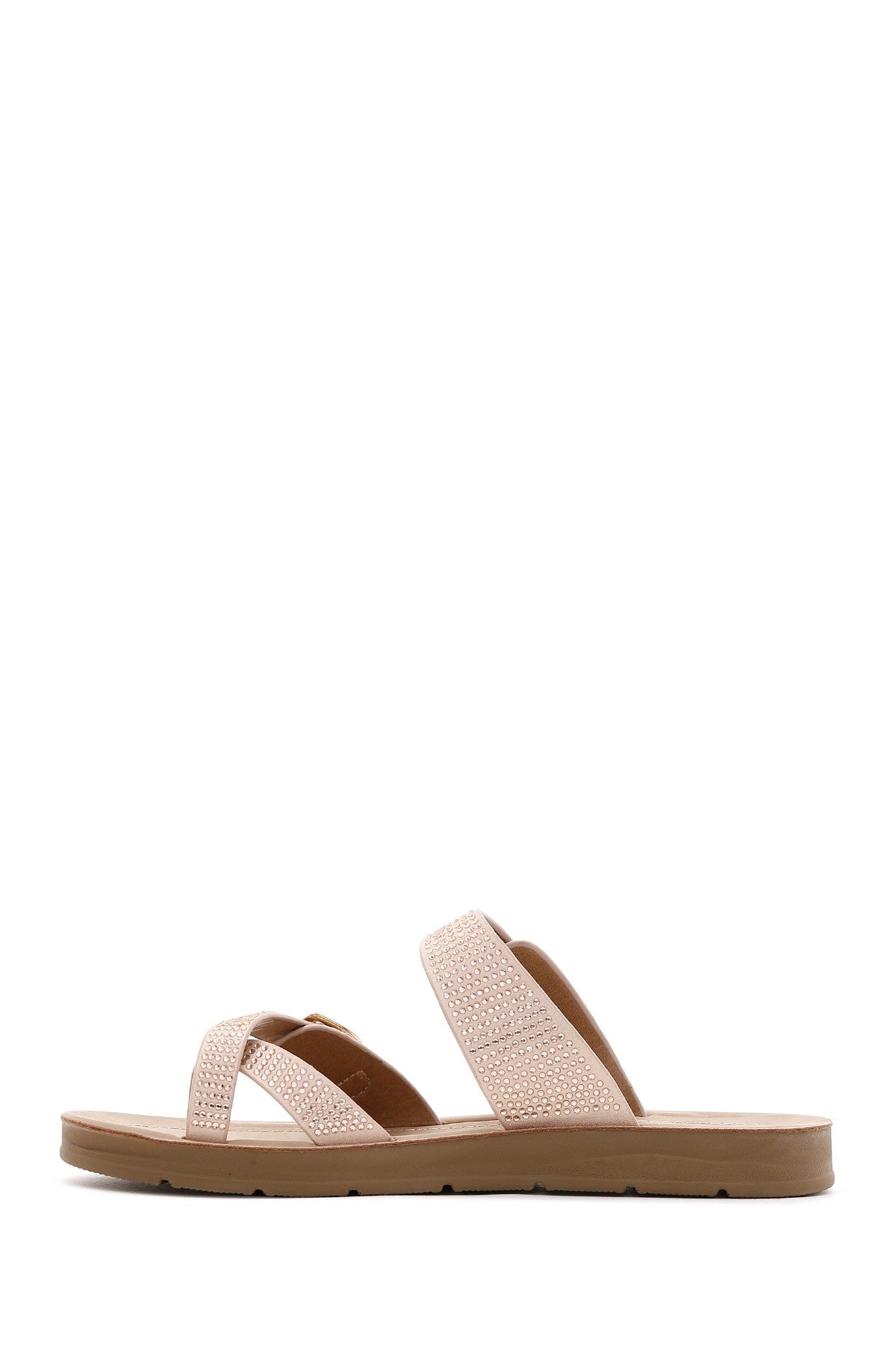 Kadın Pembe Çift Tokalı Taşlı Terlik