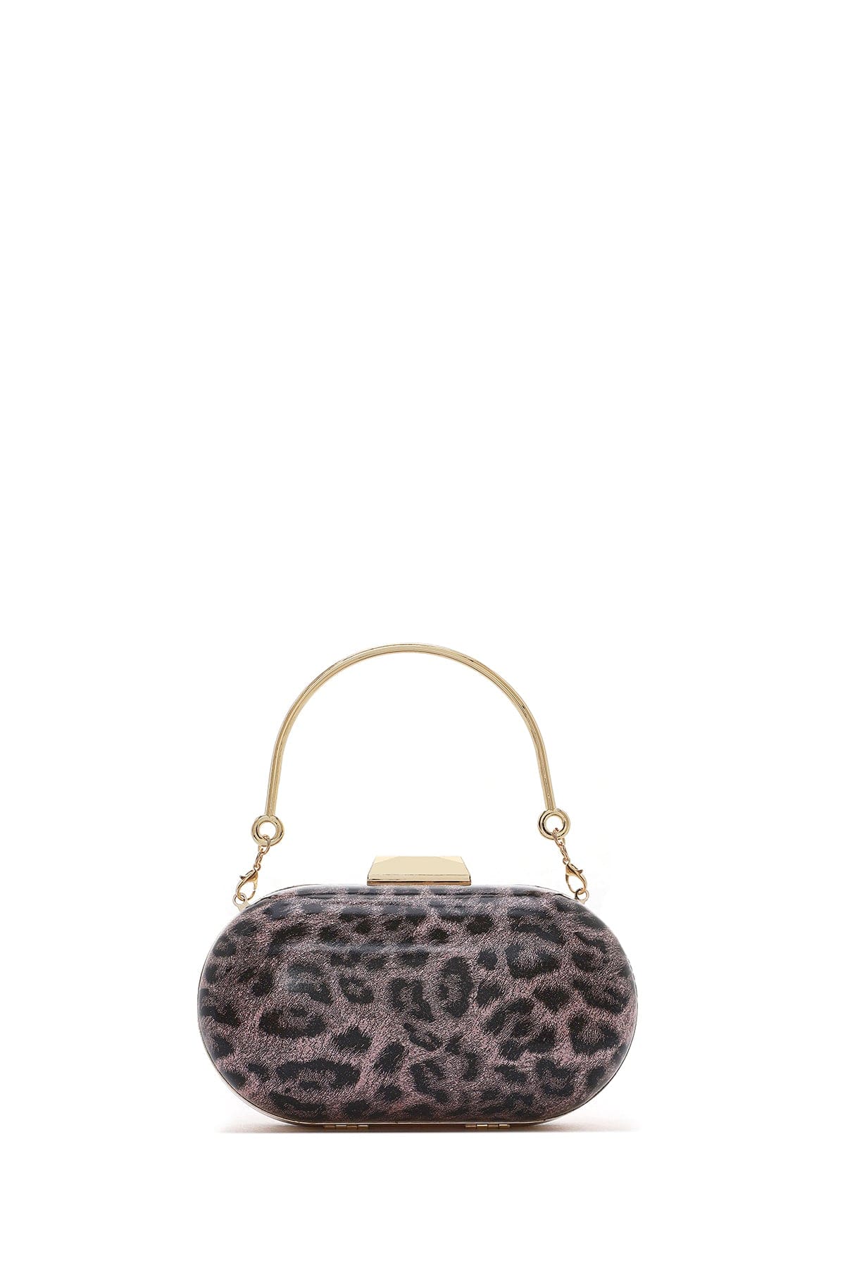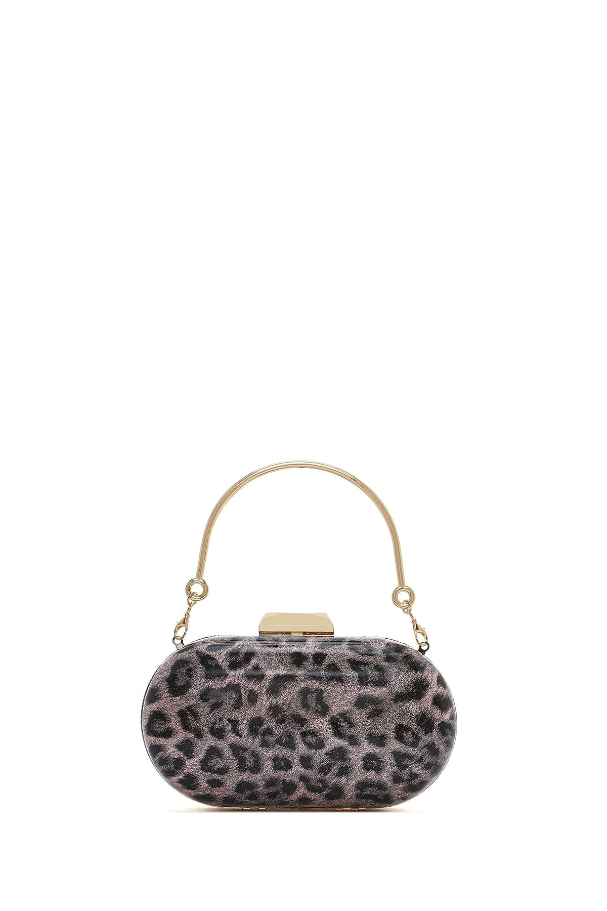 Kadın Pembe Leoper Desenli Uzun Askılı Mini Portföy Abiye Çantası