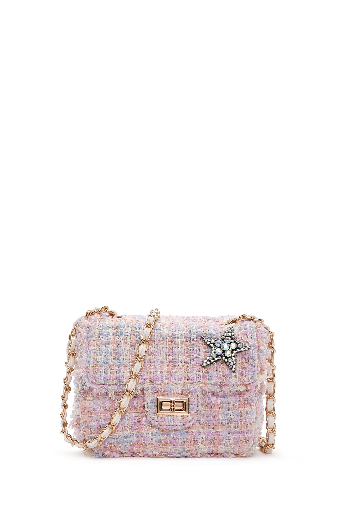 Kadın Pembe Uzun Askılı Aksesuarlı Mini Omuz Çantası