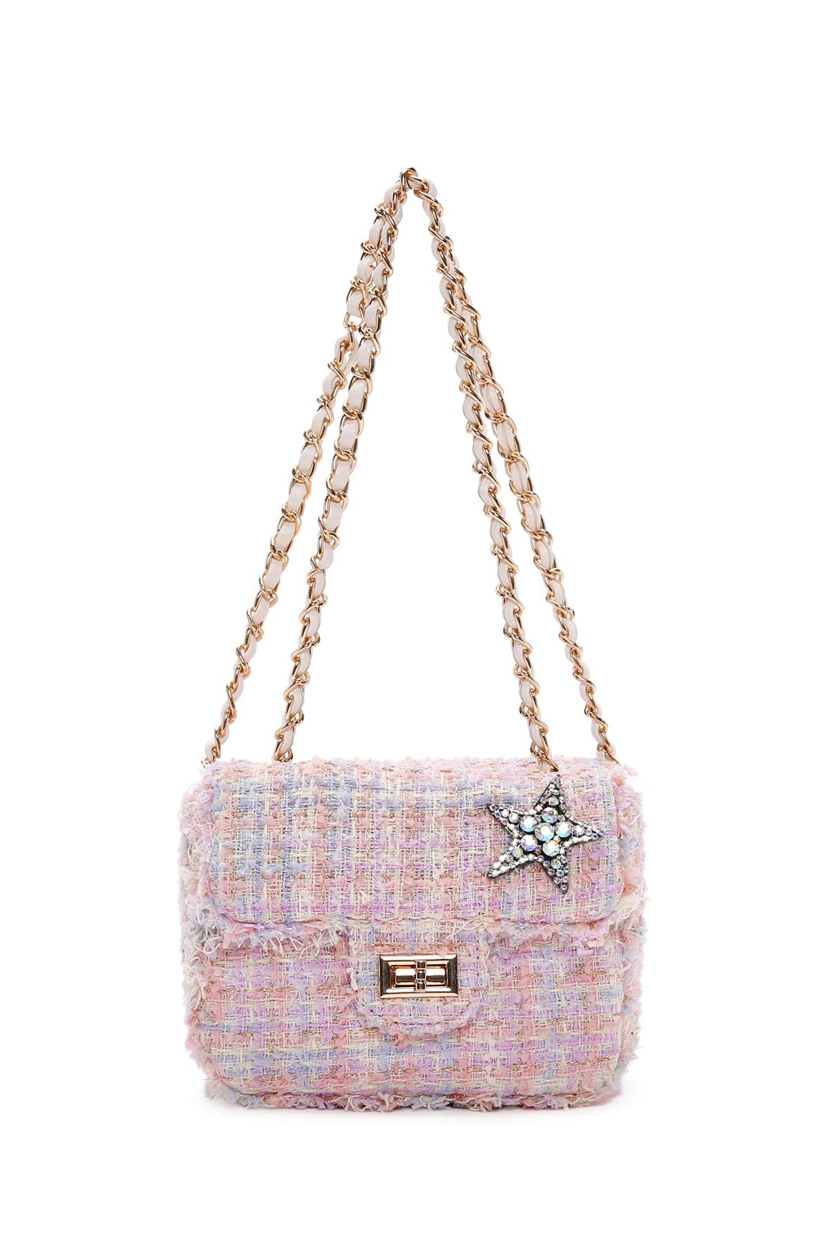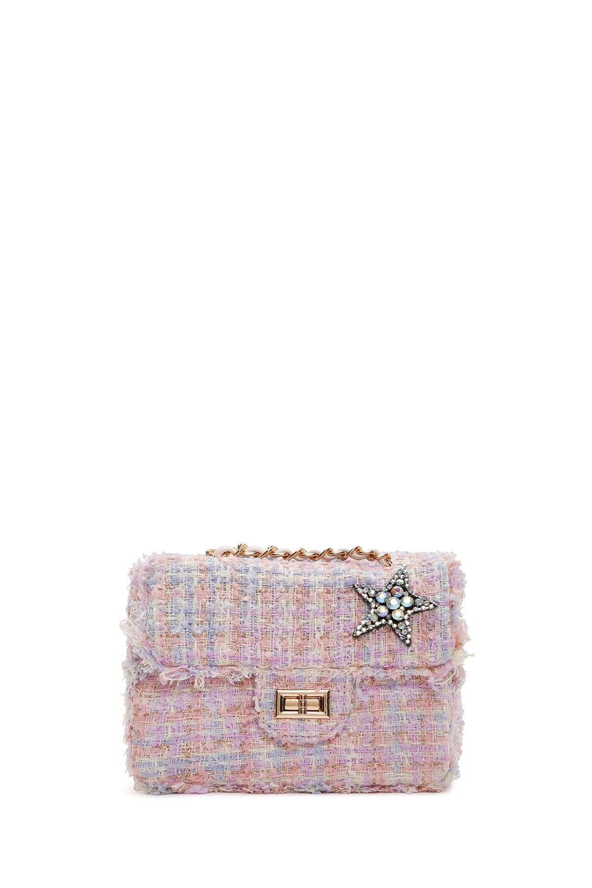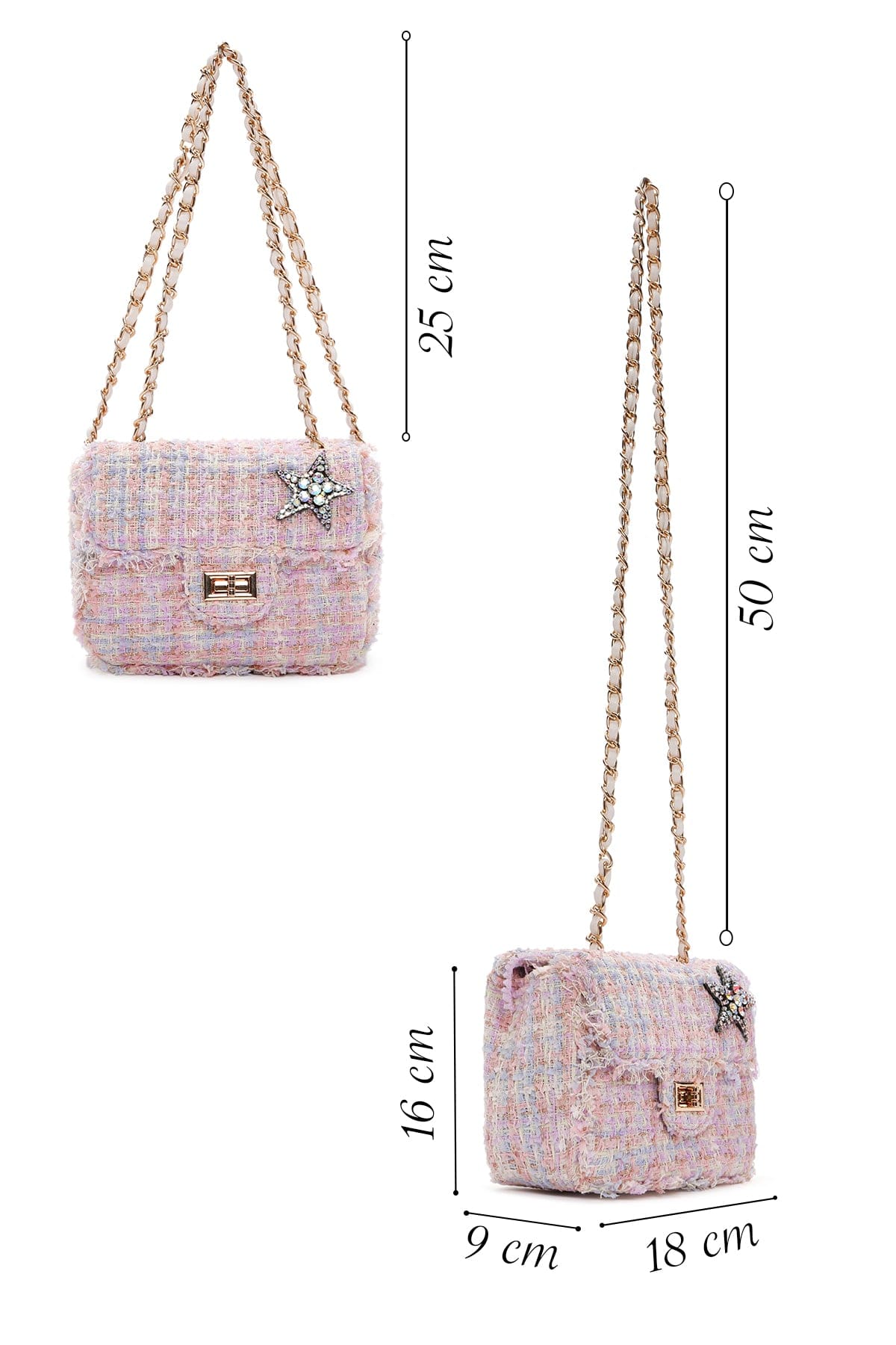 کیف زنانه مینی دوشی صورتی بند بلند با اکسسوری دری مد