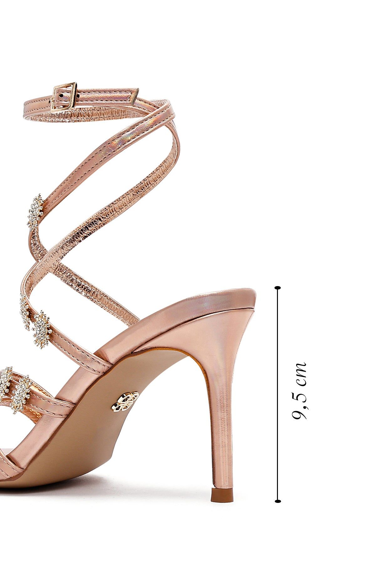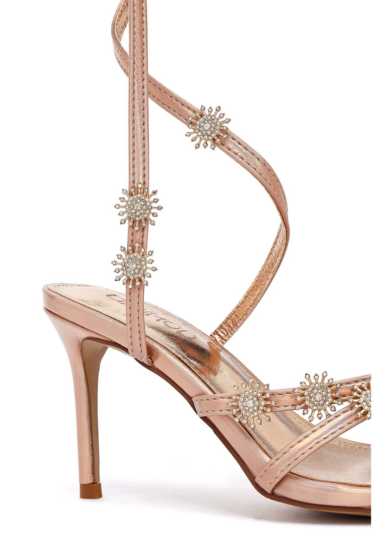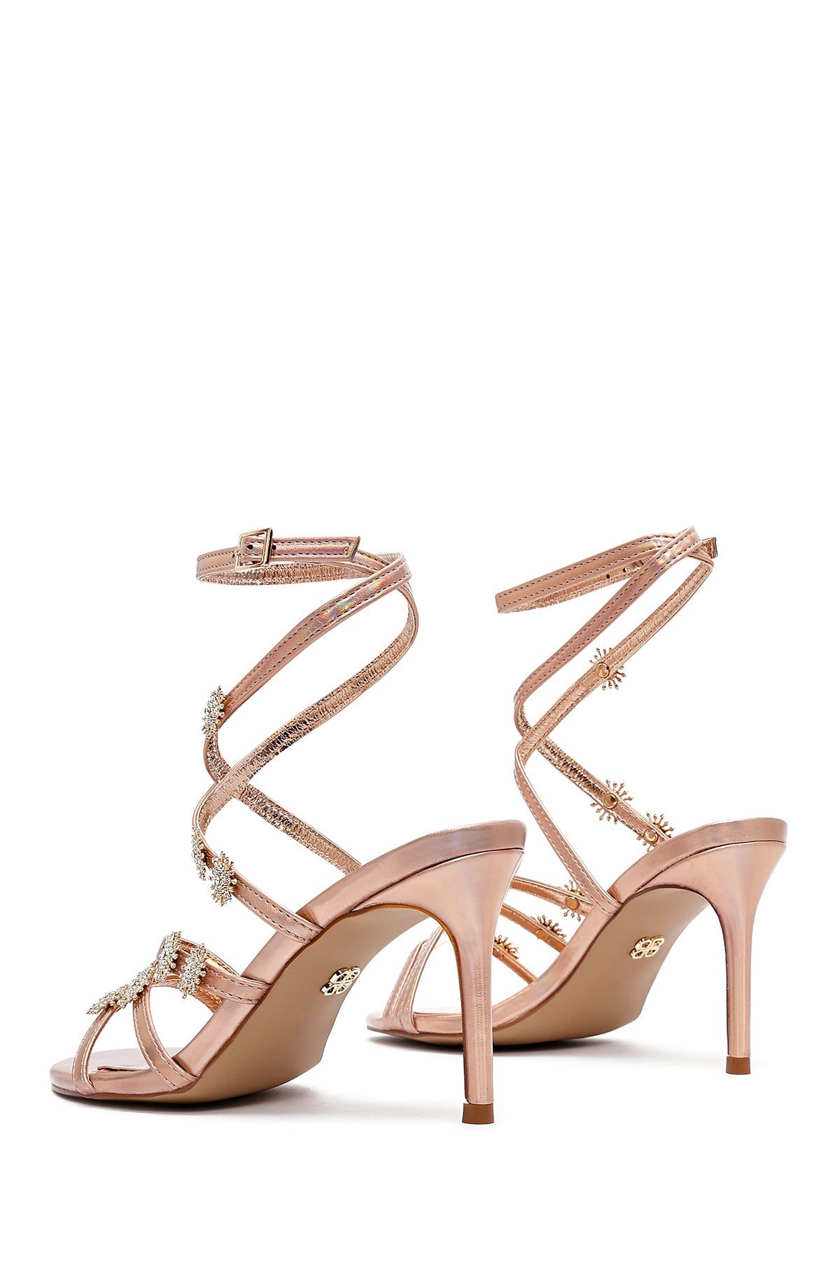 Kadın Pembe Bilekten Tokalı Taşlı Metalik İnce Topuklu Sandalet