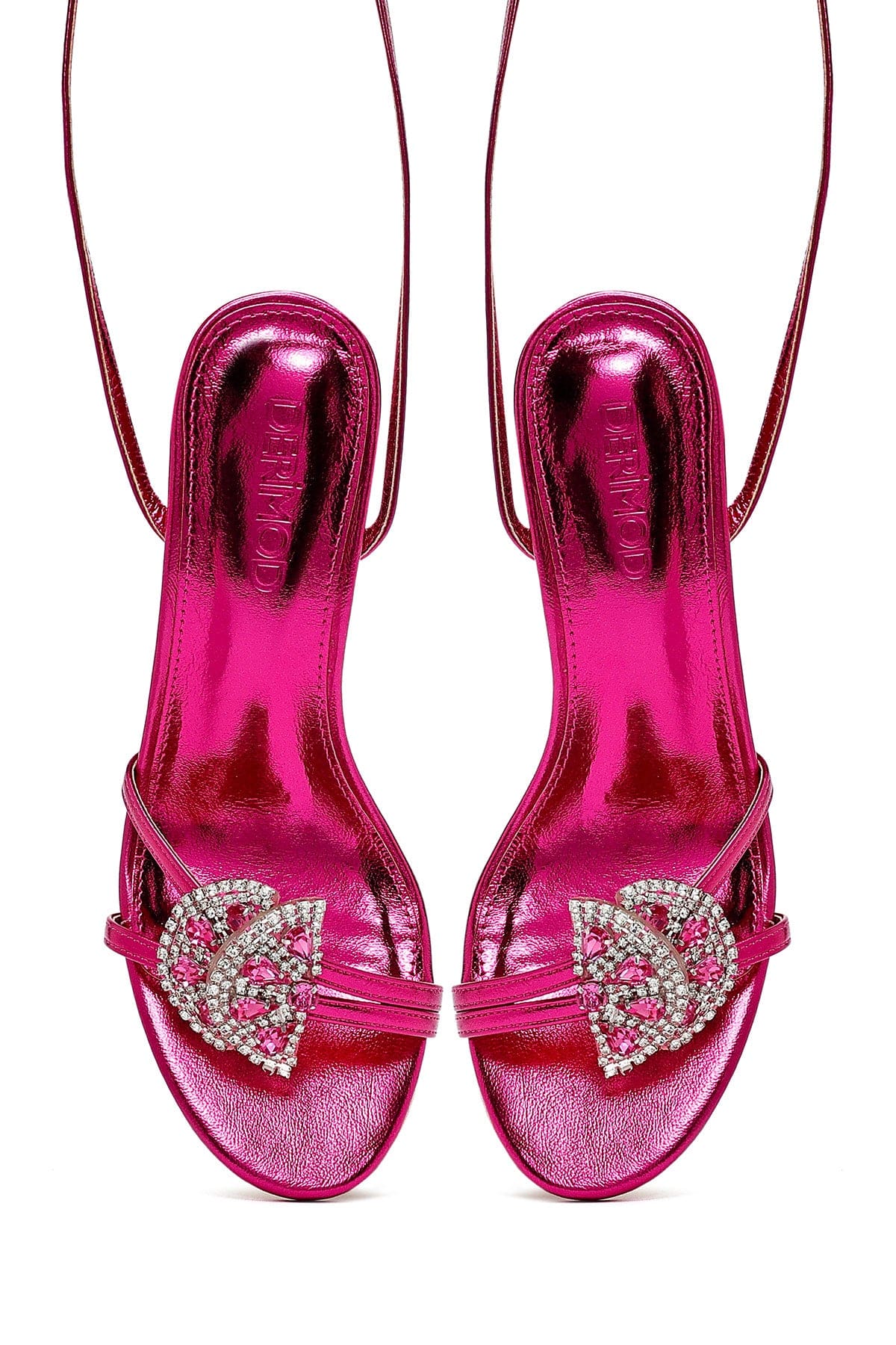 صندل زنانه صورتی نگیندار پاشنهنازک بنددار دری مد