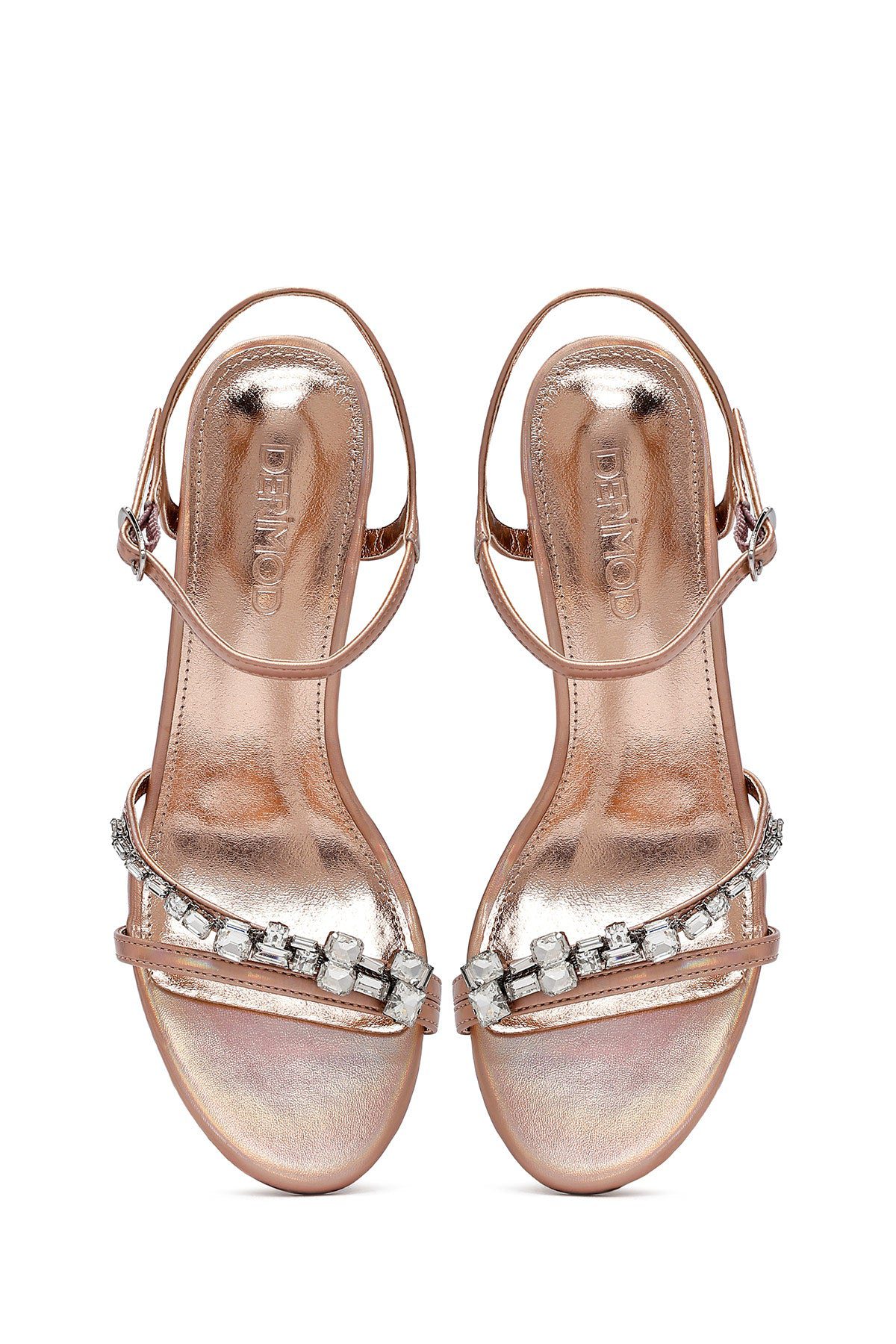 Kadın Pembe Bilekten Tokalı Taşlı İnce Topuklu Sandalet
