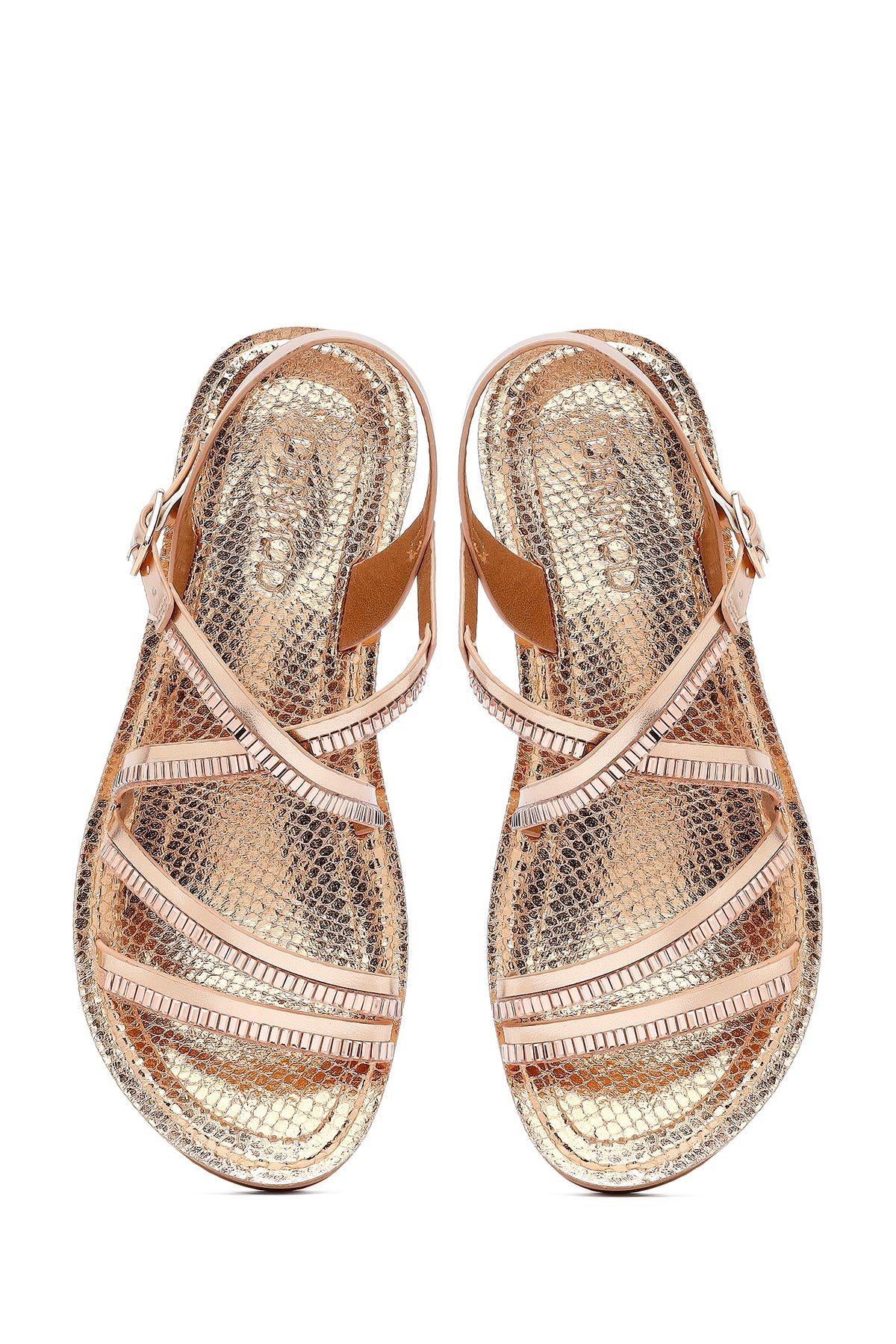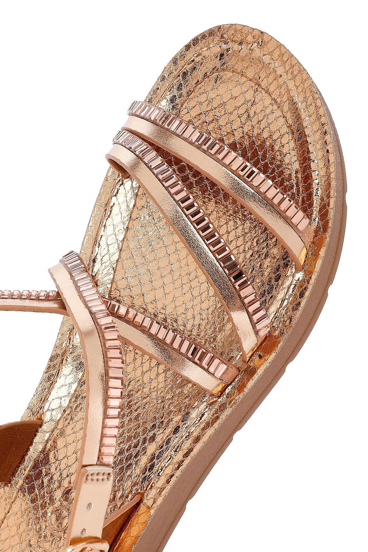 Kadın Pembe Kalın Tabanlı Taşlı Sandalet