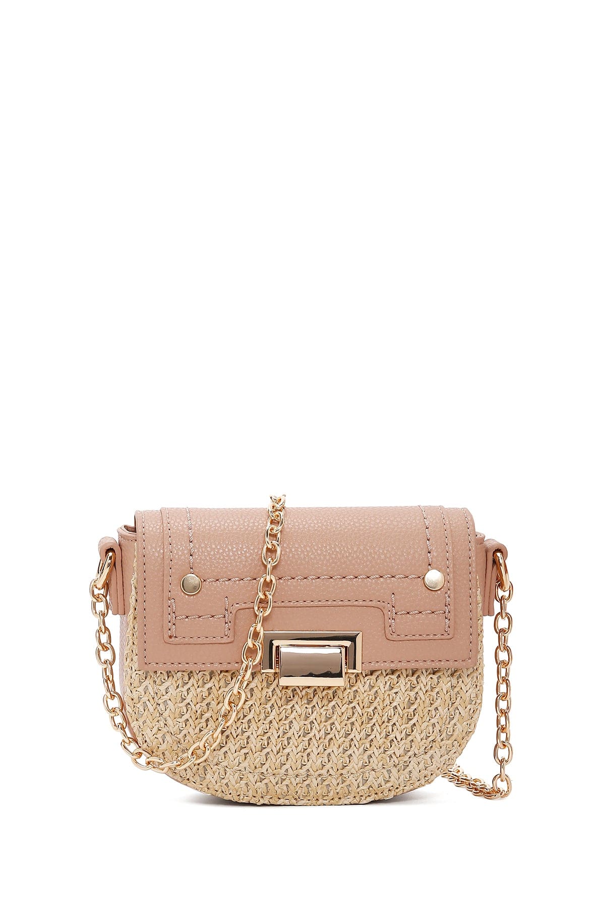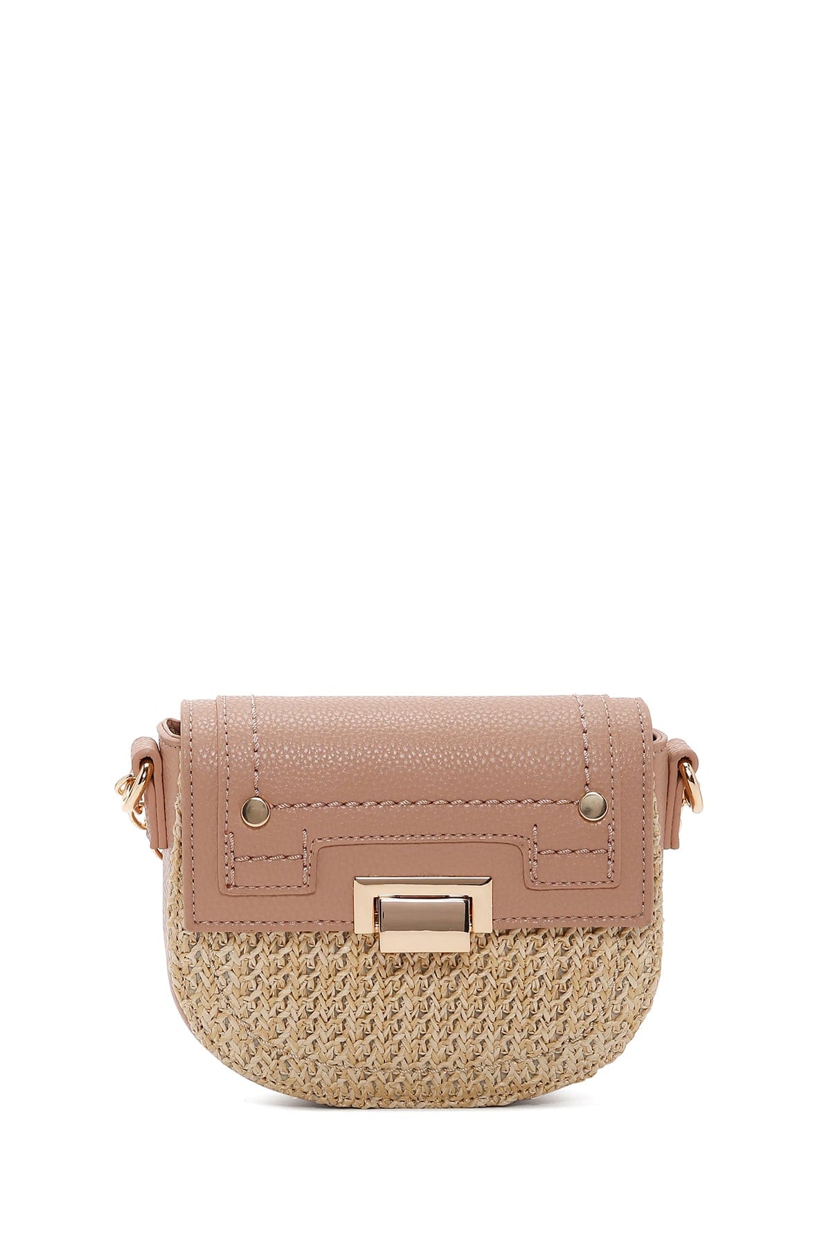 Kadın Pembe Uzun Askılı Örgülü Mini Çapraz Çanta